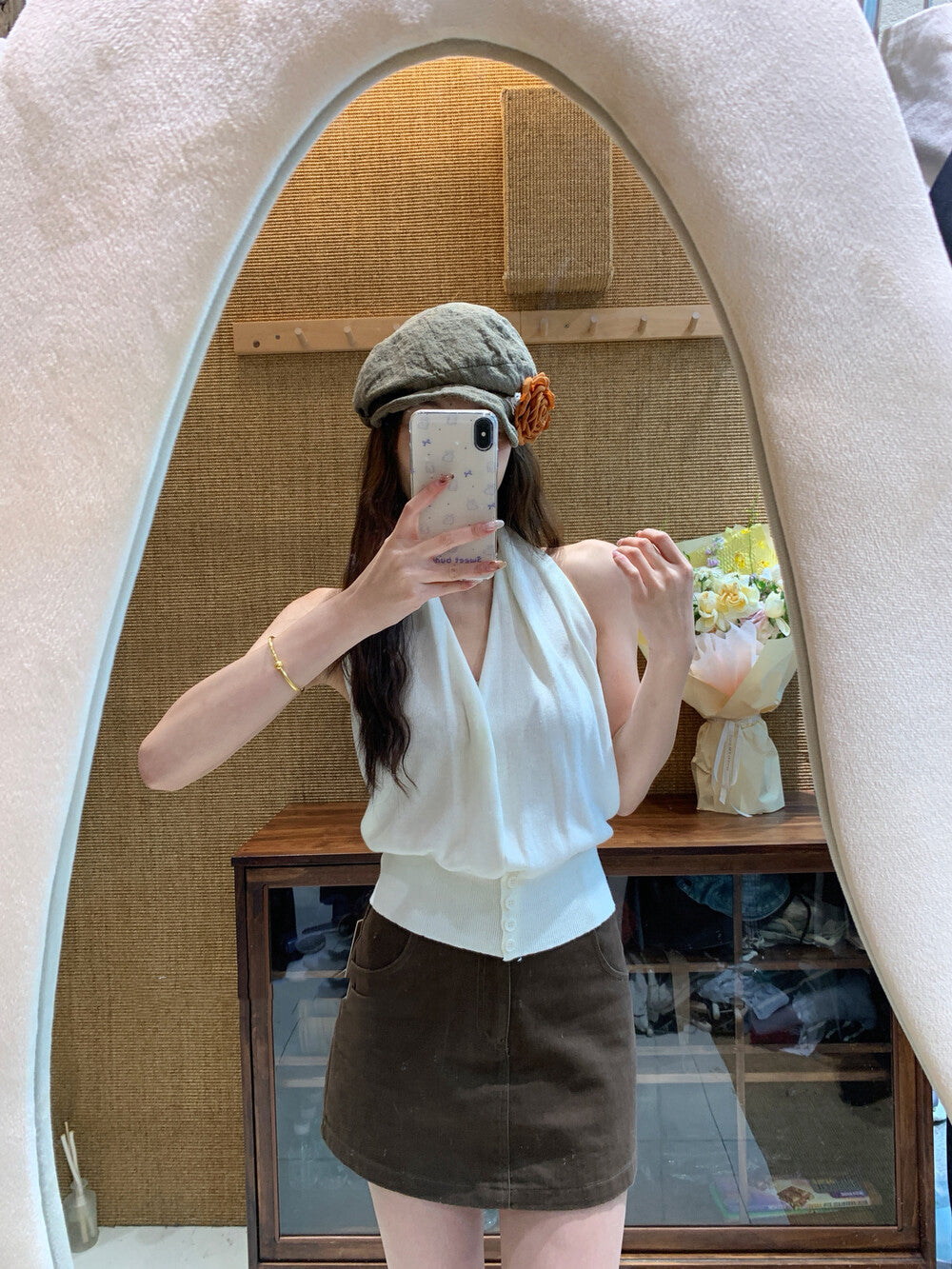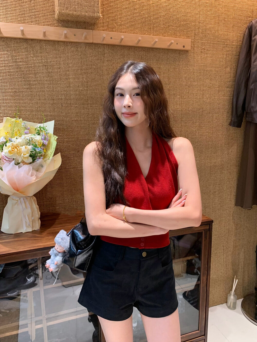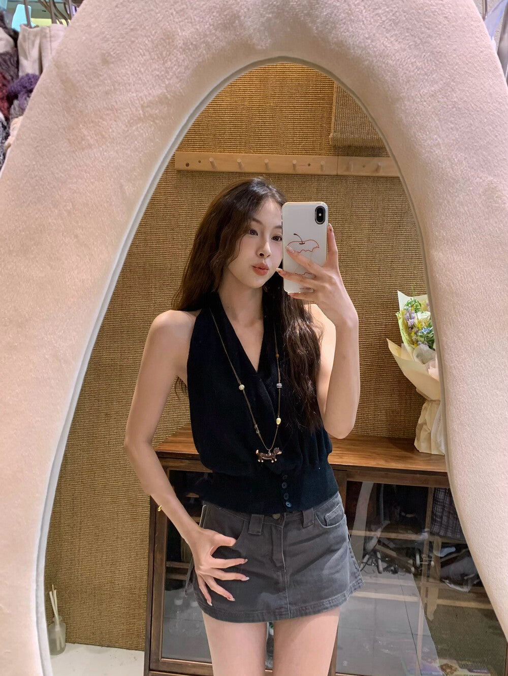 Halter V-neck, elongates the neck proportion💫