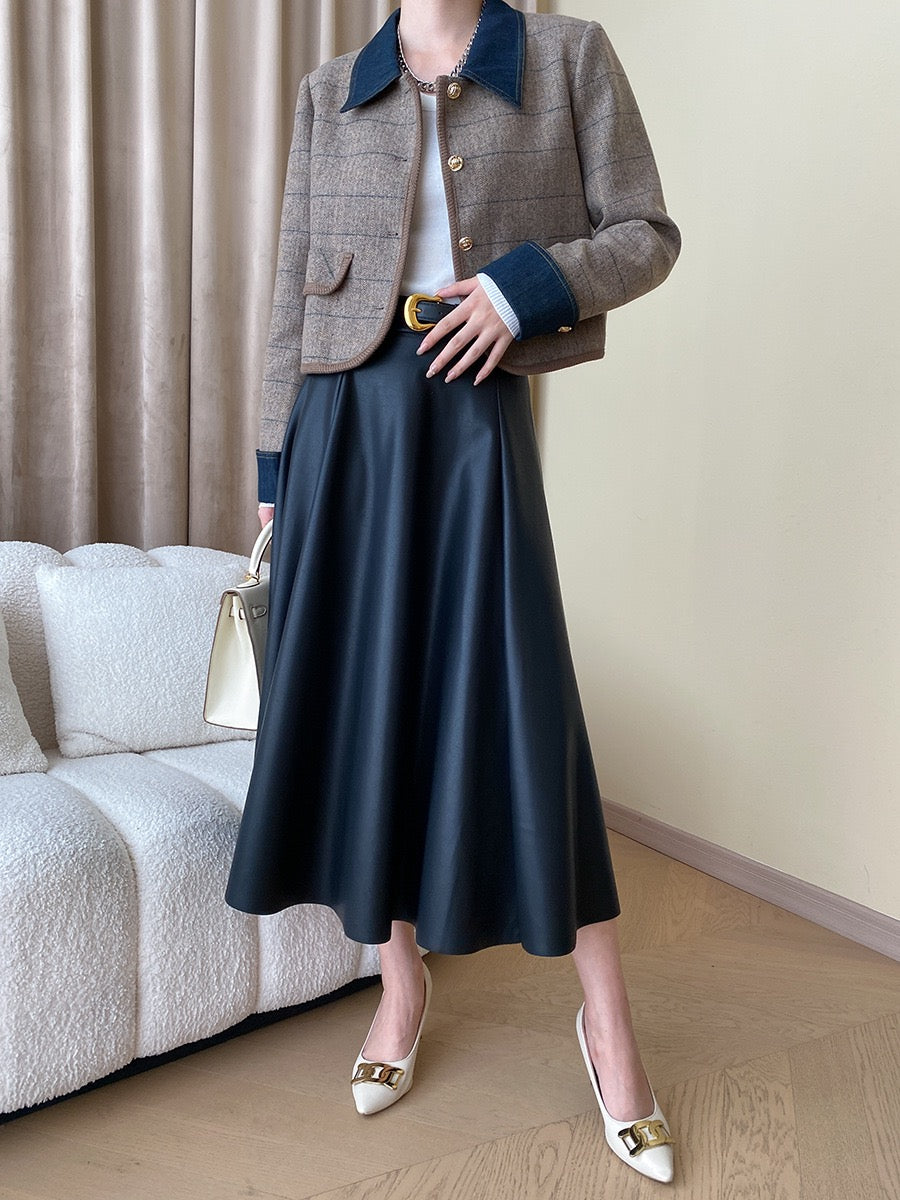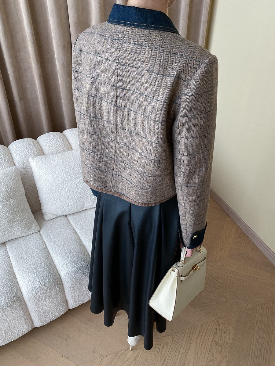 Collar and cuffs with denim patchwork