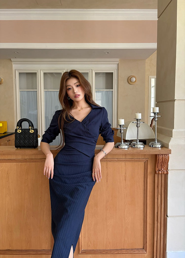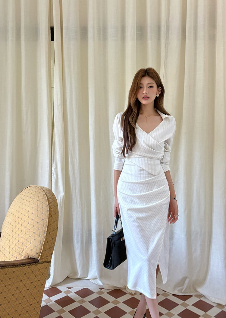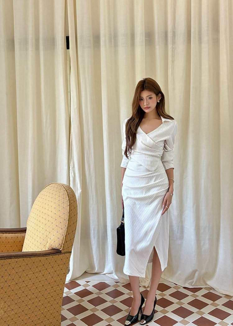 Elegant Striped Shirt Dress