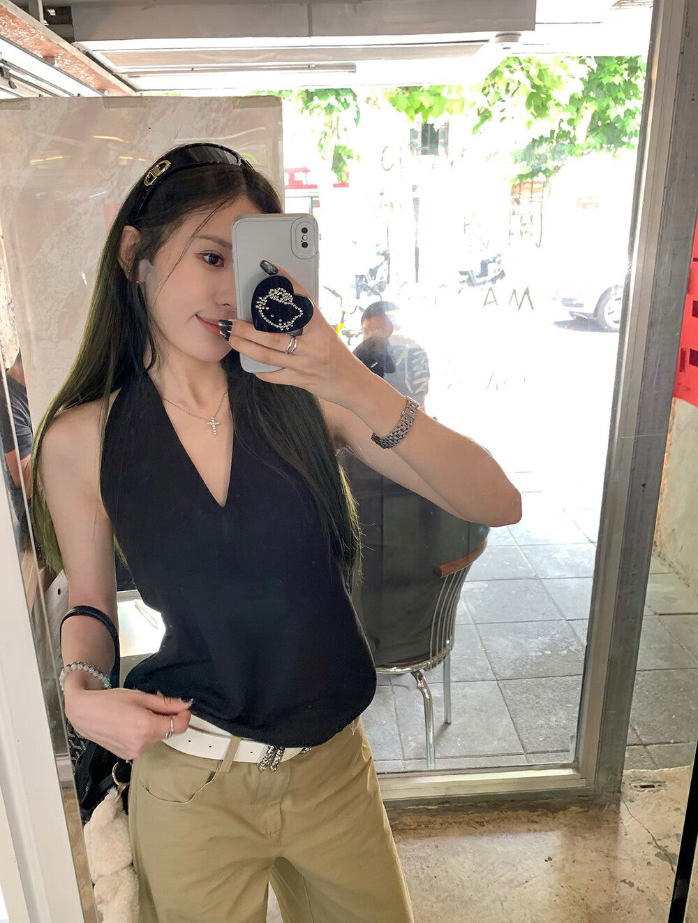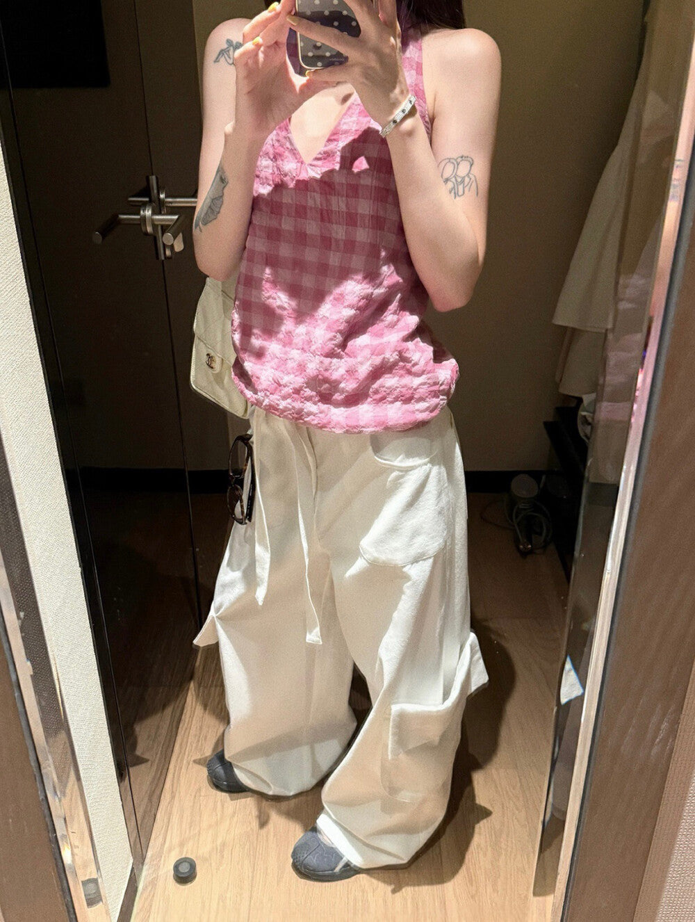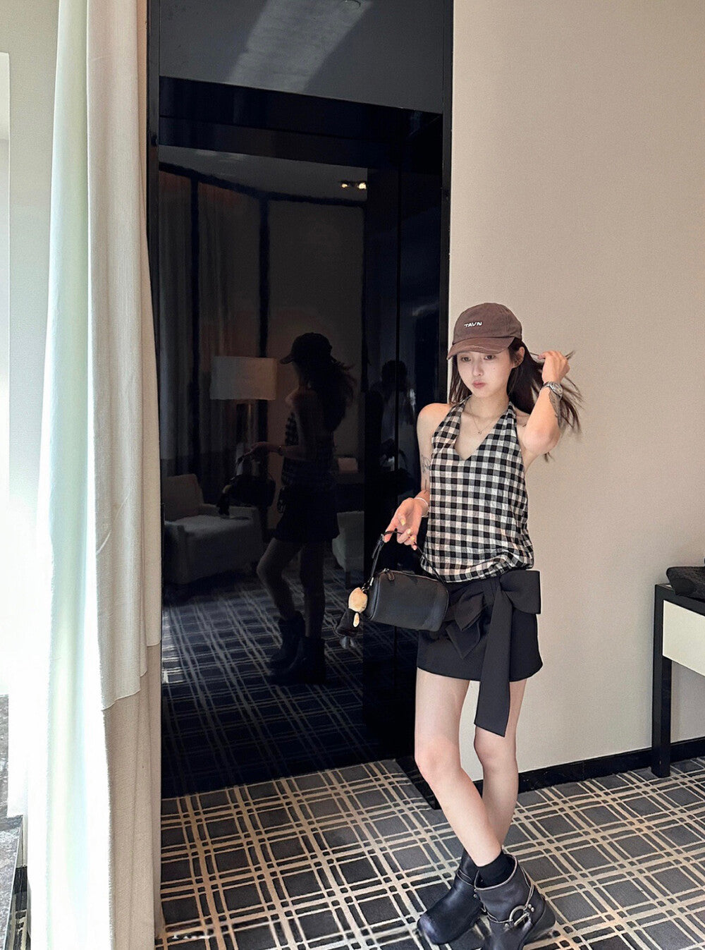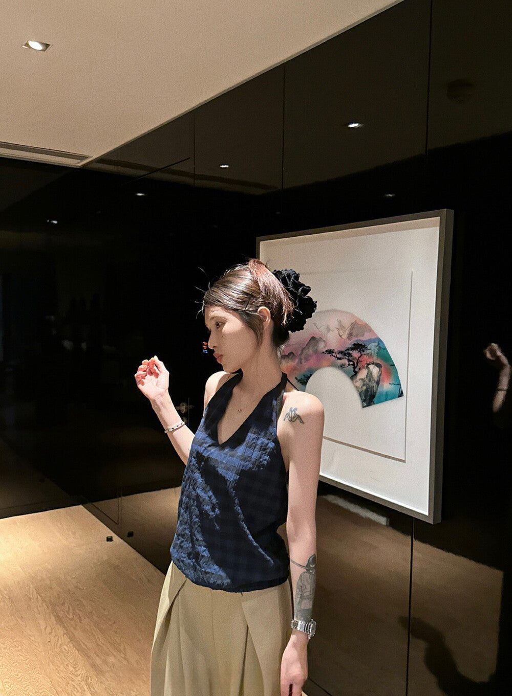 Halter Neck Plaid Tie-Back Backless Tank Top