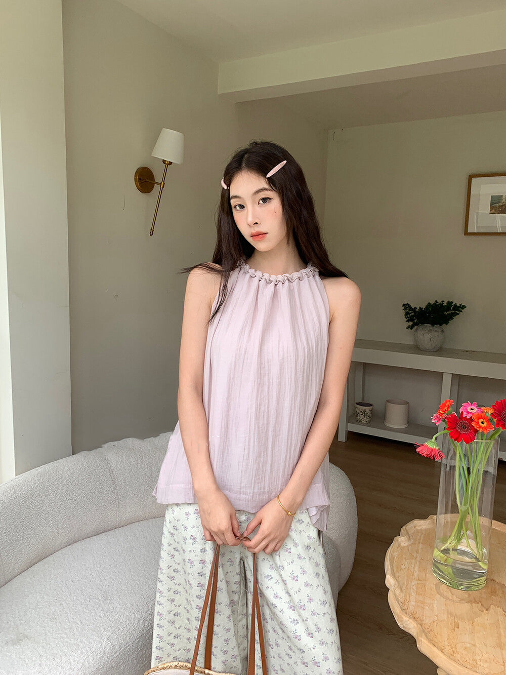 Halter cut showcasing elegant shoulder lines