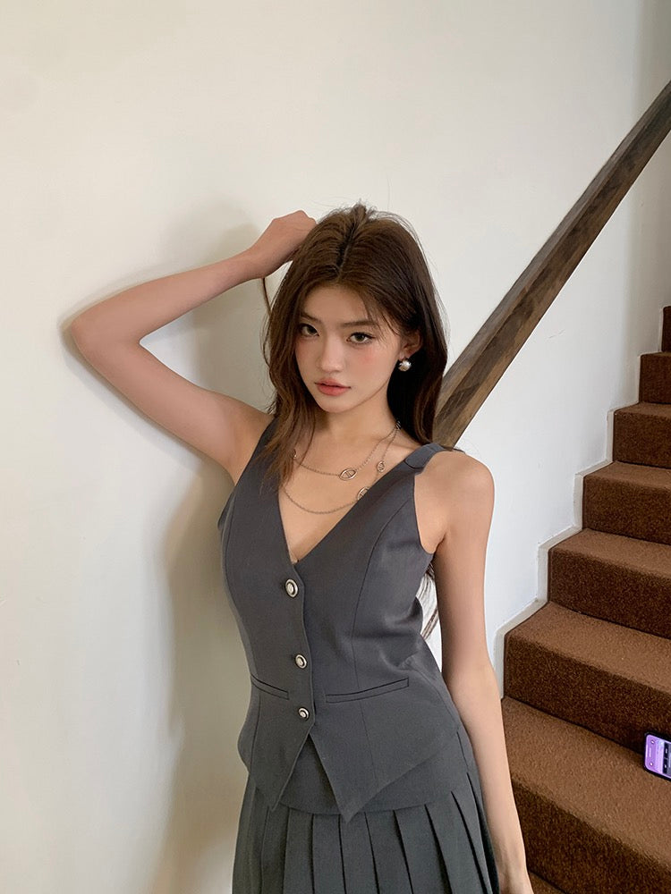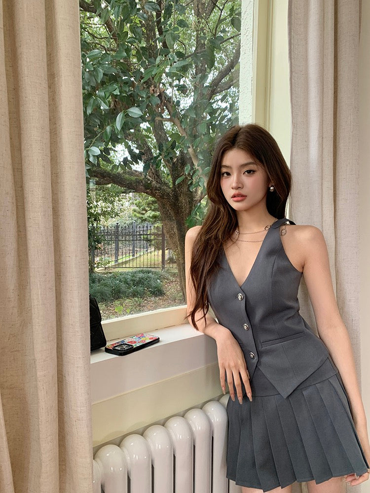 Structured Vest + Pleated Skirt: Fresh and Stylish
