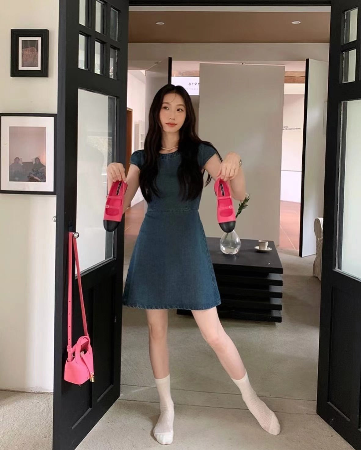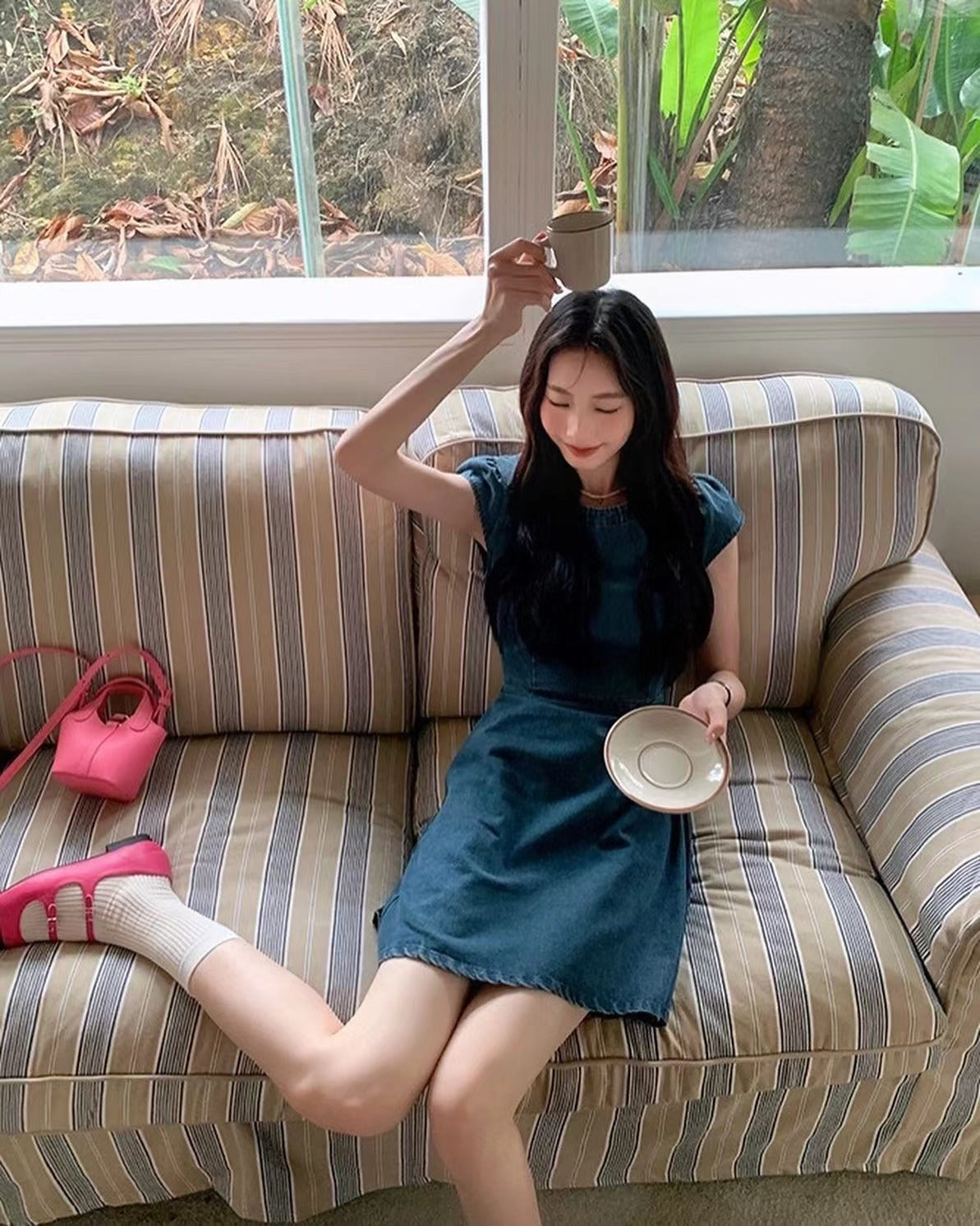 Surprise at the back!!Drawstring hollow-out designLooks like a 🦋~Youthful with a touch of sensuality 💗Denim fabric