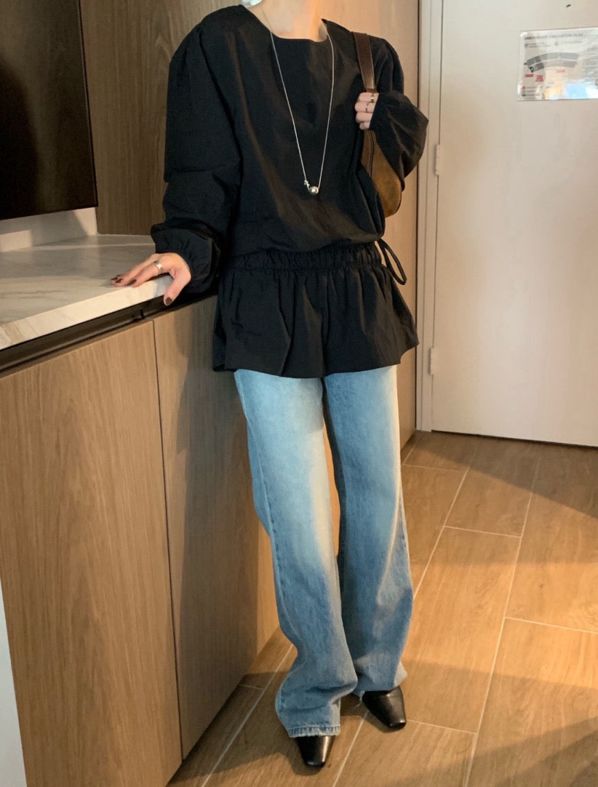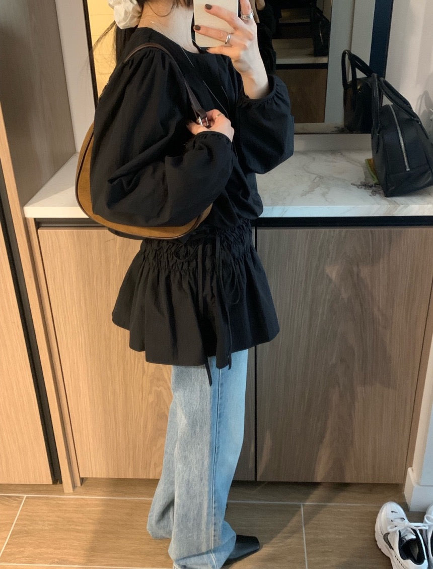 Round-neck tie-up shirt