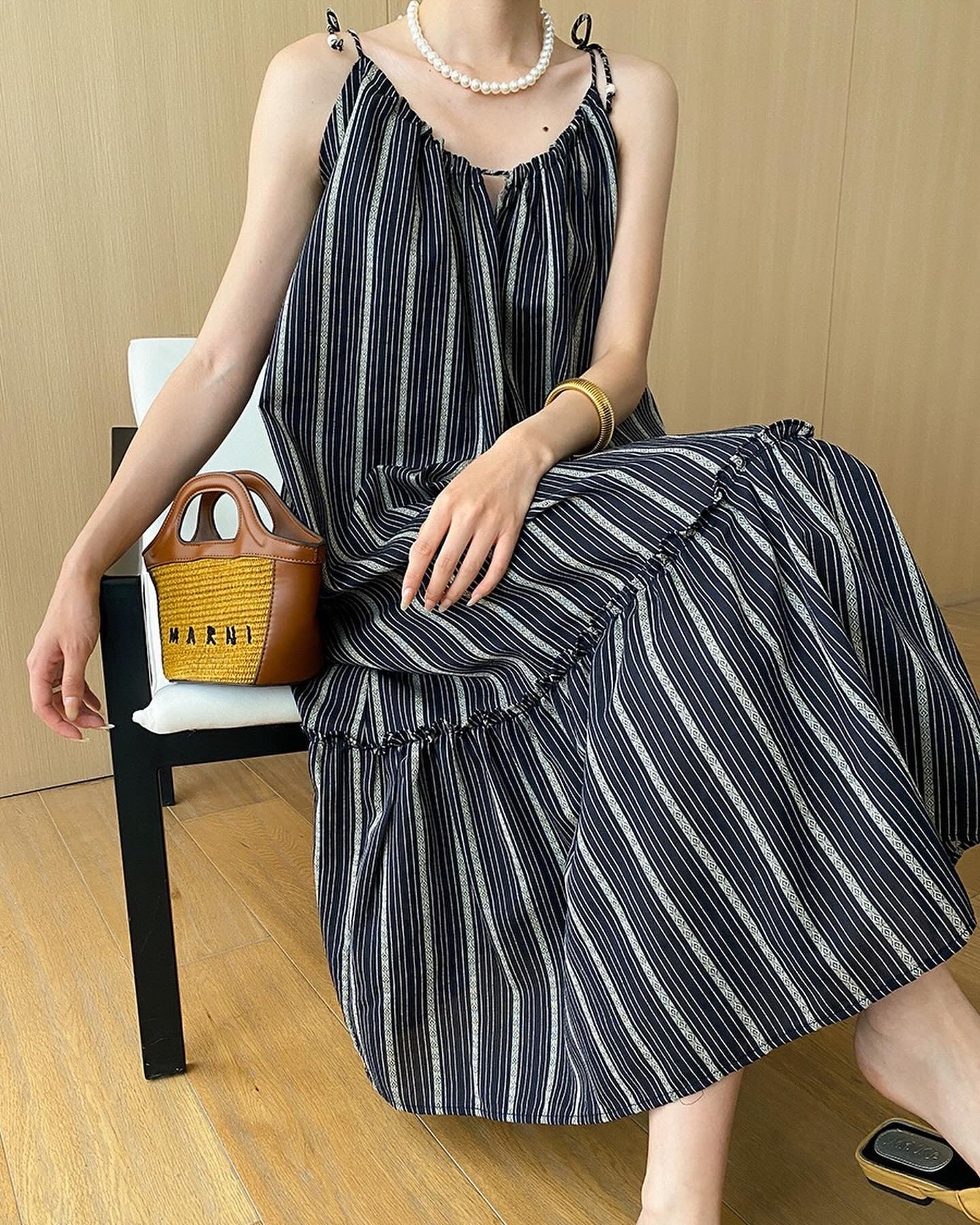 Striped Fabric Maxi Dress