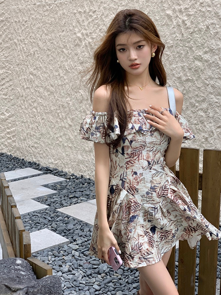 Vintage Off-Shoulder Cinched Waist A-Line Princess Dress