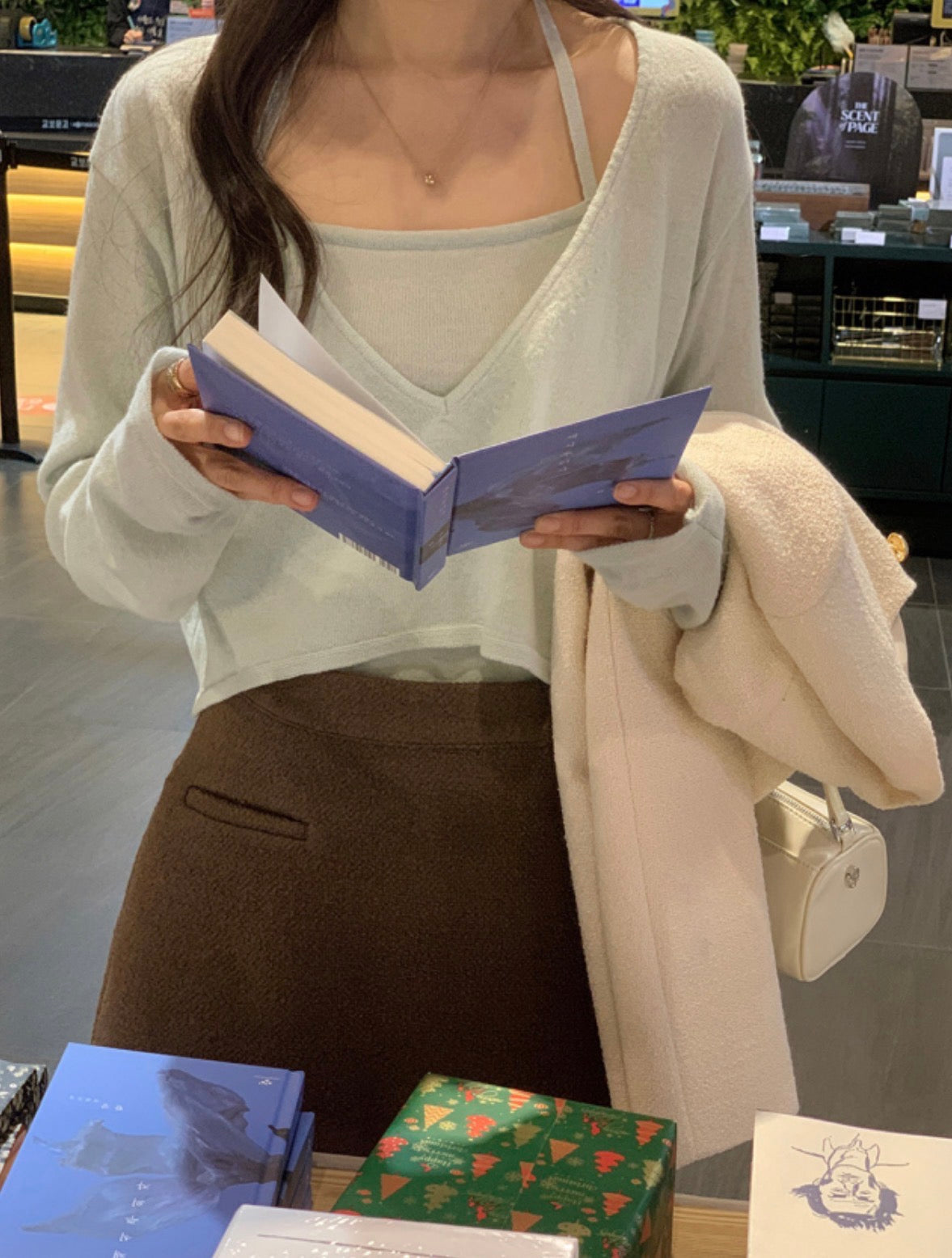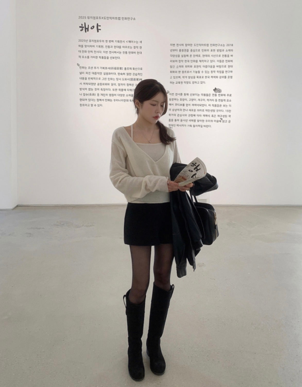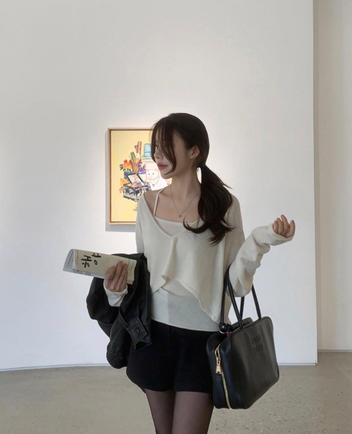 Long-sleeve knit paired with a camisole, offering versatile style options