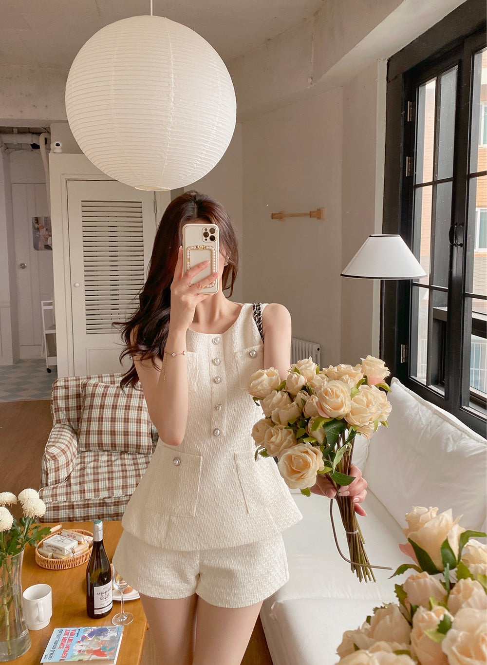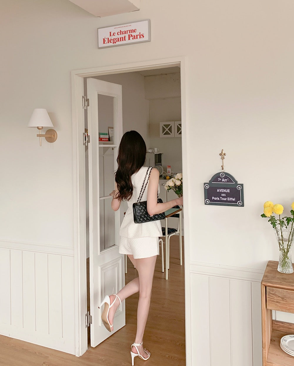 Chanel-inspired Waist-cinching Slim-fit Top + Versatile Shorts Set