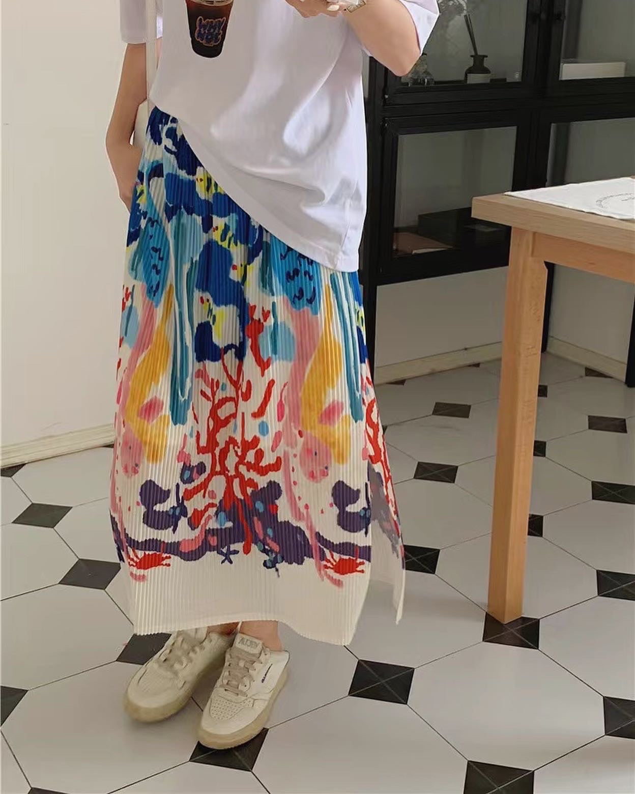 店主の自分用🙋🏻♀️上のトップスの白いトップ、すでにとても素敵💕ゴムスカートのウエスト~伸縮性がとてもいい👍素材が柔らかくて快適です!ポリエステル生地素材:100% ポリエステルサイズ:フリーサイズスカート丈 80cmウエスト 62-88cm*全てのサイズは手作業で測定しているため、誤差が1-2cm程度生じる可能性があります。