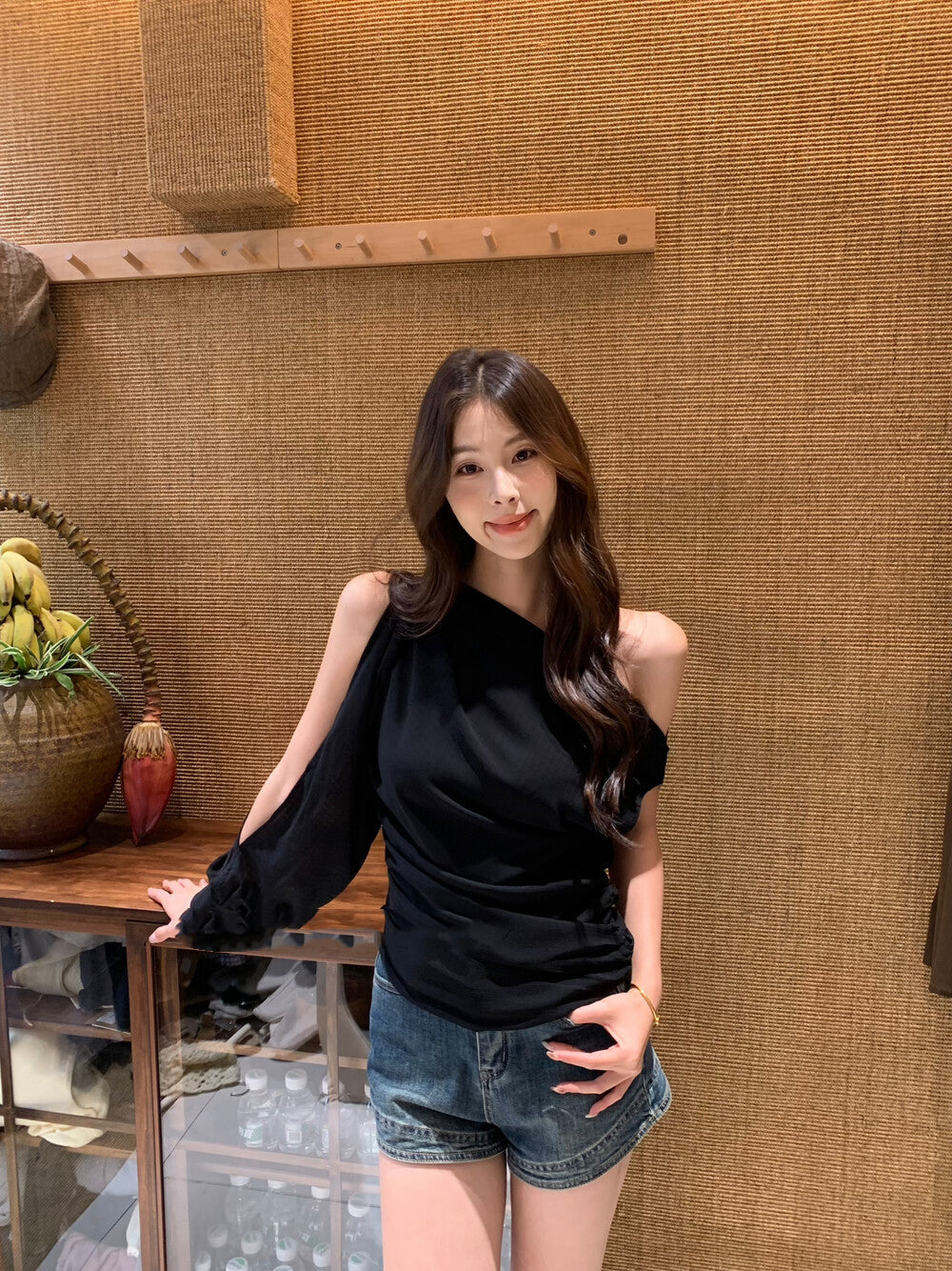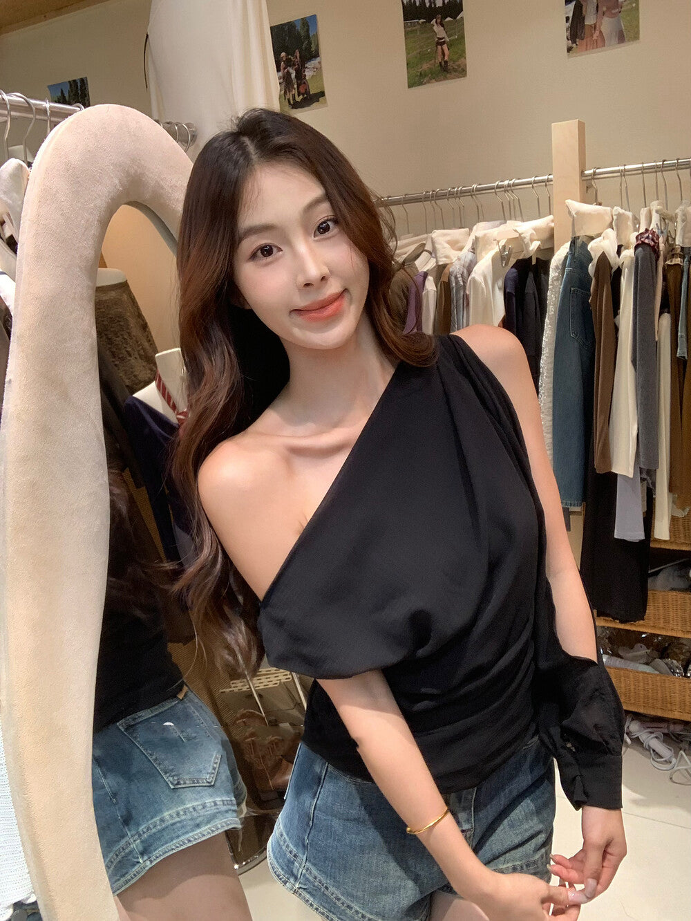 片袖デザイン、アシンメトリーな美しさを演出💫