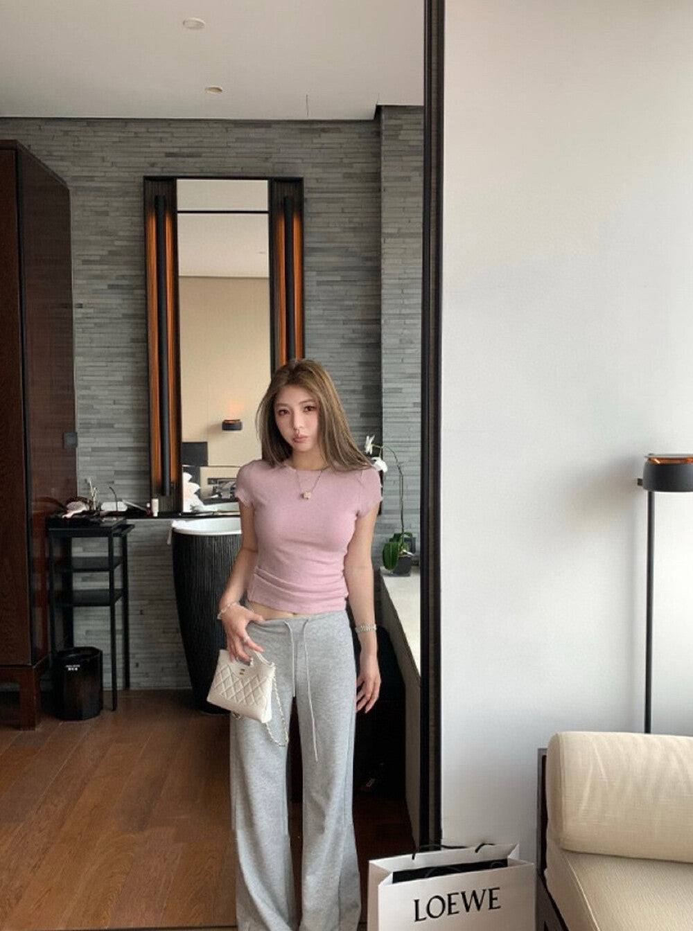 ドローストリング付きハイウエストスリムフィットカジュアルパンツ