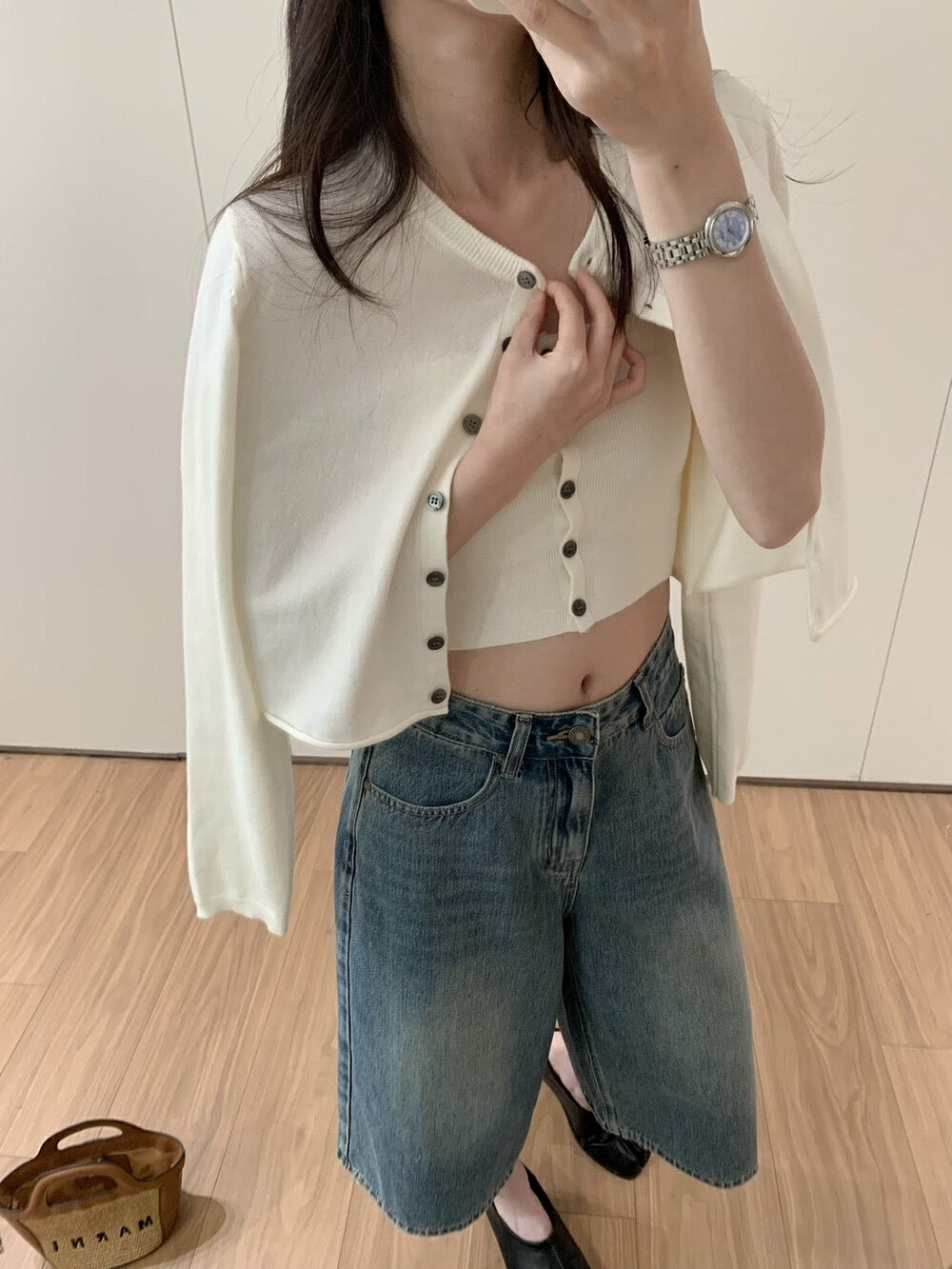 ニットカーディガン+チューブトップショートタンクトップセット