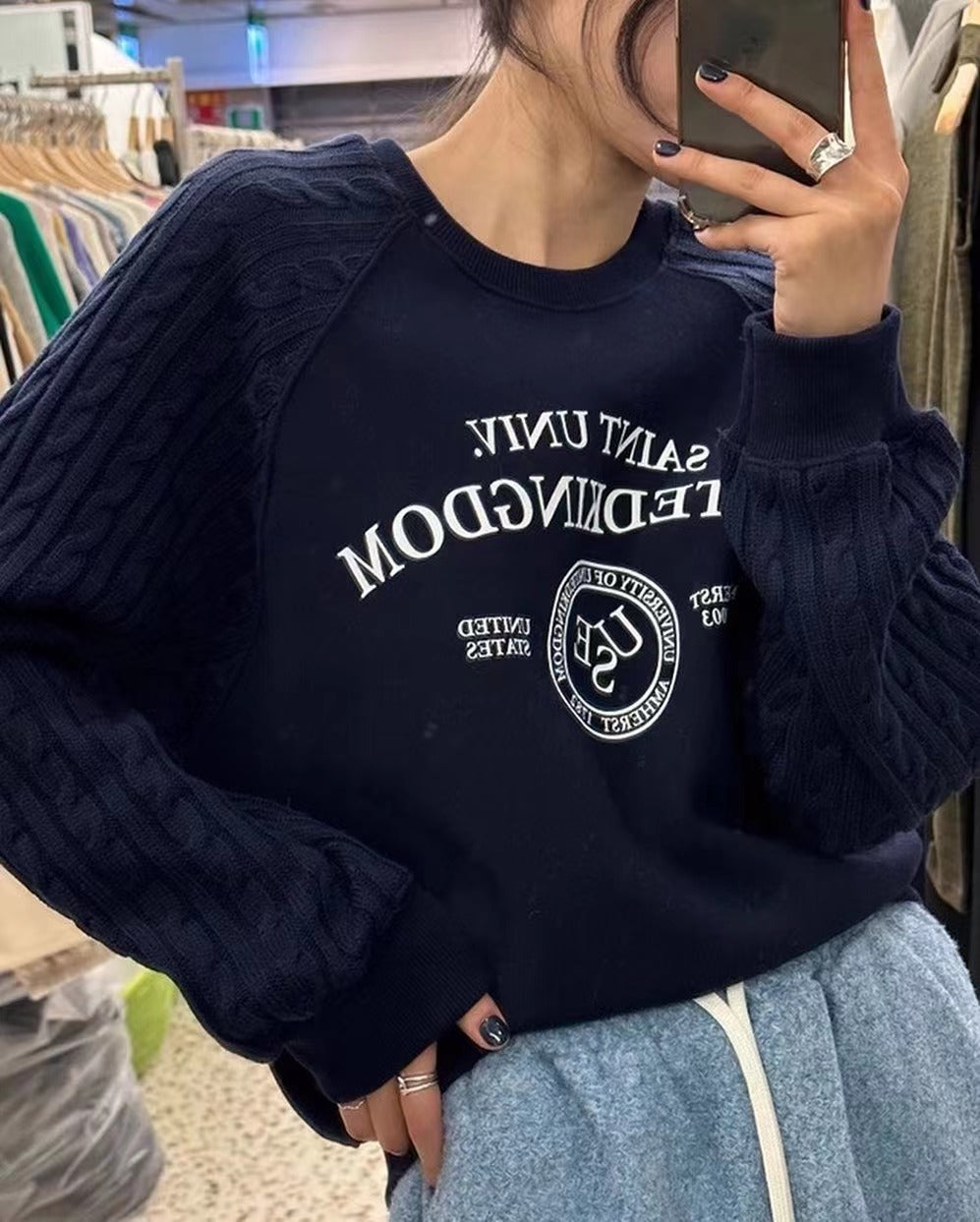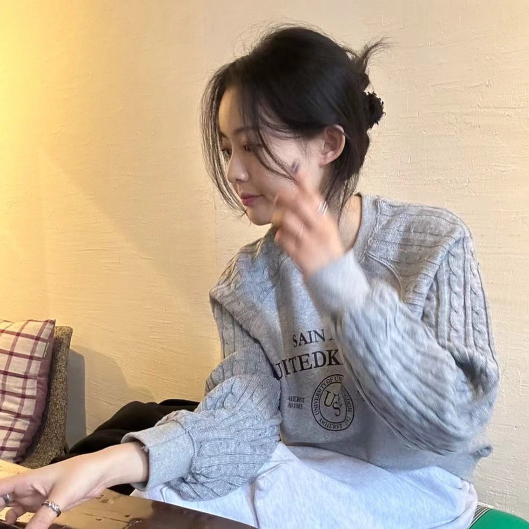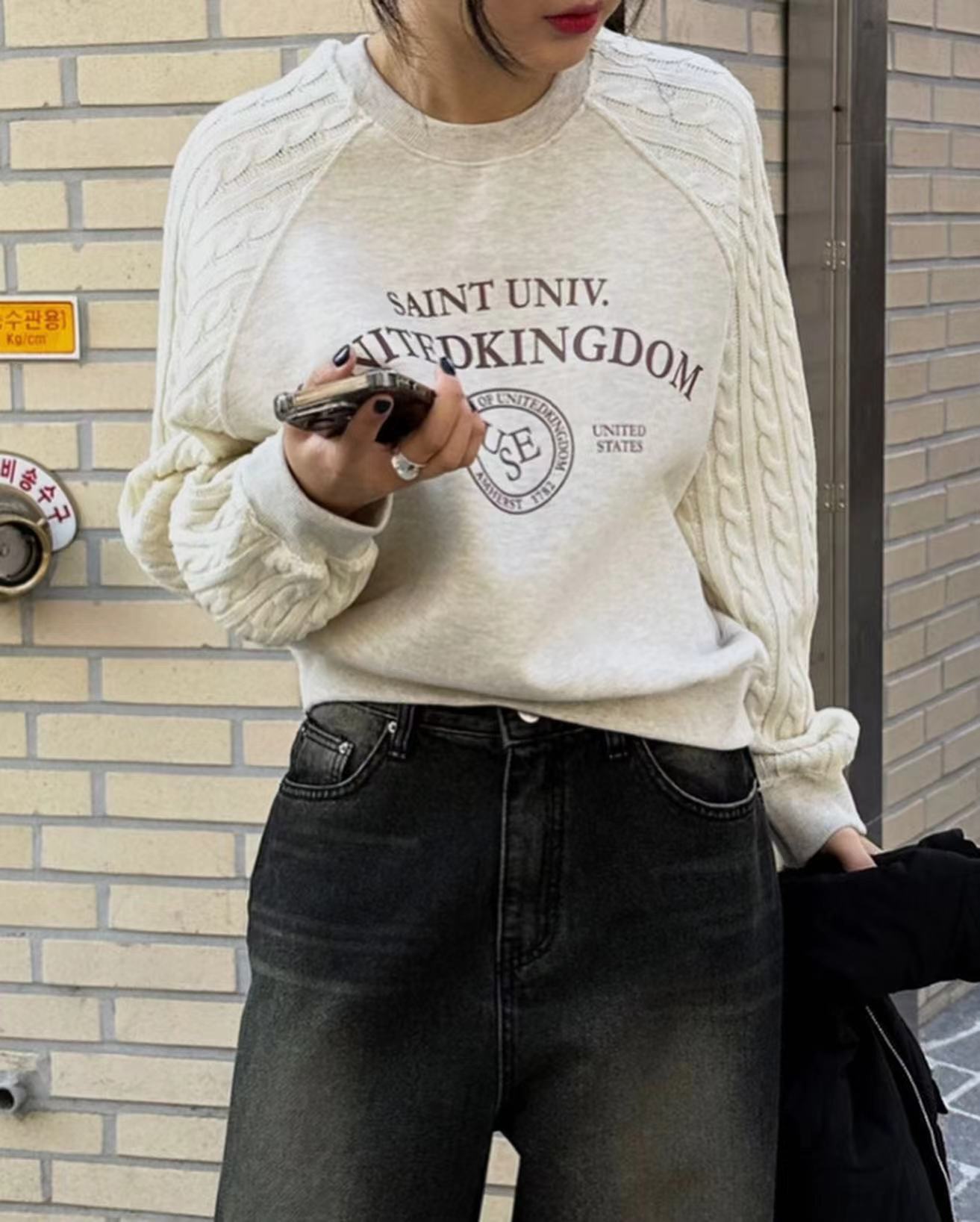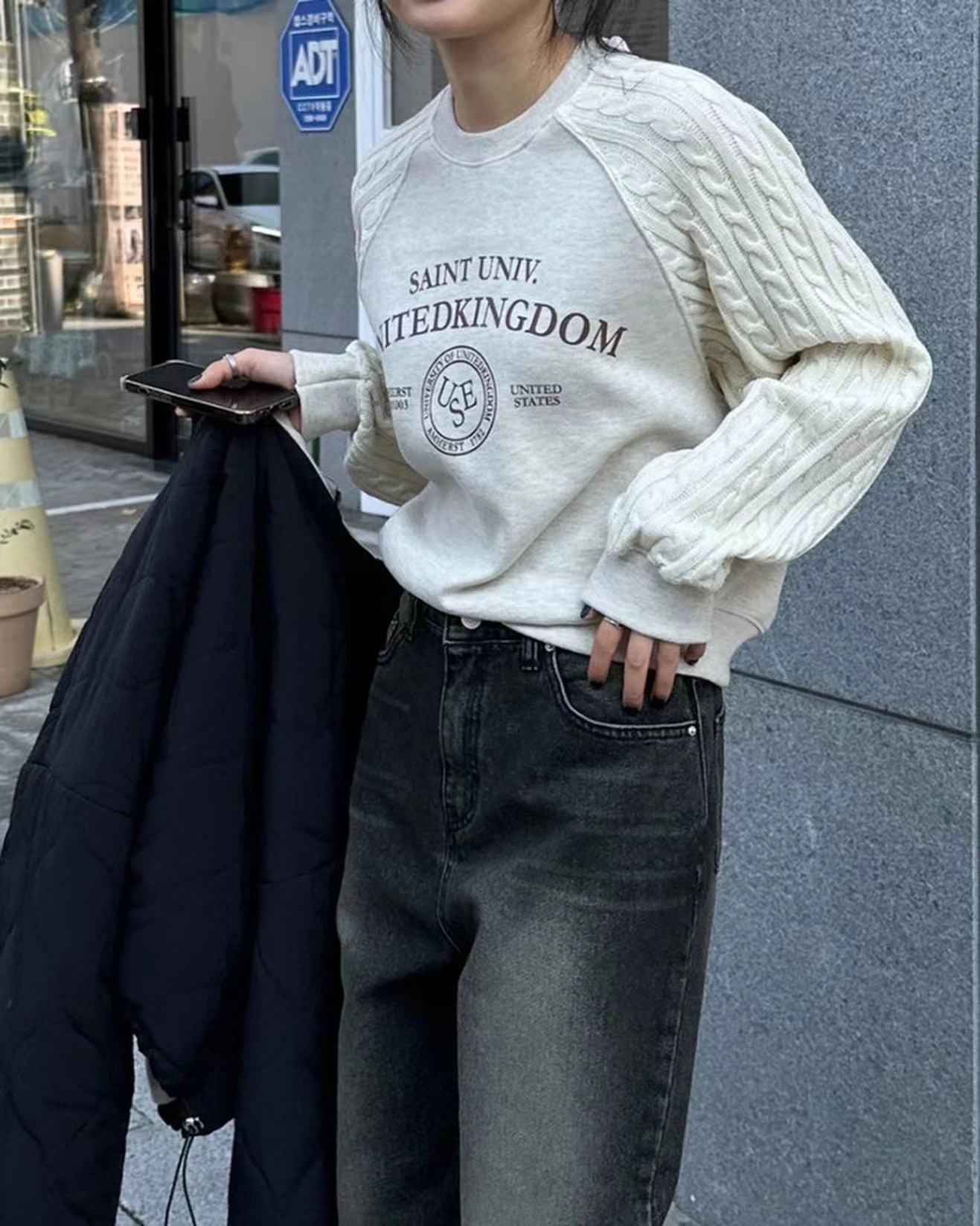 ニットケーブルスリーブスウェットシャツ