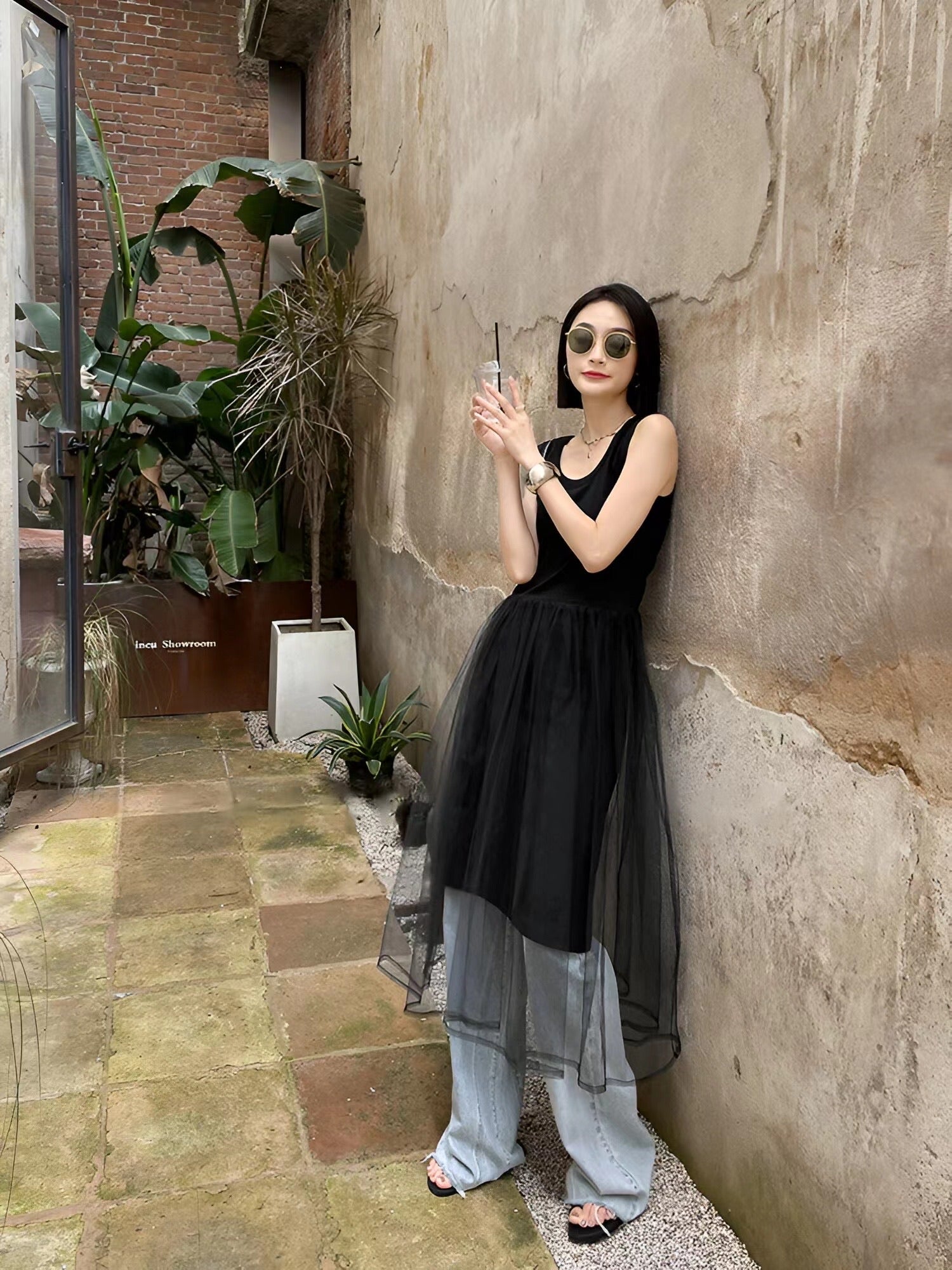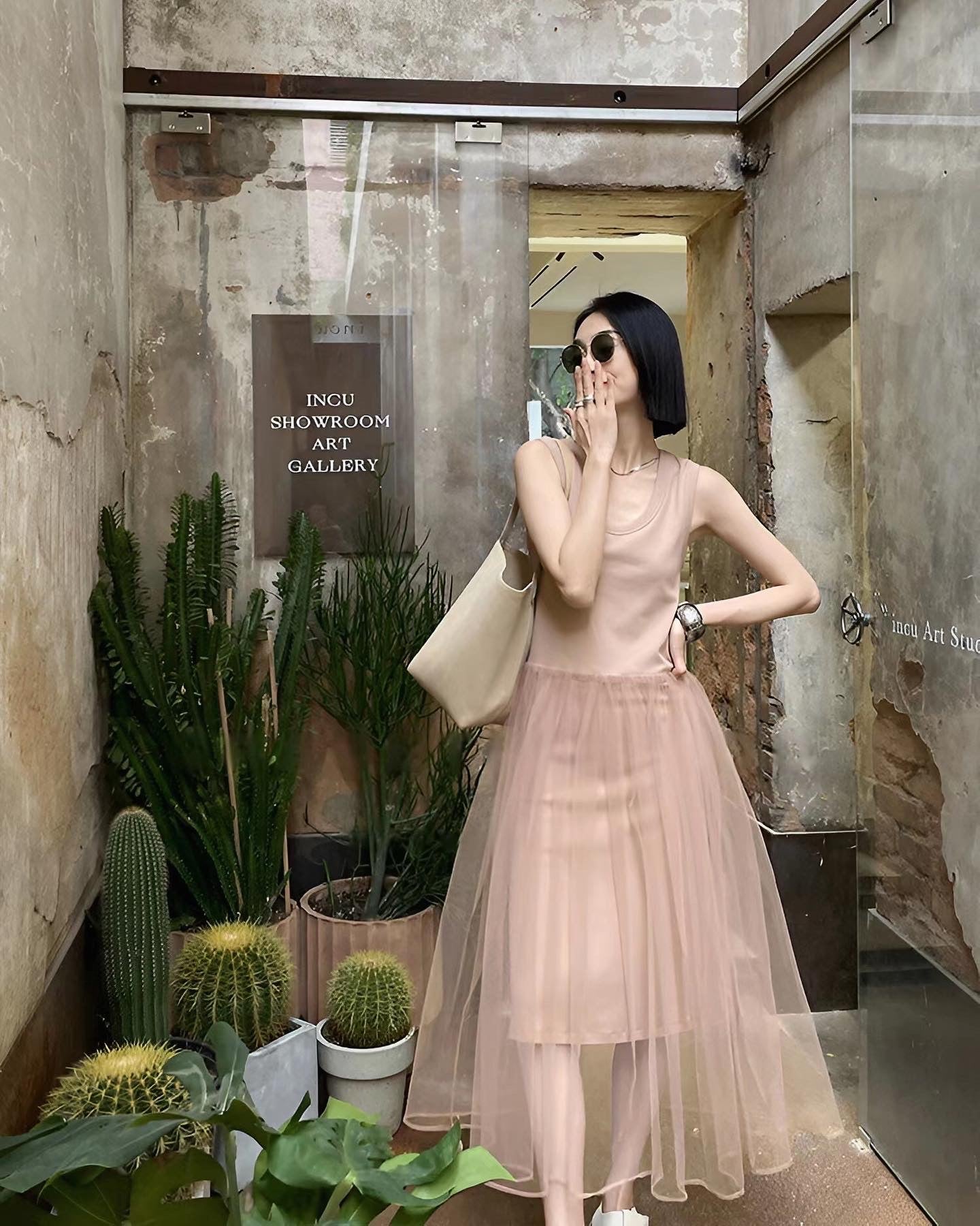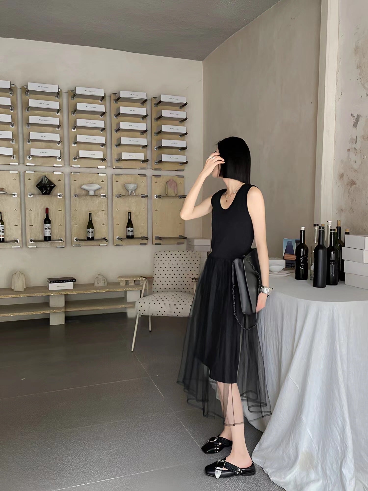 編み糸Uネックタンクトップロングスカート