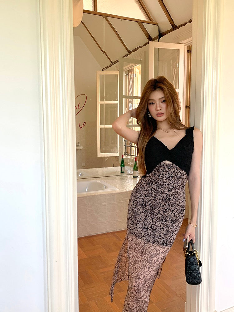 ロマンティックなバラのプリントが女性らしさを引き立てる 🌹