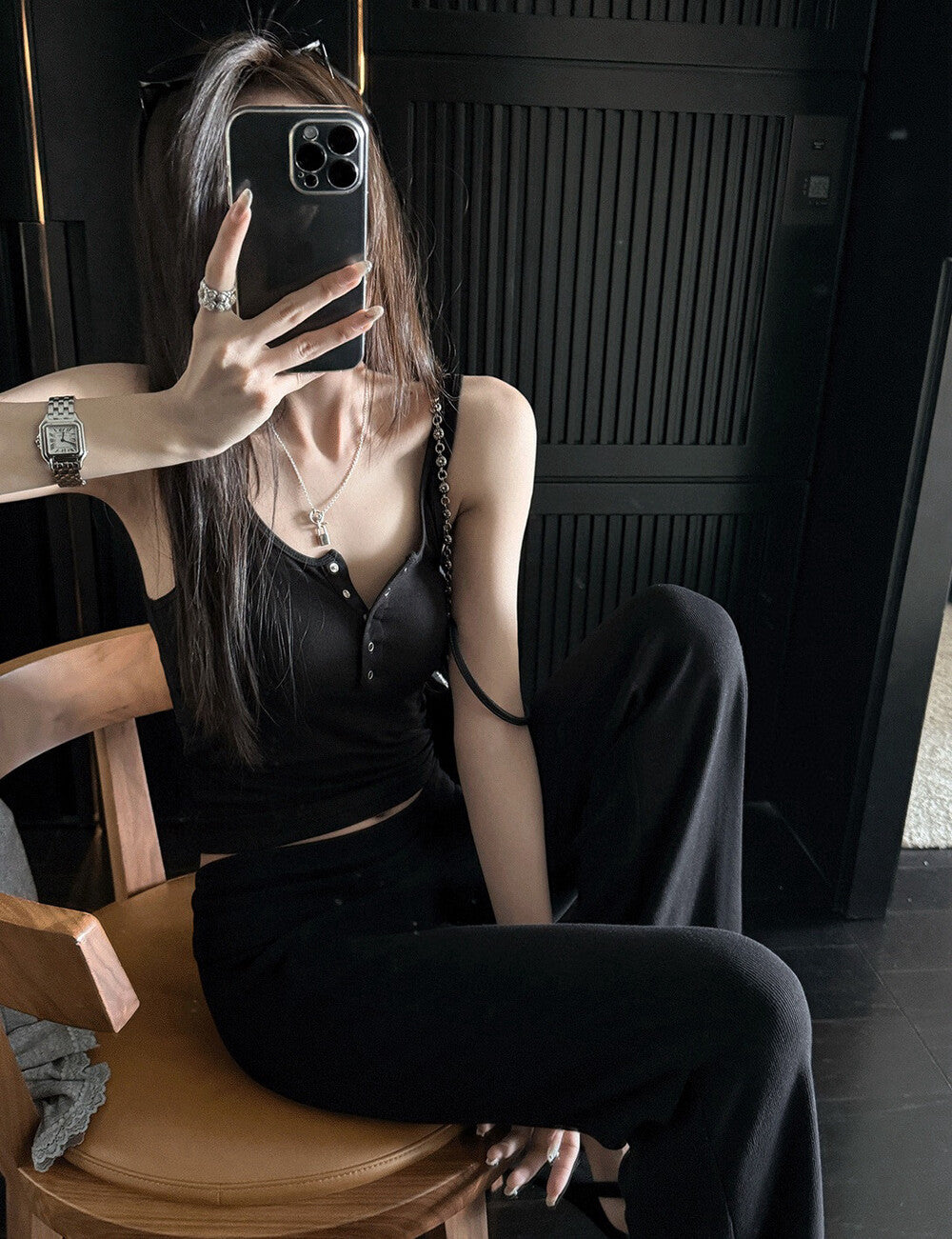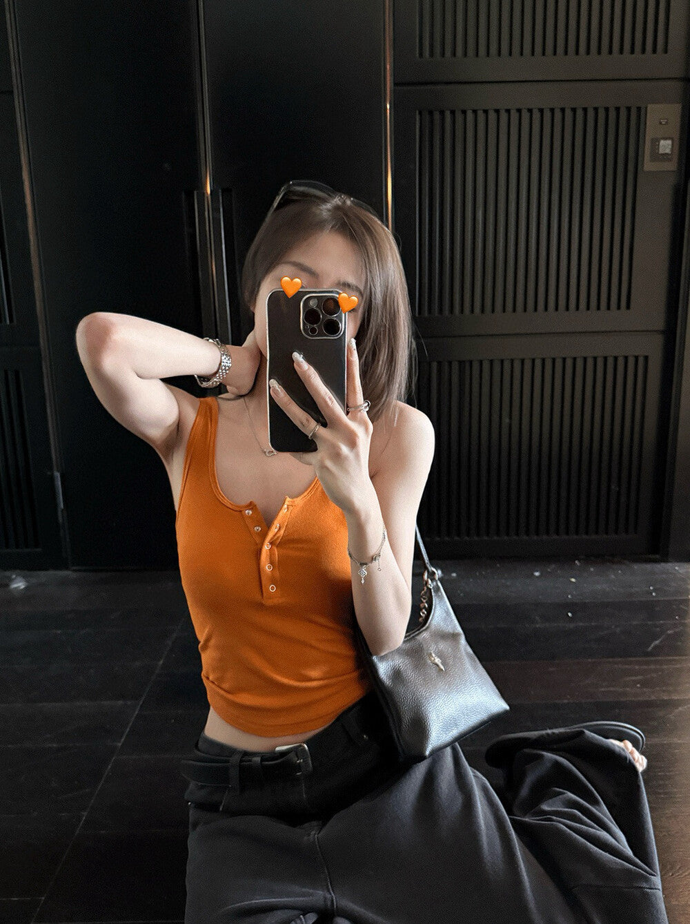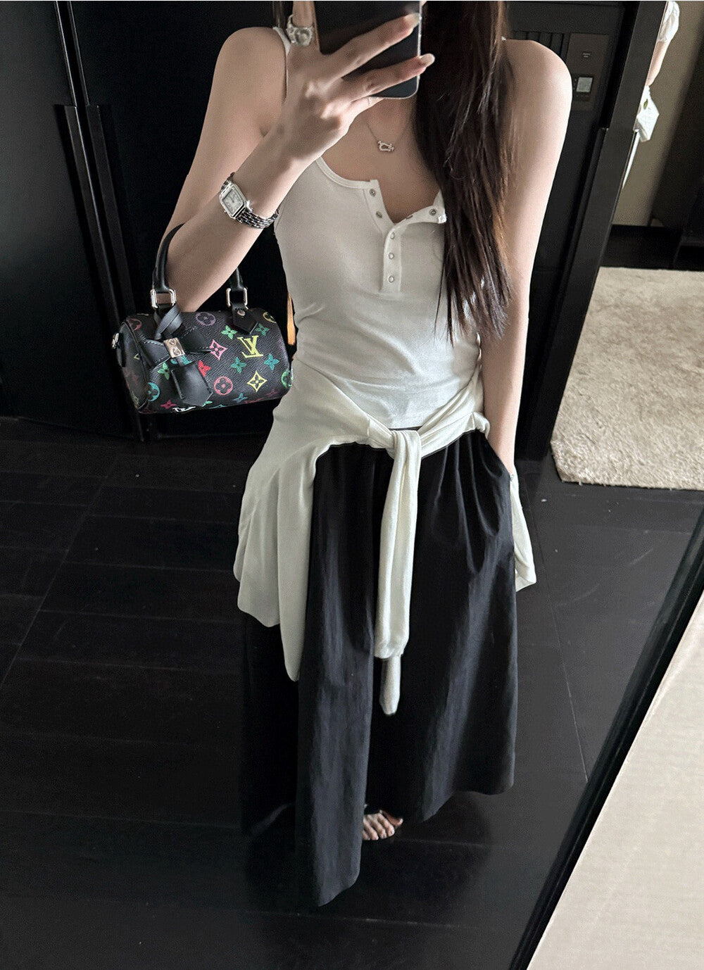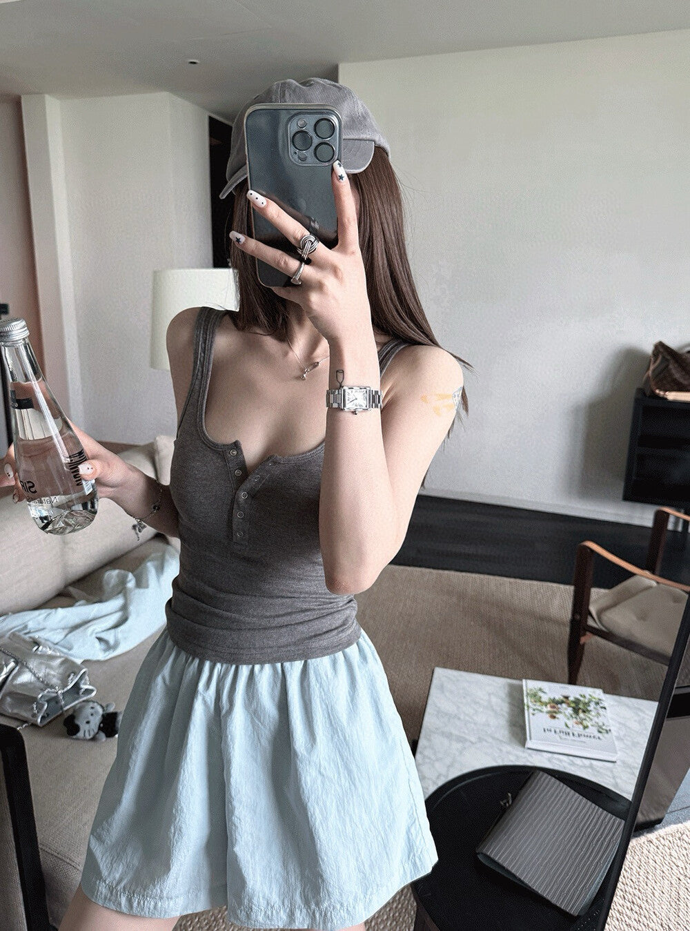 着脱しやすいスナップボタンデザイン ✨伸縮性のある生地が体にフィット細いストラップでデコルテラインを演出インナーにもアウターにも爽やかでスタイリッシュコットン混紡生地