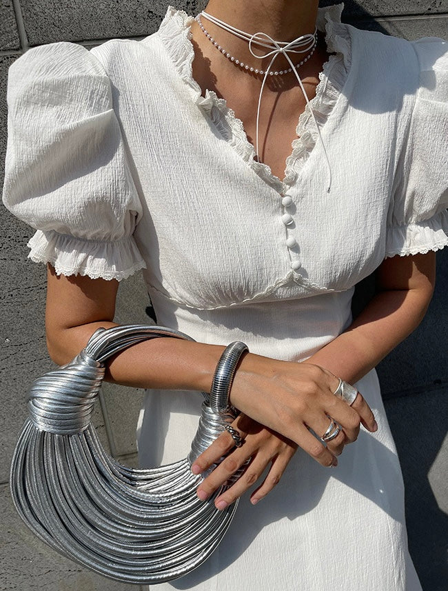 フリルの装飾が柔らかい印象をプラス