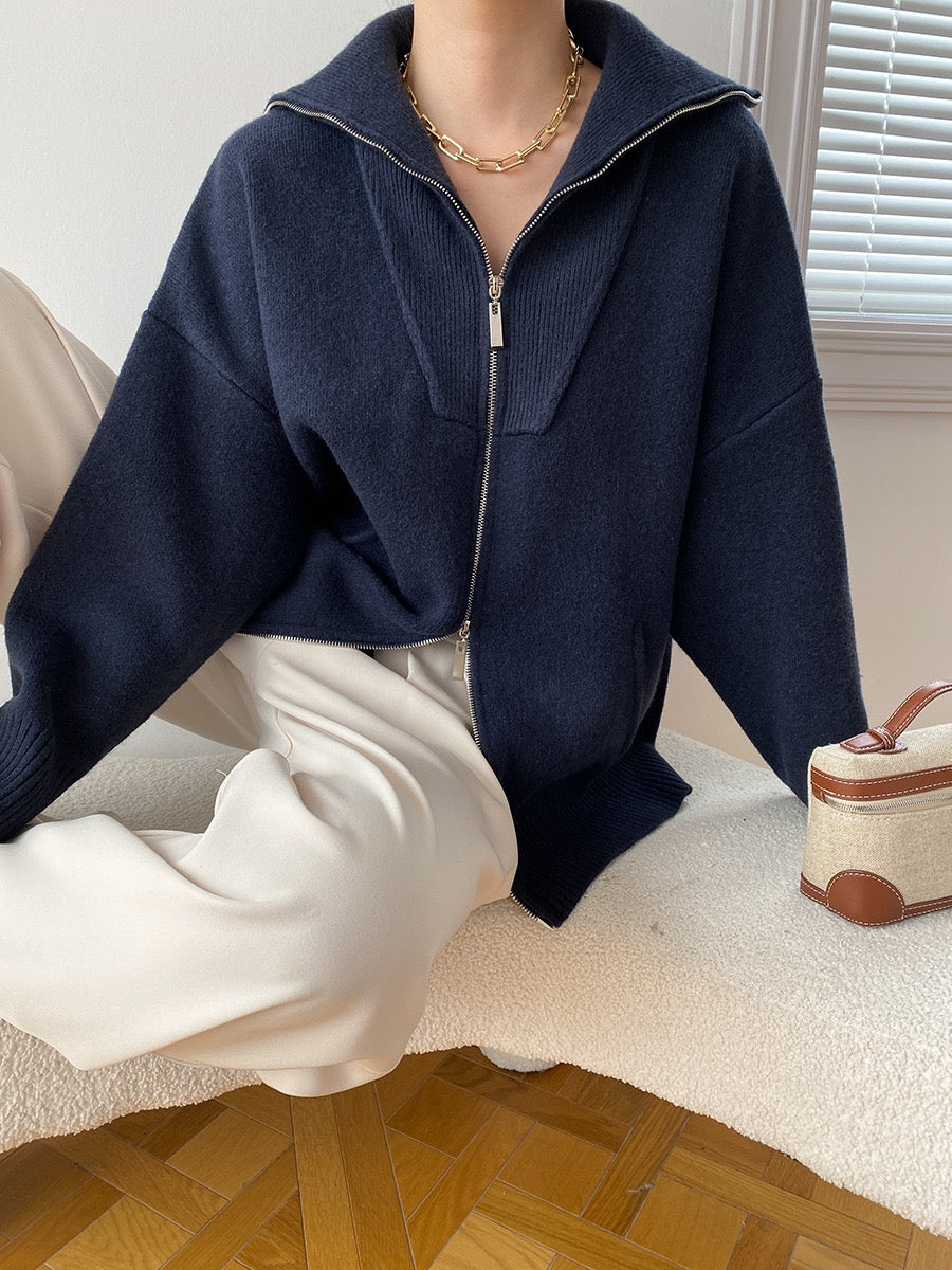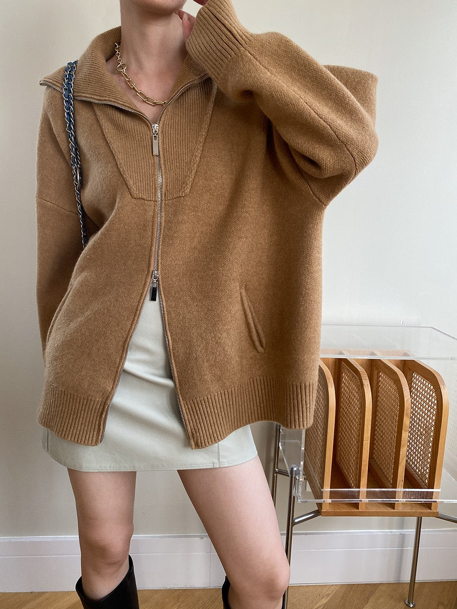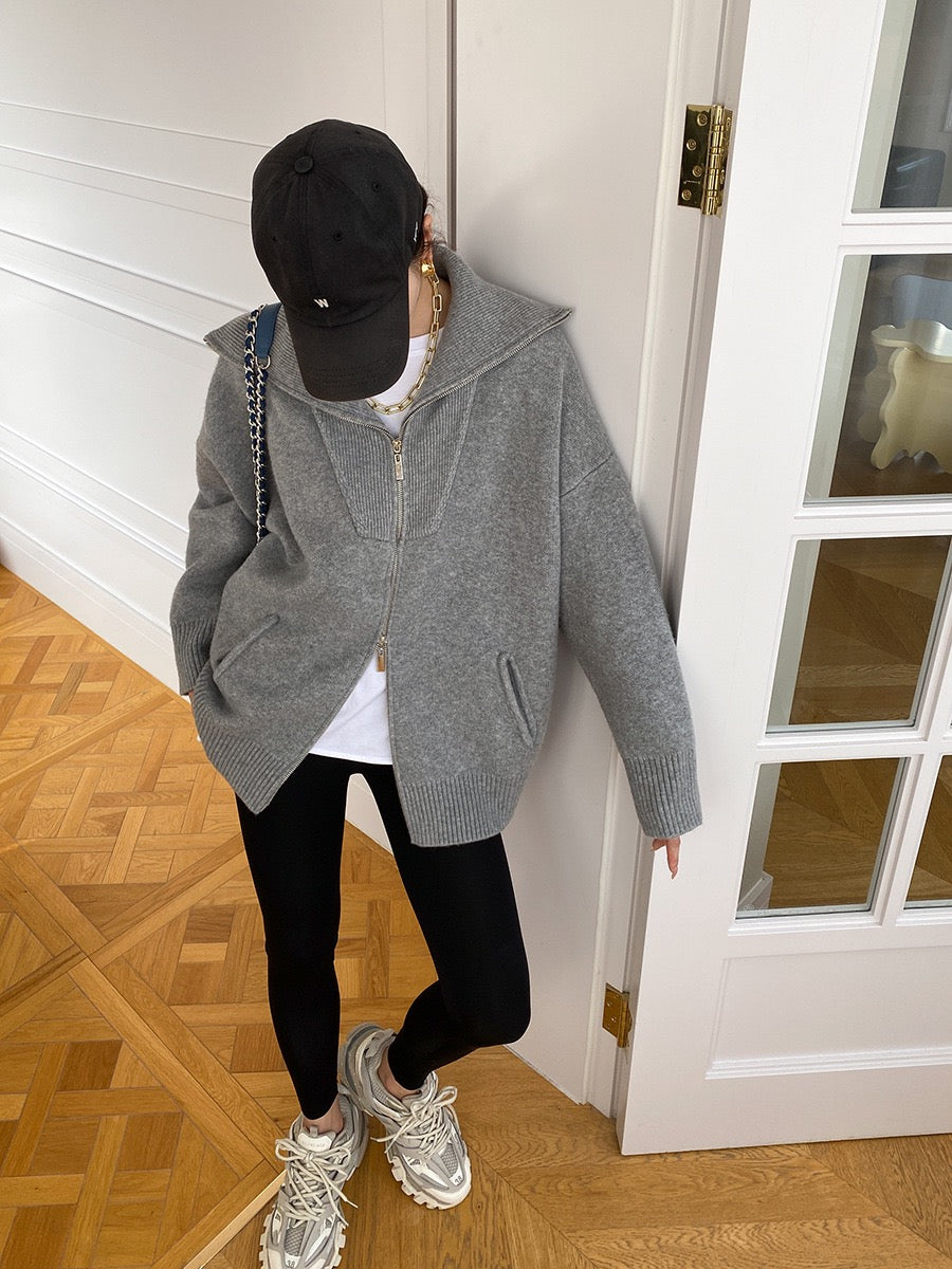 折り襟とダブルジッパーデザインで、小顔効果を簡単に演出し、自然なシルエットでスリムに見えます😉
