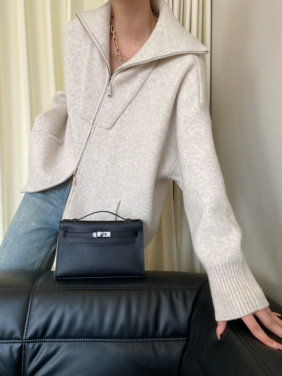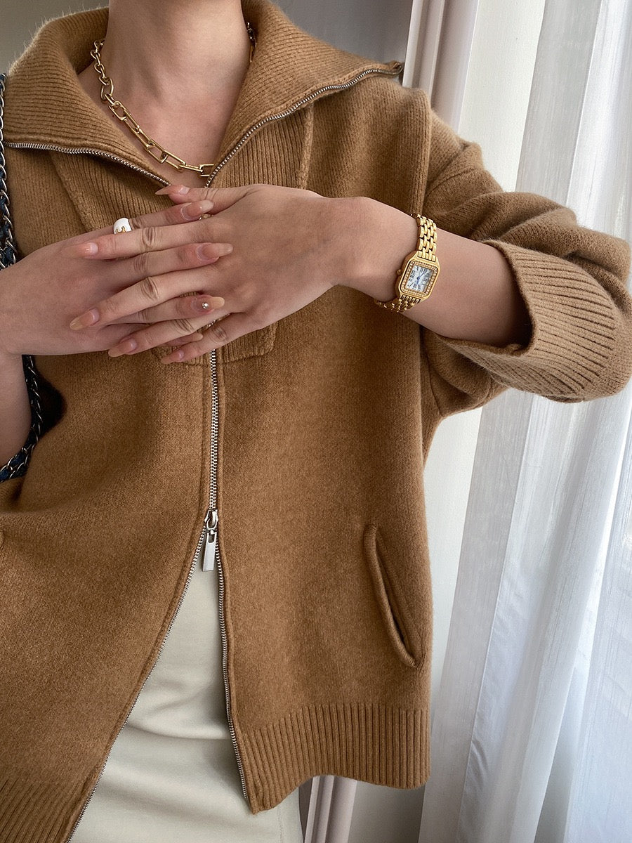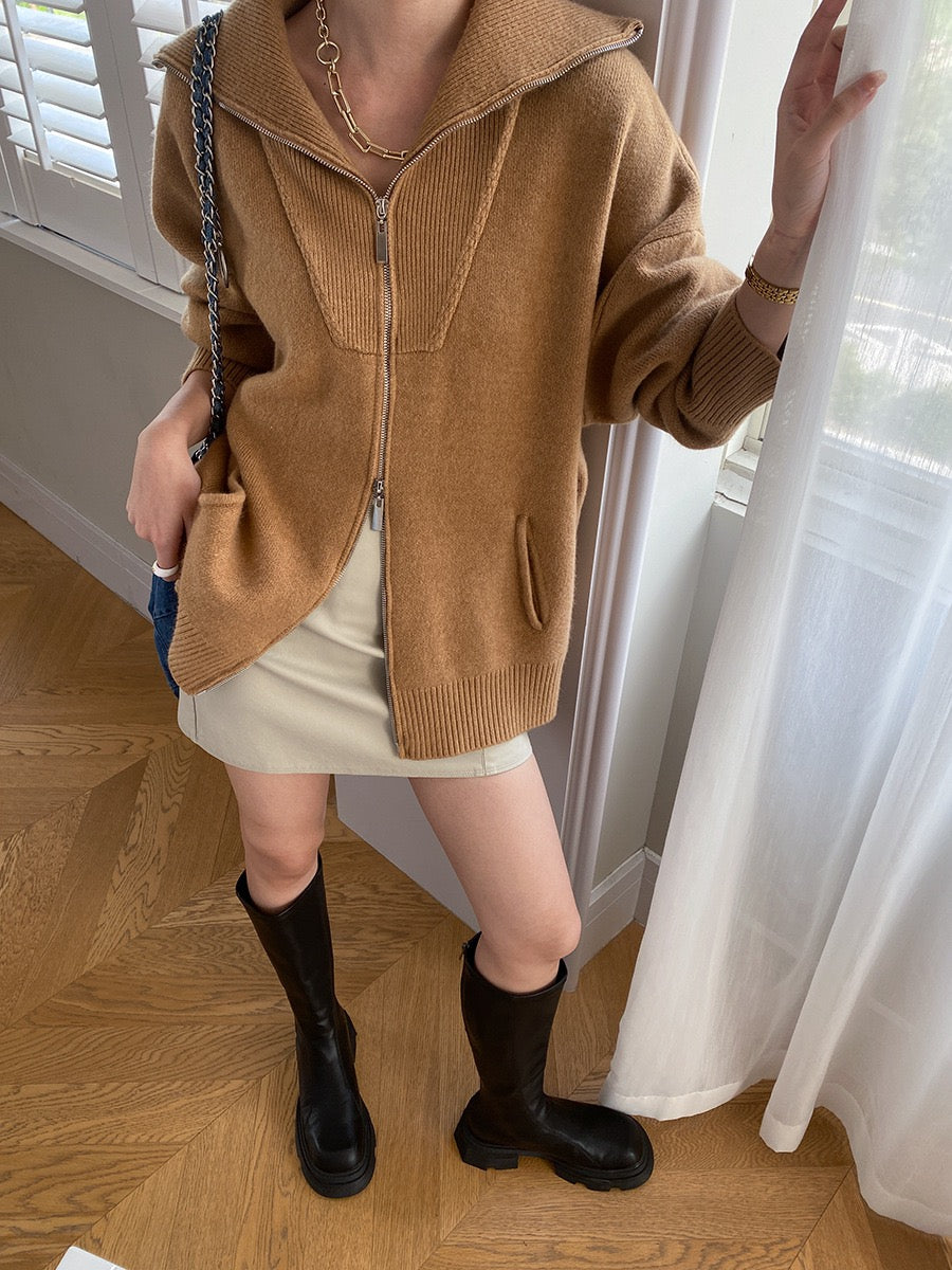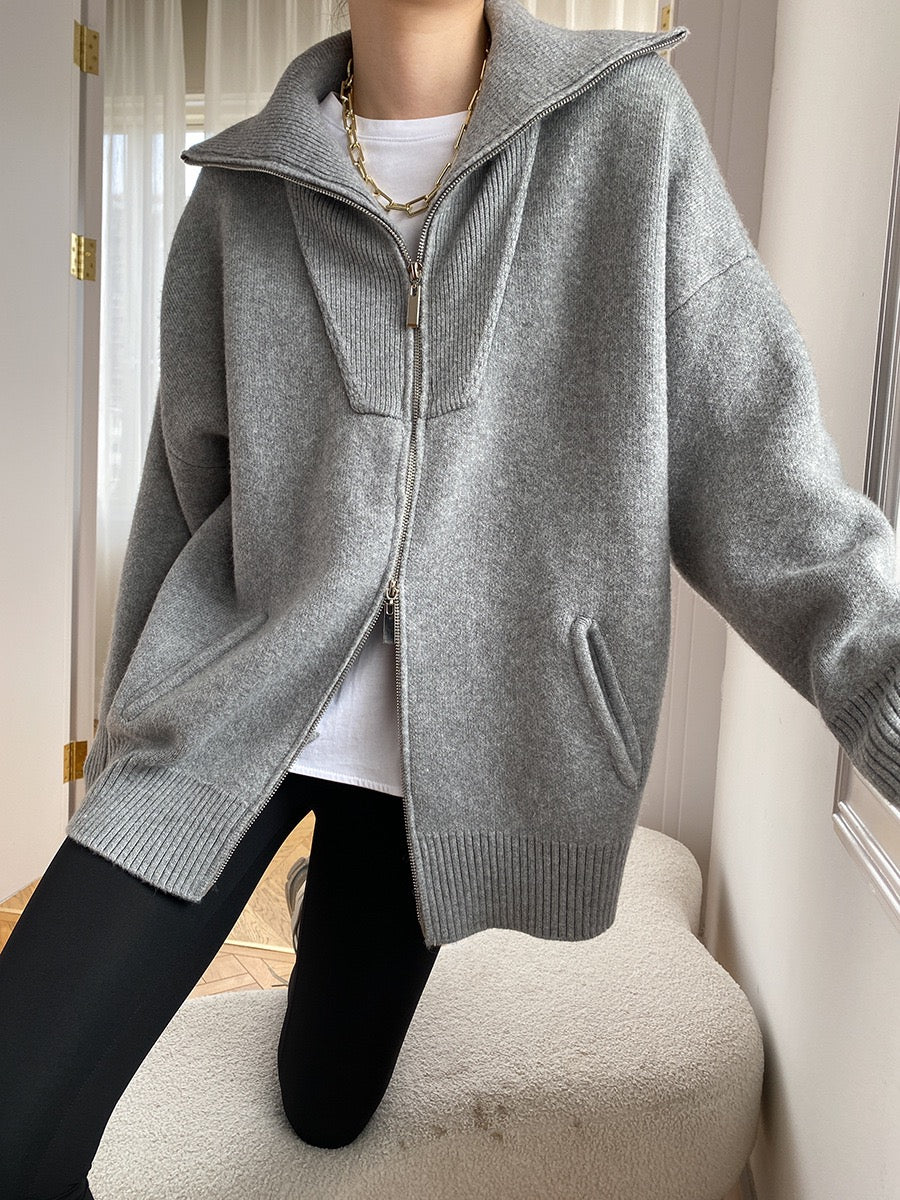 折り襟とダブルジッパーデザインで、小顔効果を簡単に演出し、自然なシルエットでスリムに見えます😉