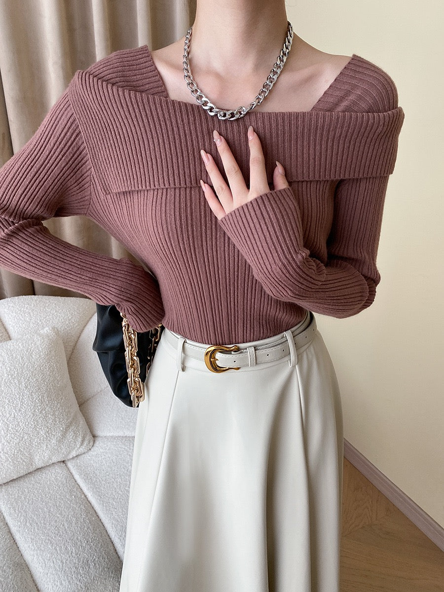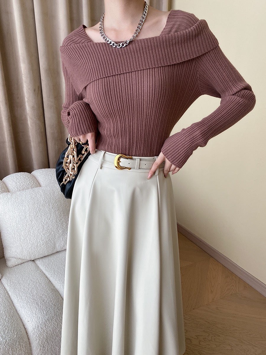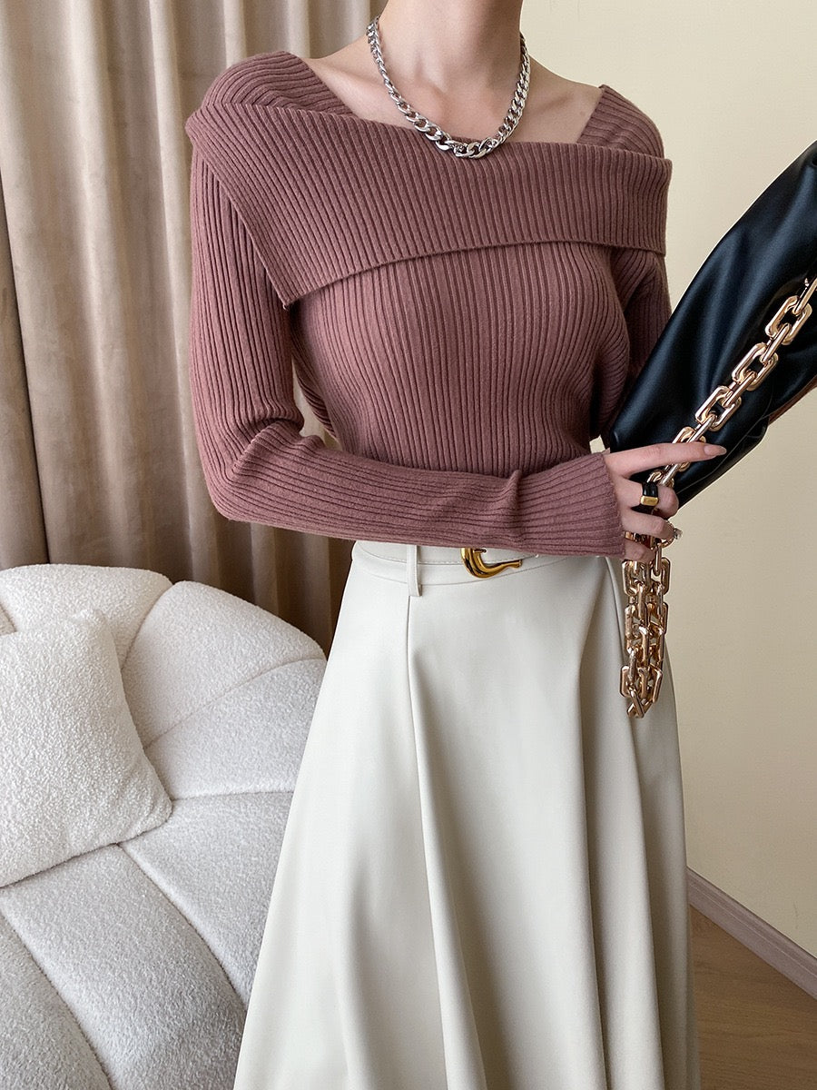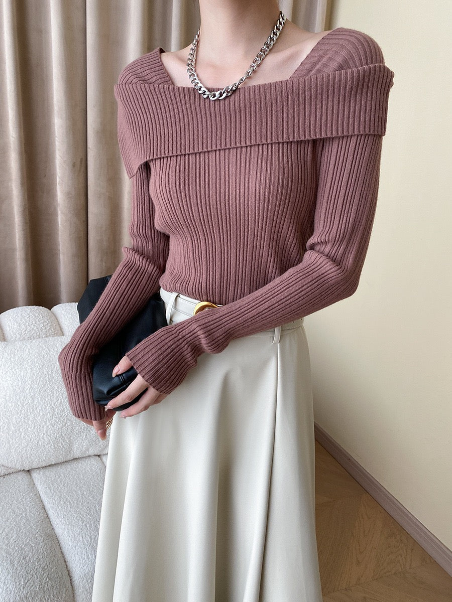 フレンチオフショルダーニットトップス