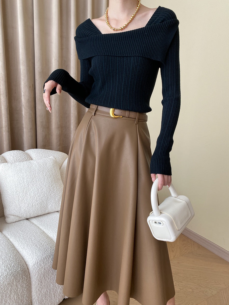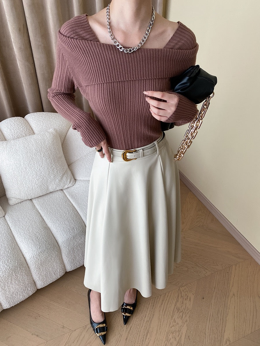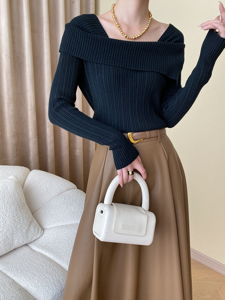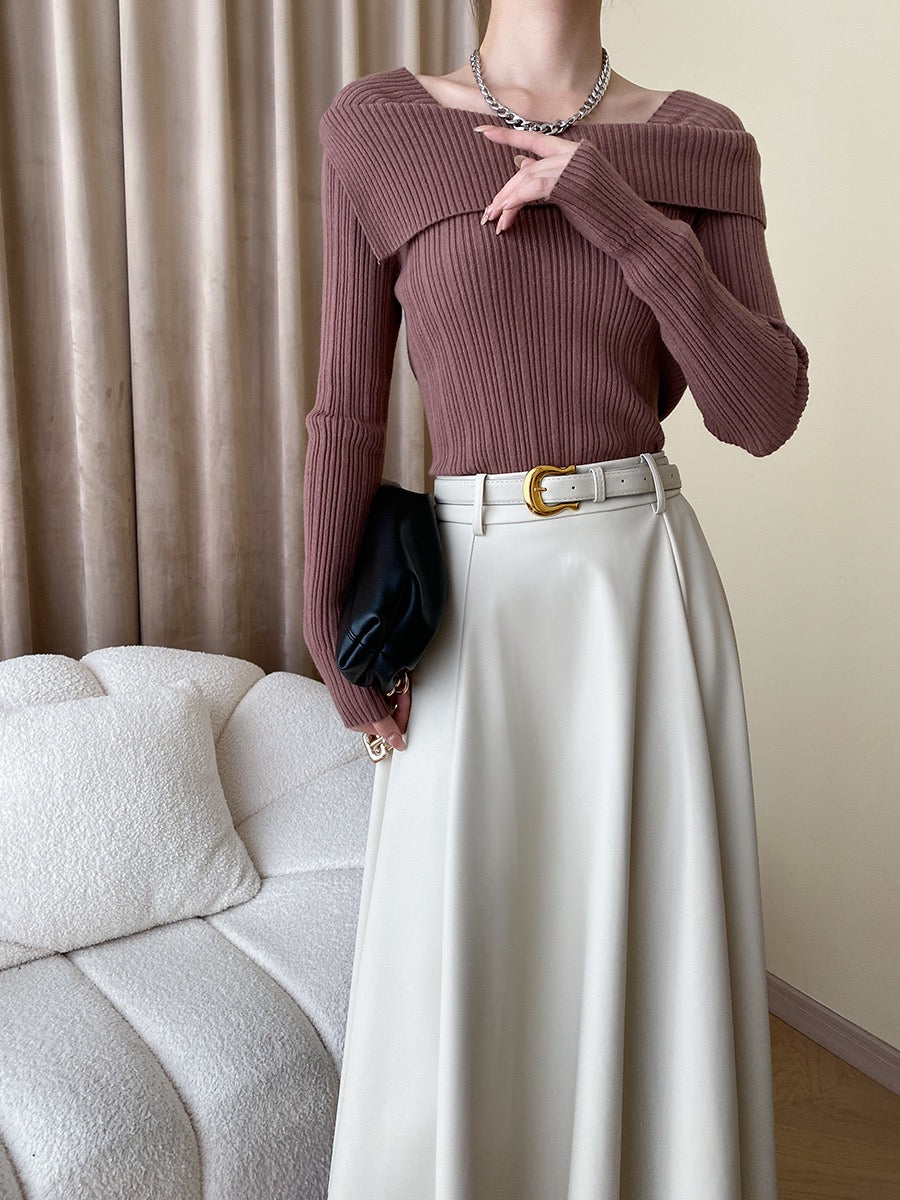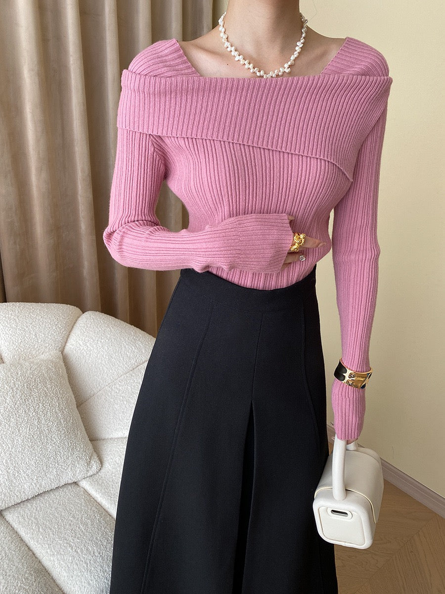 フレンチオフショルダーニットトップス
