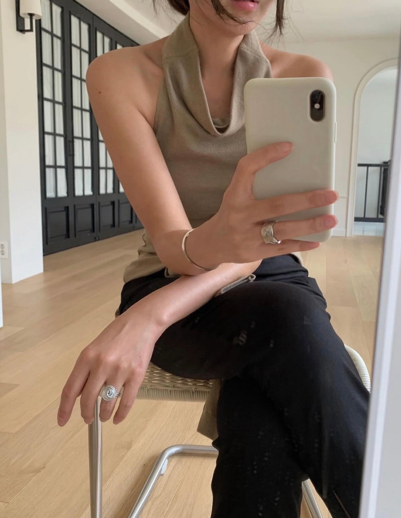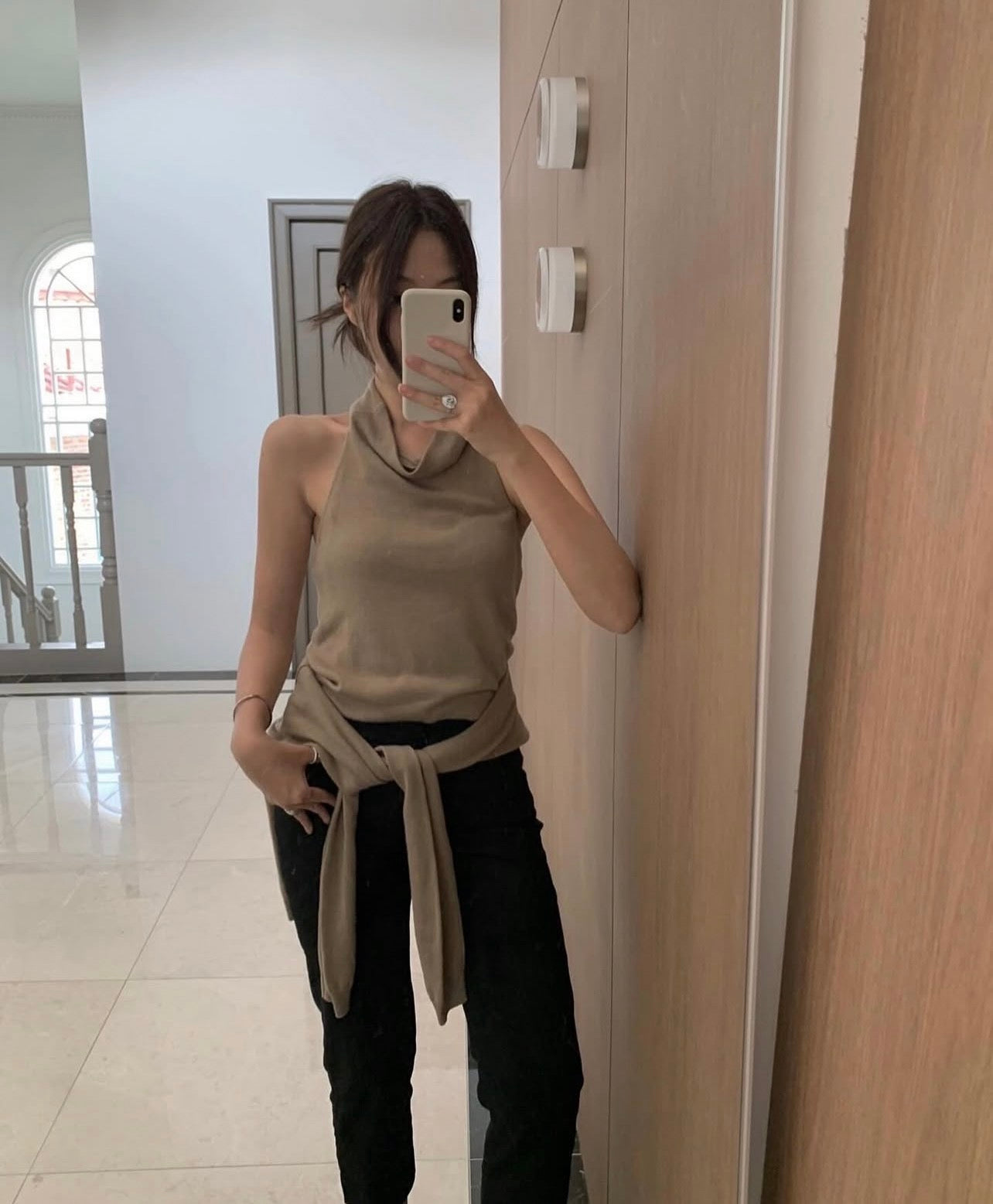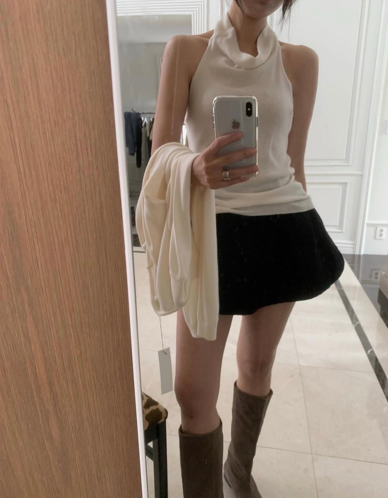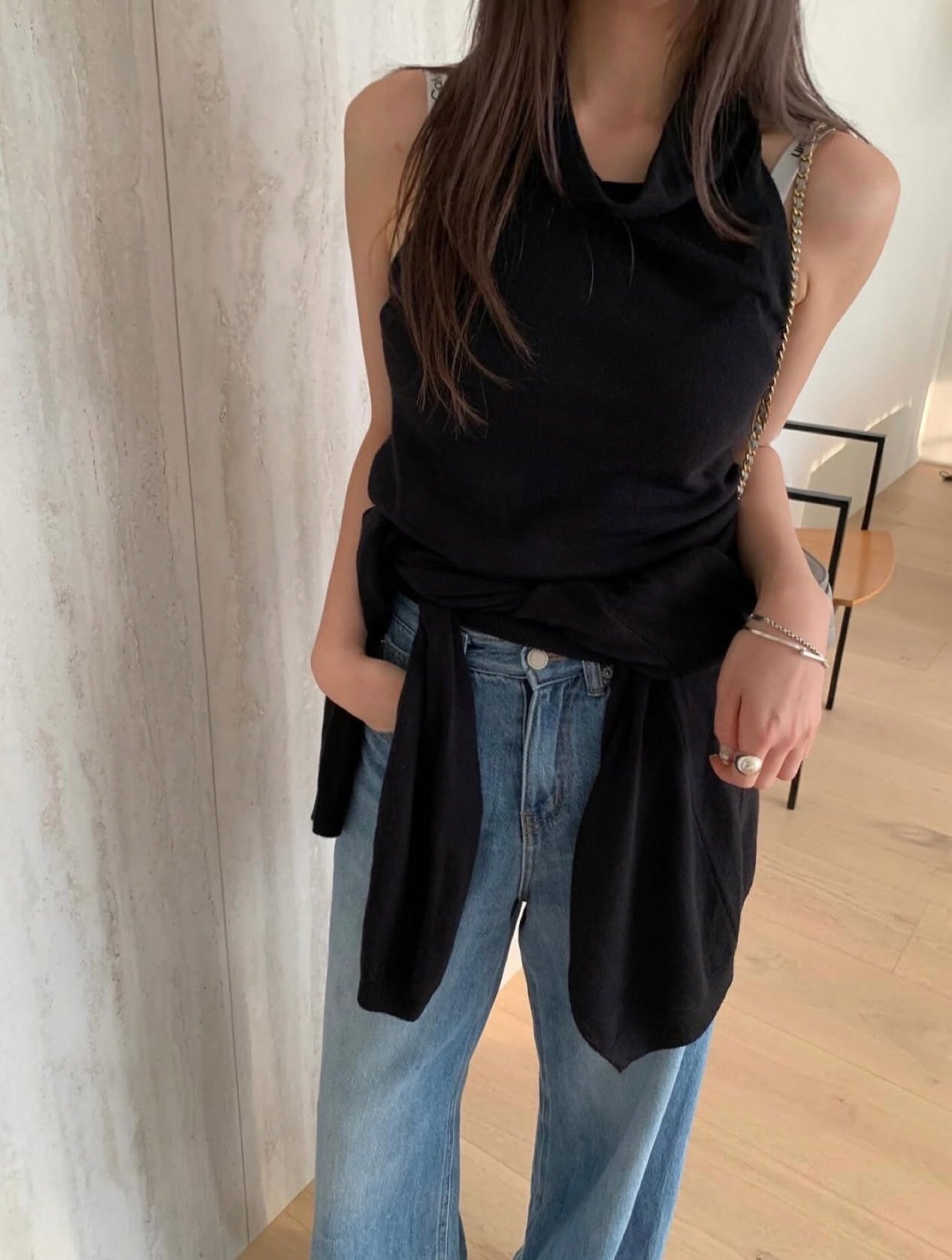ハイネックバックレスタンクトップ+カーディガンセット