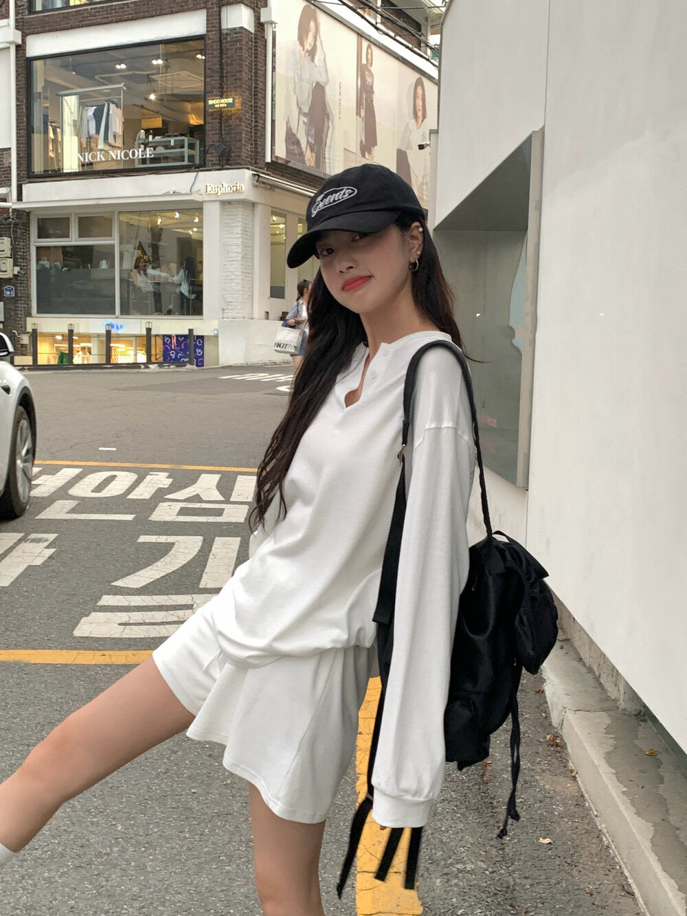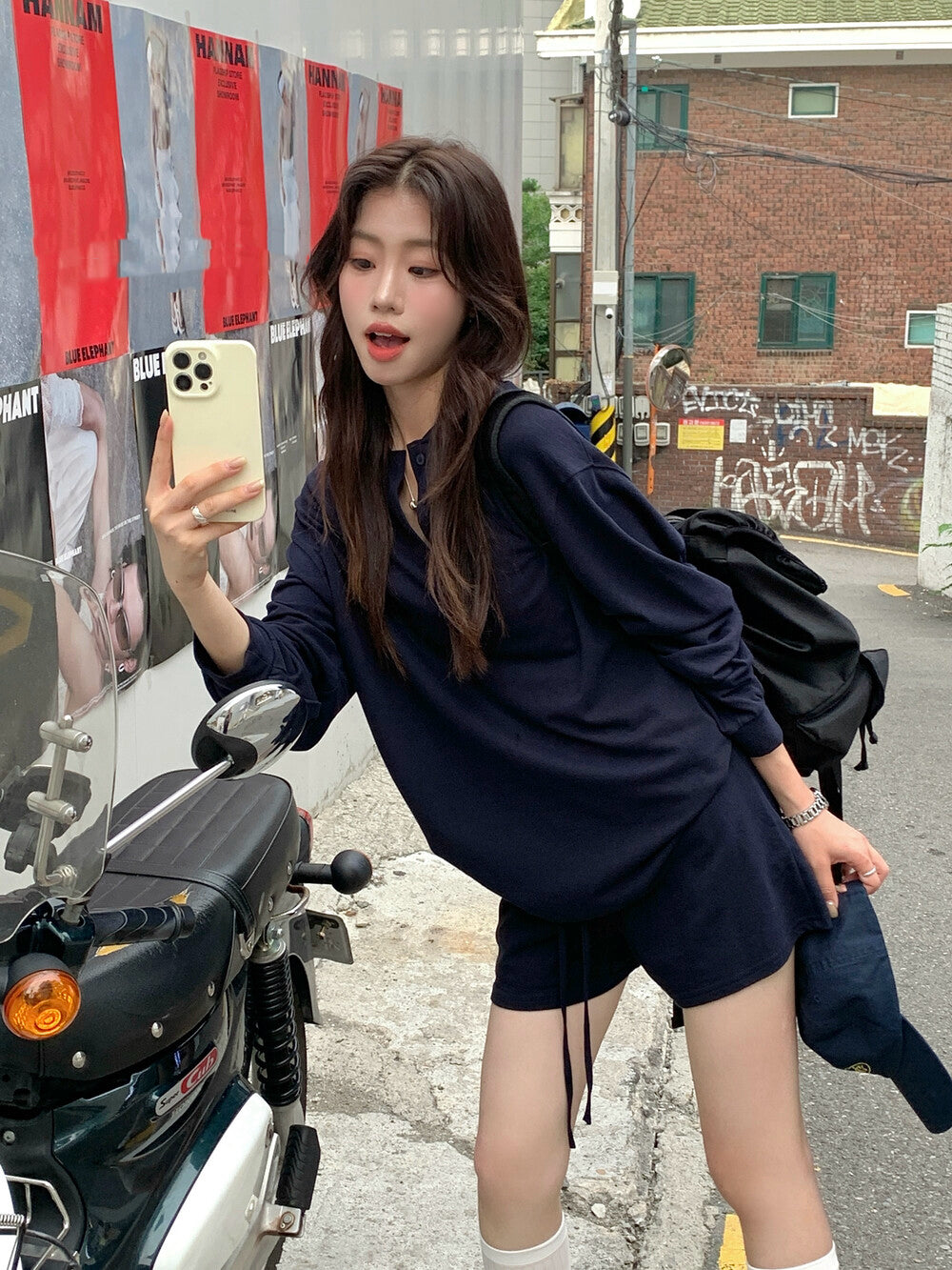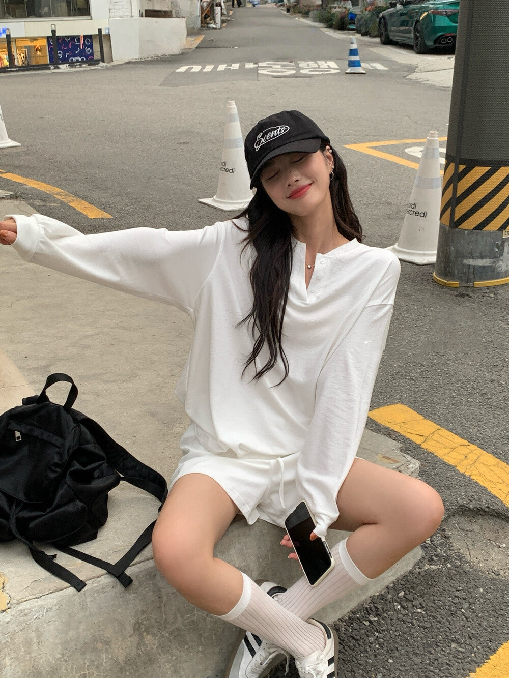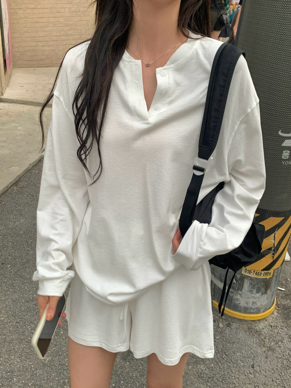 リラックス感のあるトップス+ゆったりカジュアルショートパンツセット
