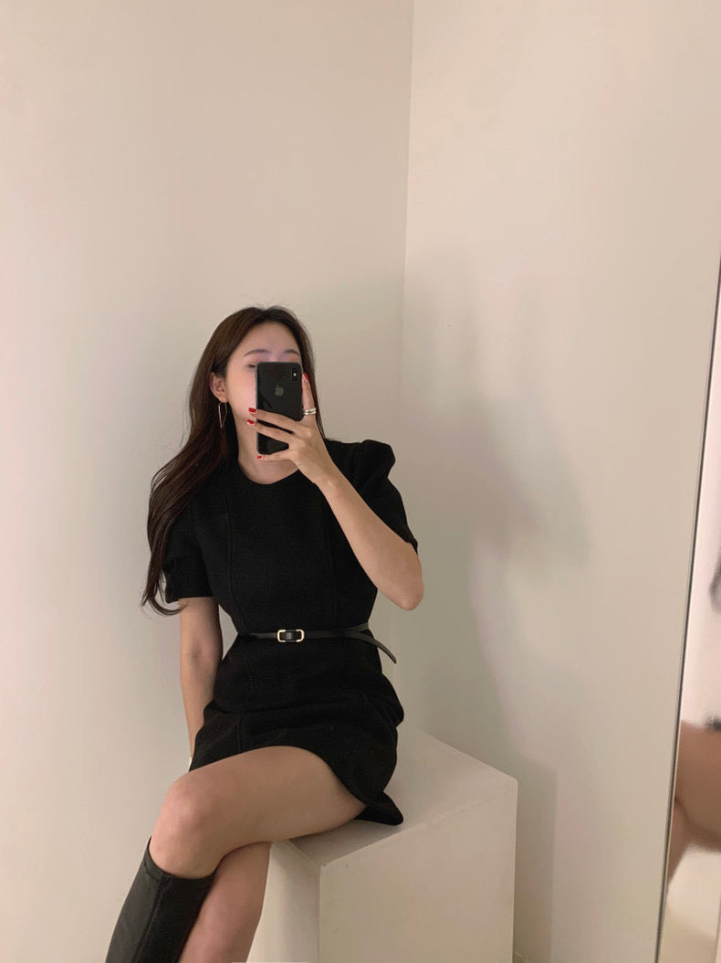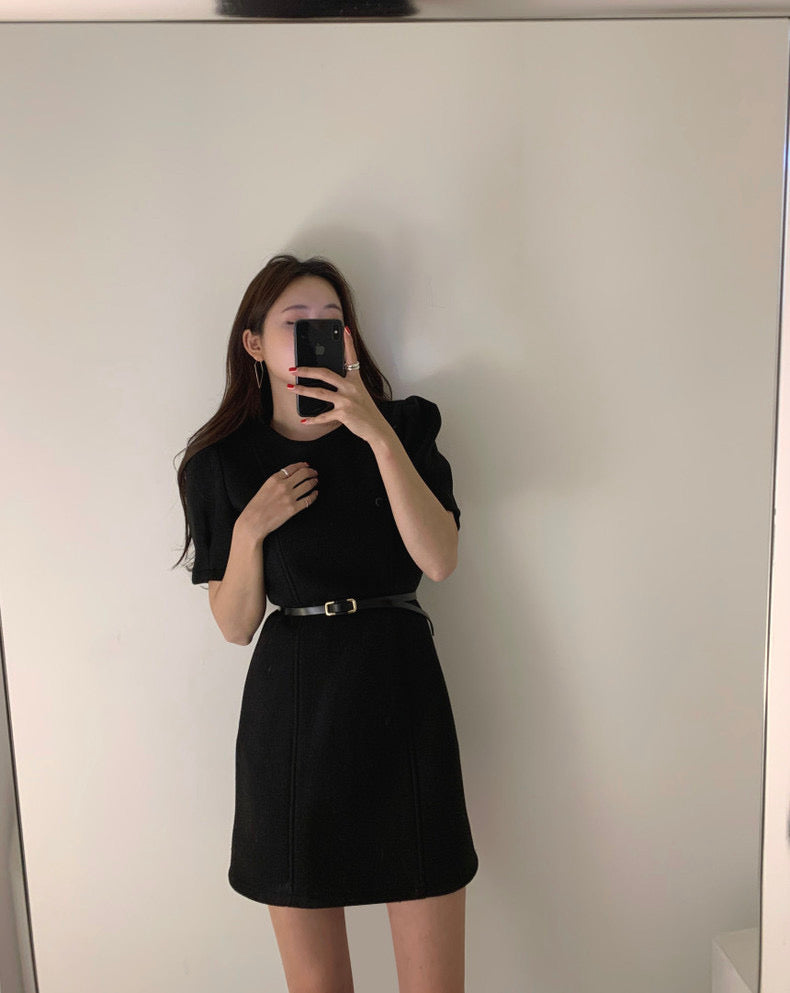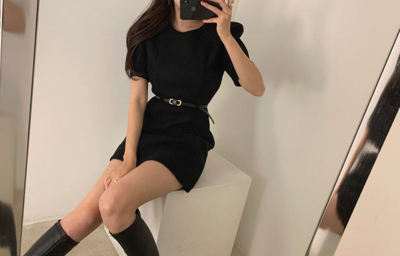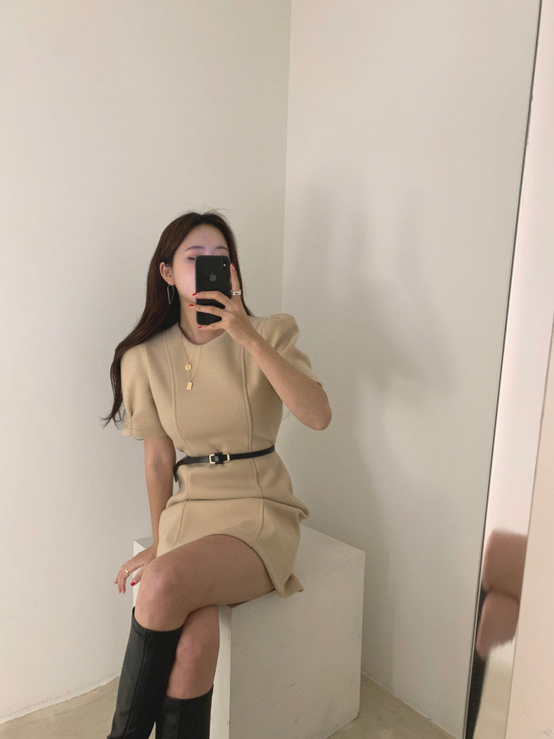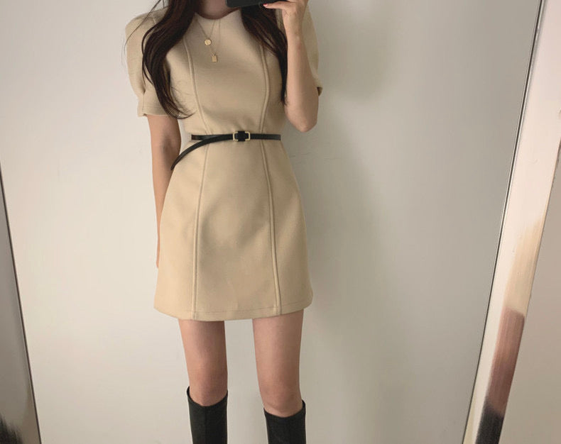 ラウンドネックデザイン、シンプルでありながらエレガント😘ウエストを絞ったカット、スリムでフィットしたシルエット💯スカートの裾は自然に垂れ、柔らかな曲線を演出👗着心地が良く、簡単に完璧なスタイルを作り出します混紡素材