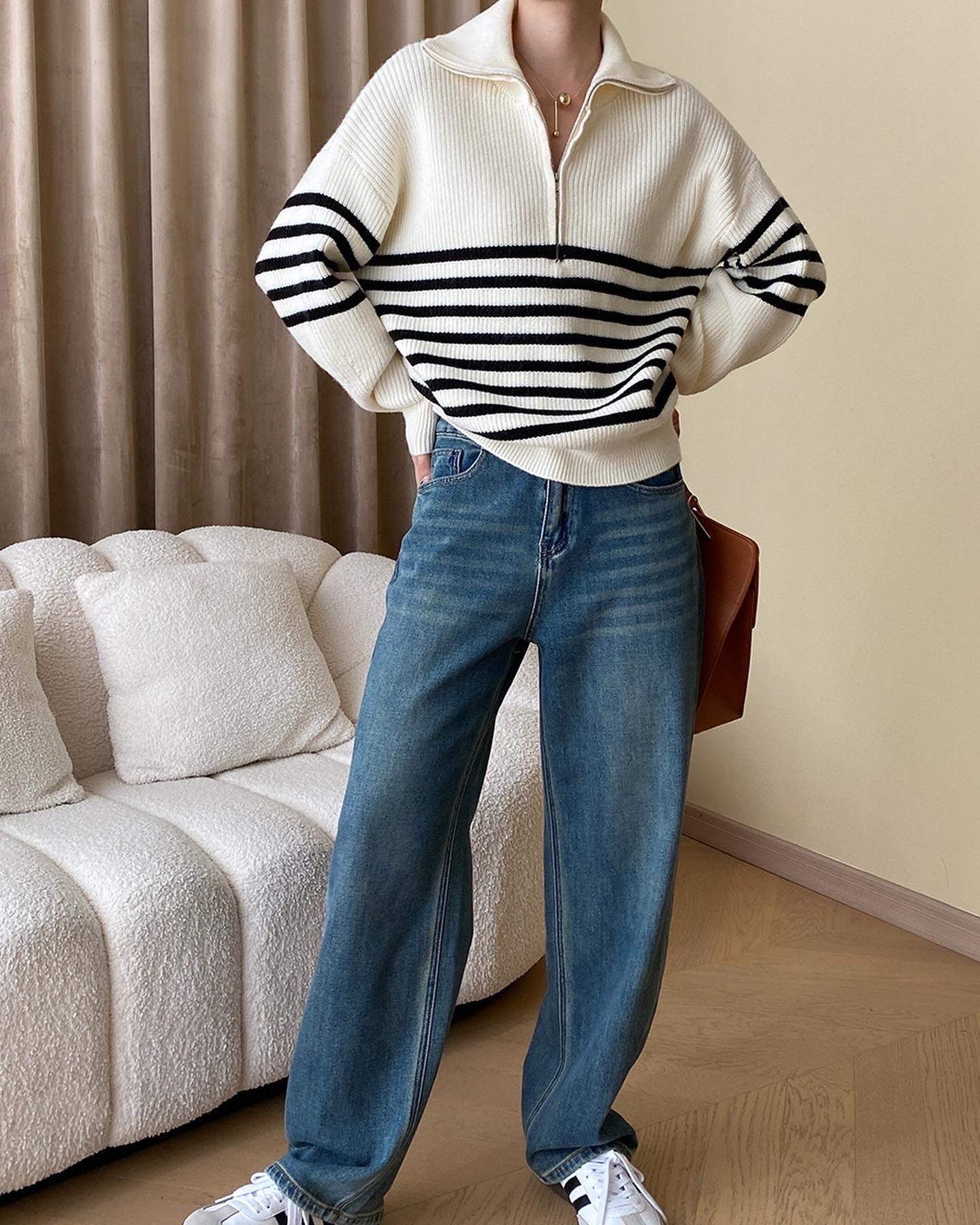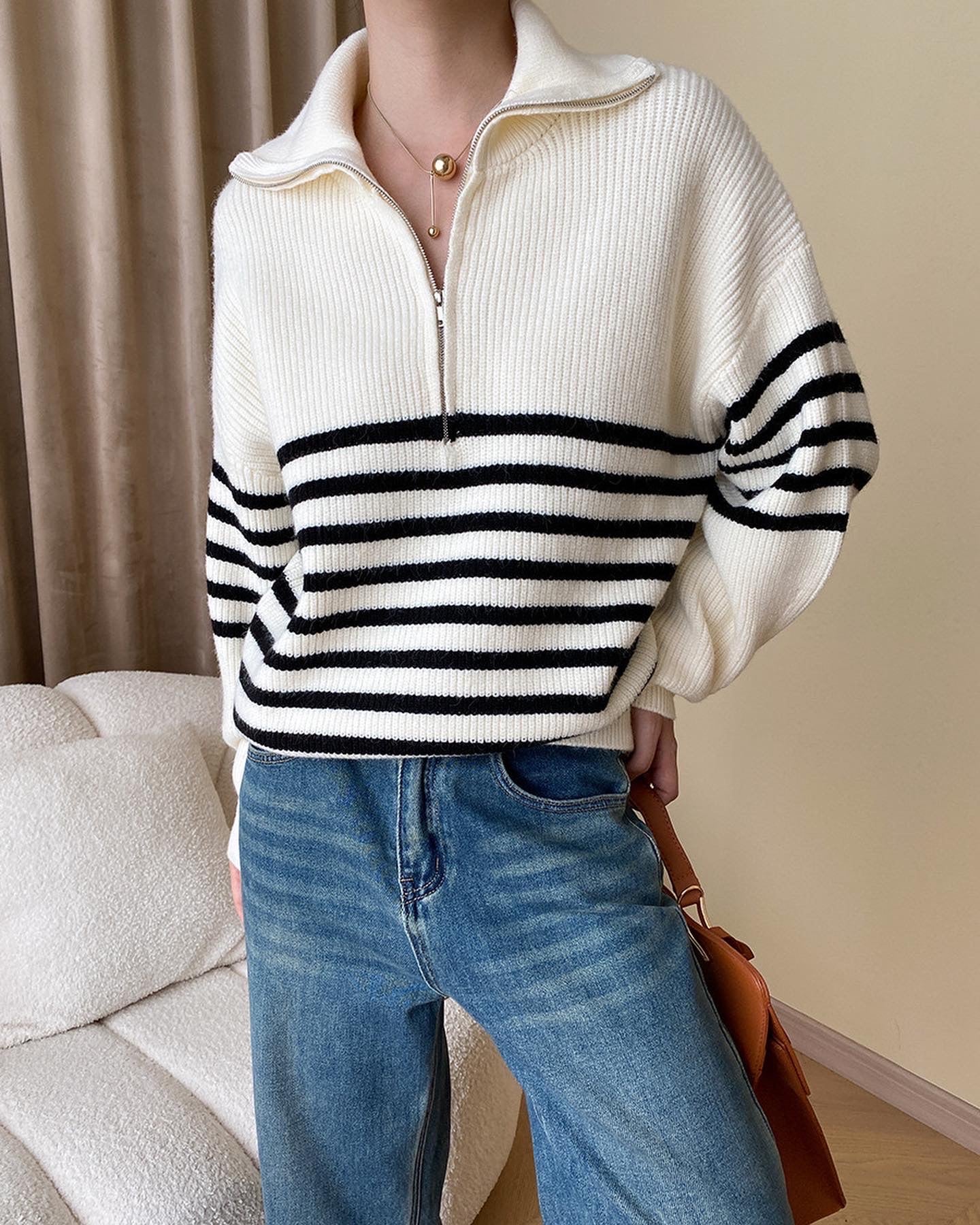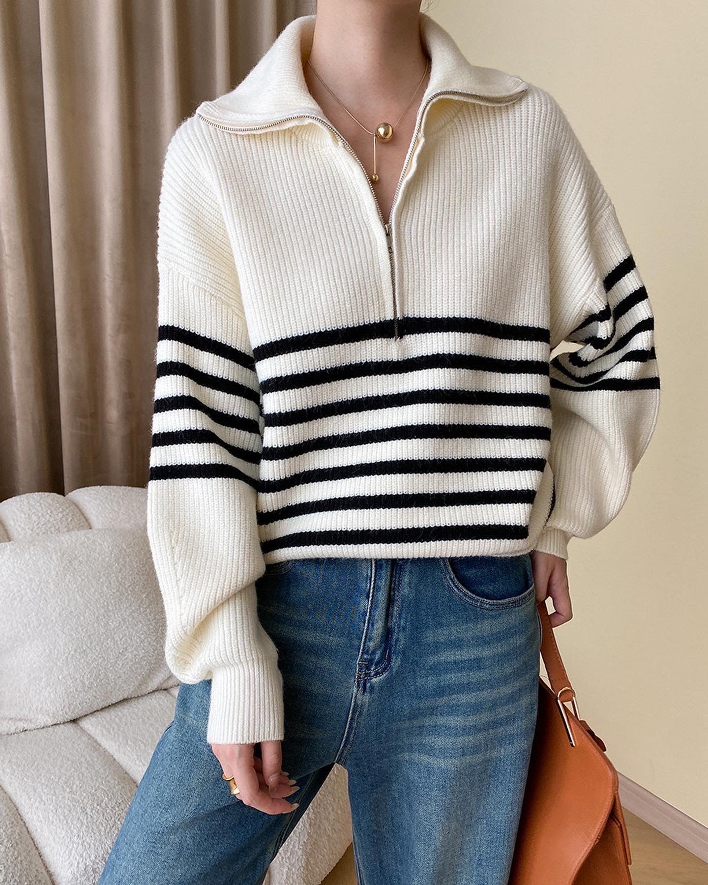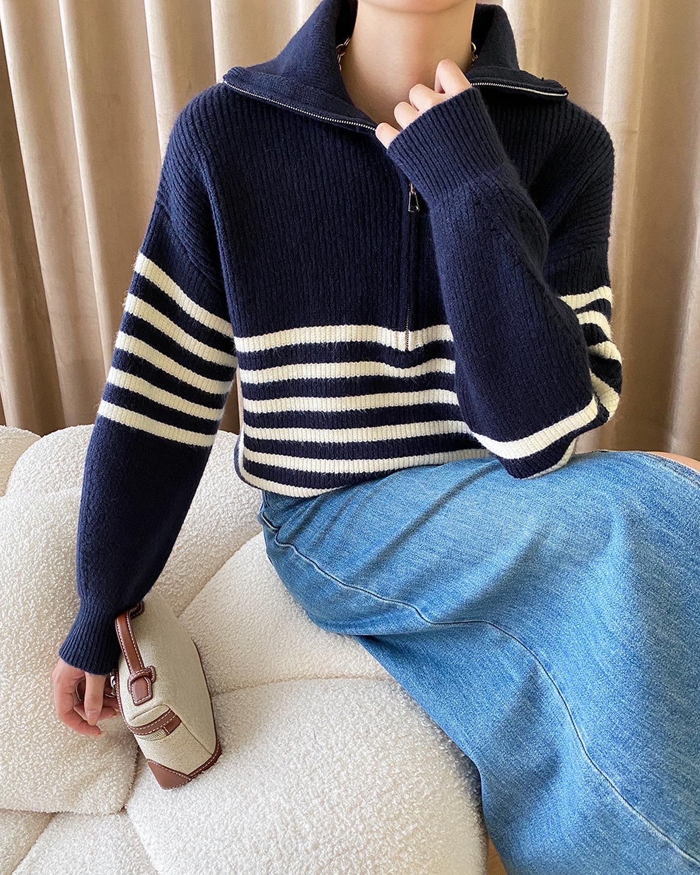 ストライプゆったりニットトップス
