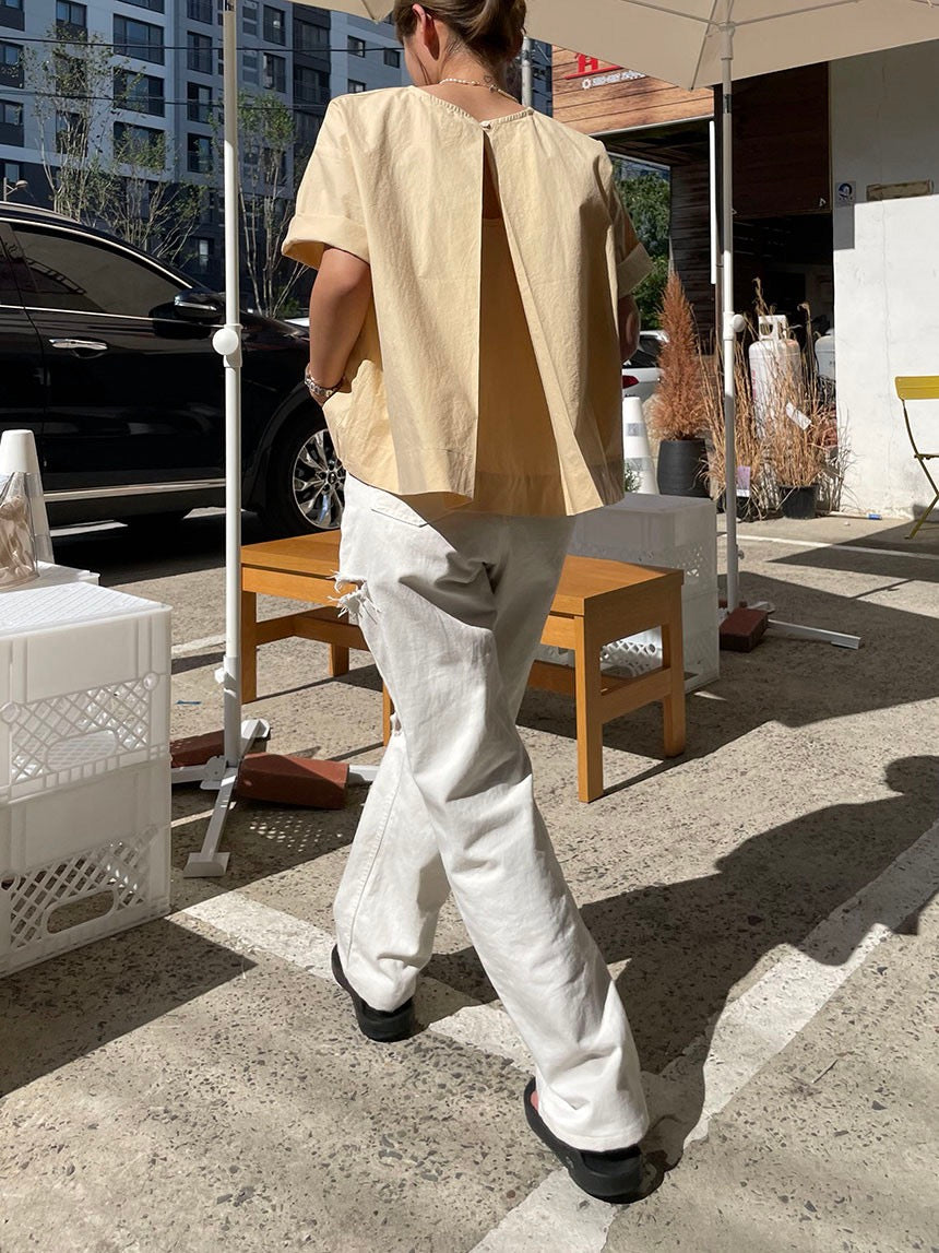 背中が開いたシャツ