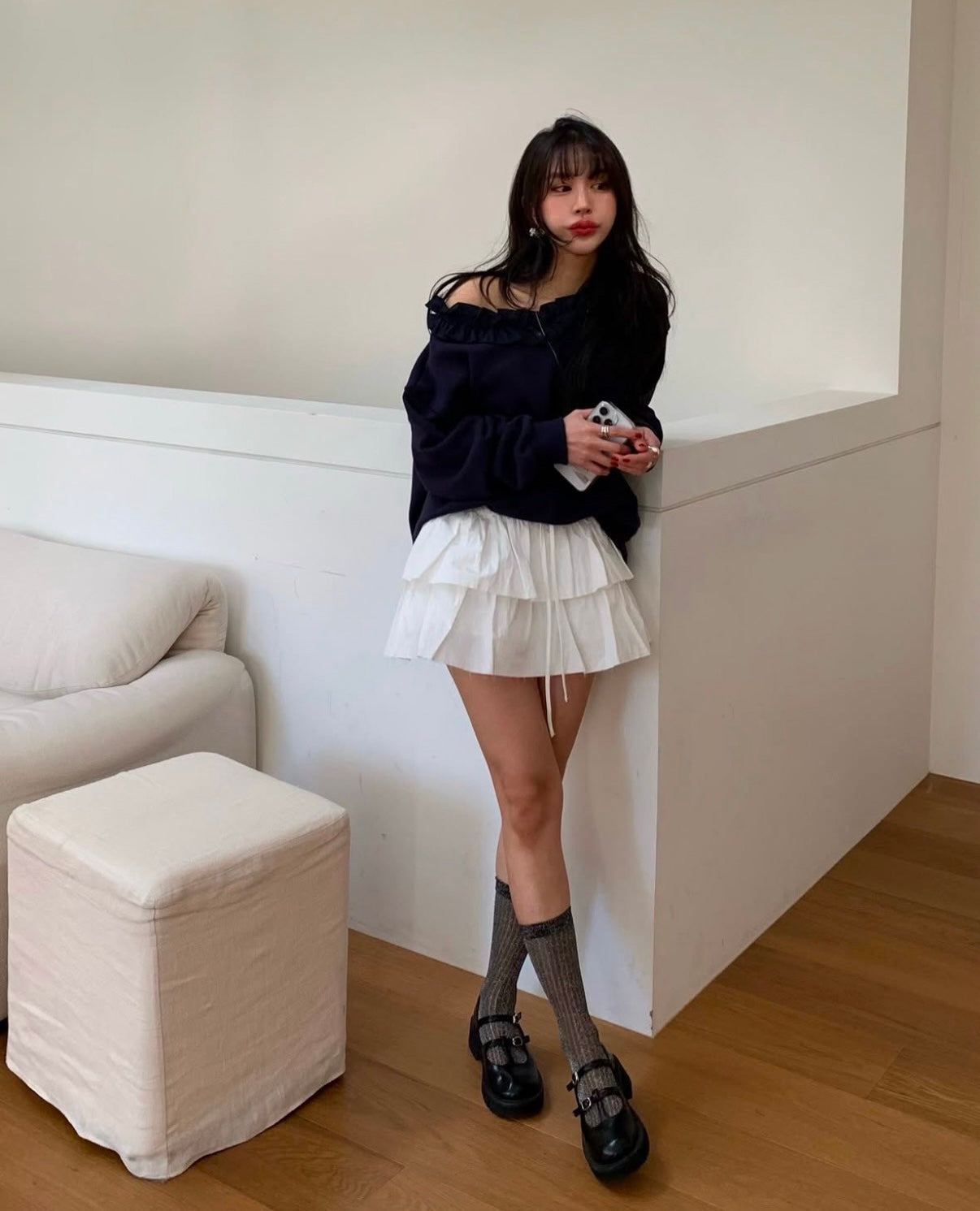 スイートなケーキのレイヤー、遊び心満点🎀フェイクツーピースデザイン、ファッショナブルで実用的ゆったりとしたスカートの裾、脚のラインを美しく見せる日常、デートにも合わせやすいポリエステル素材