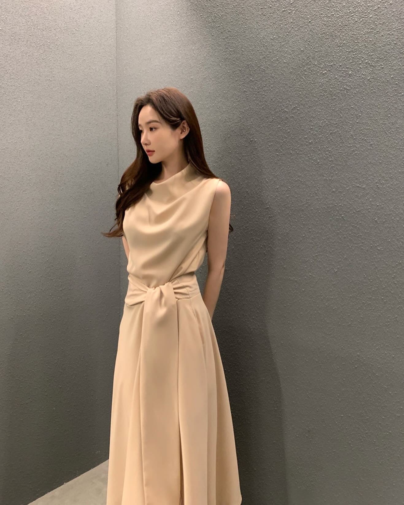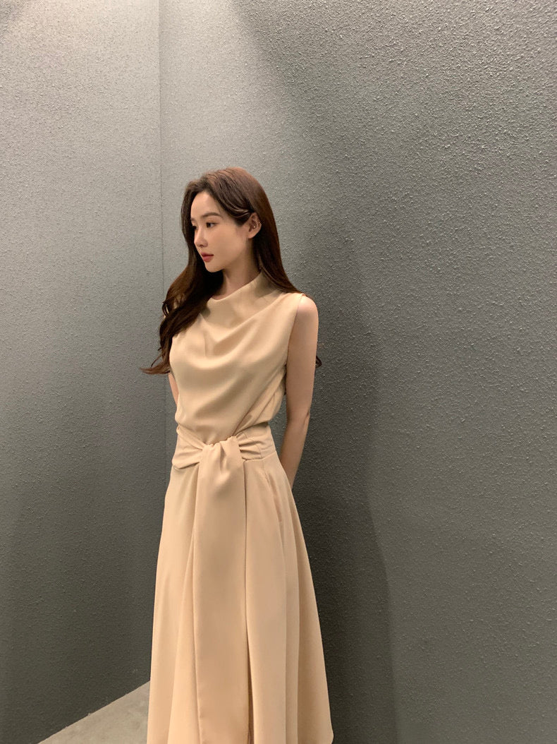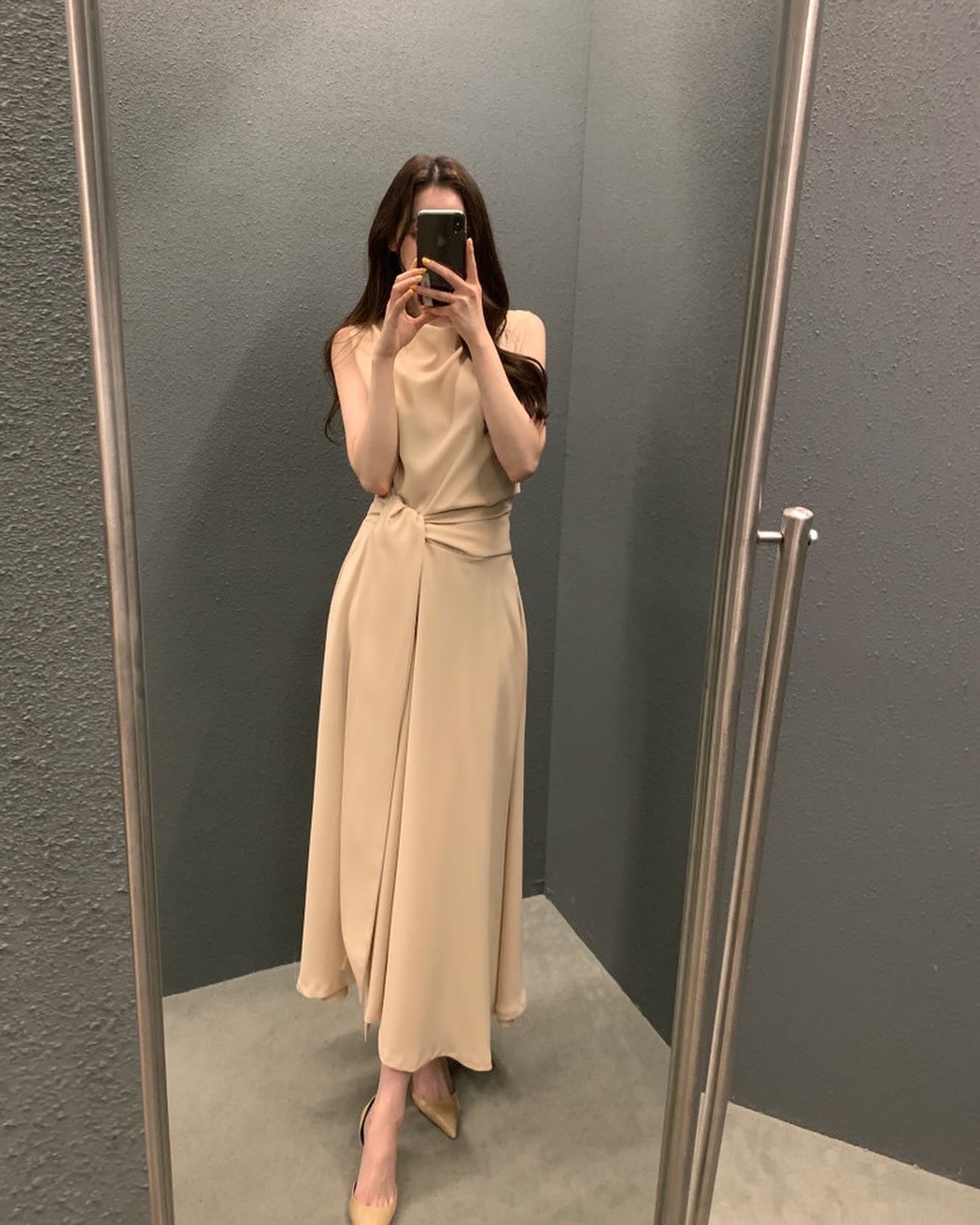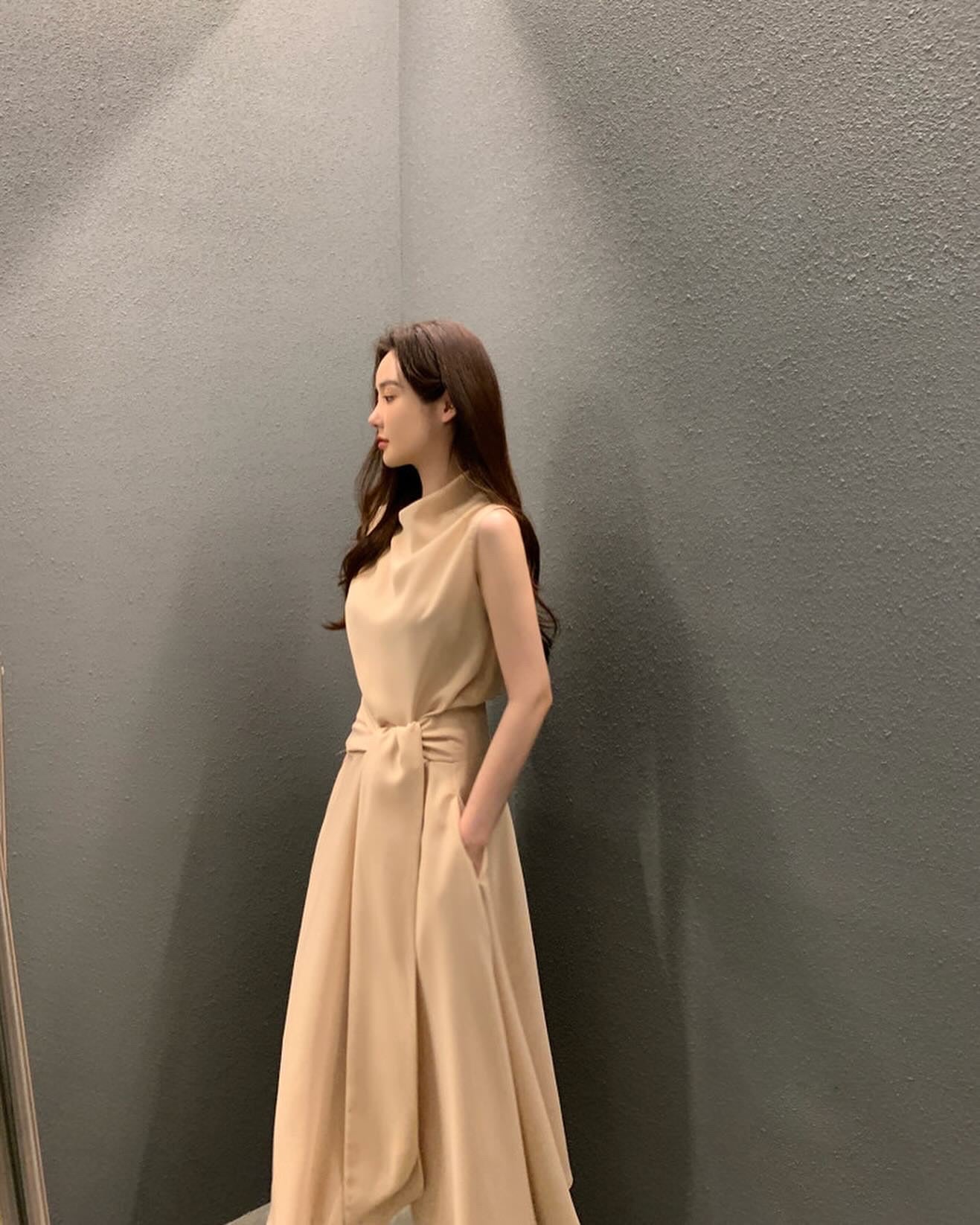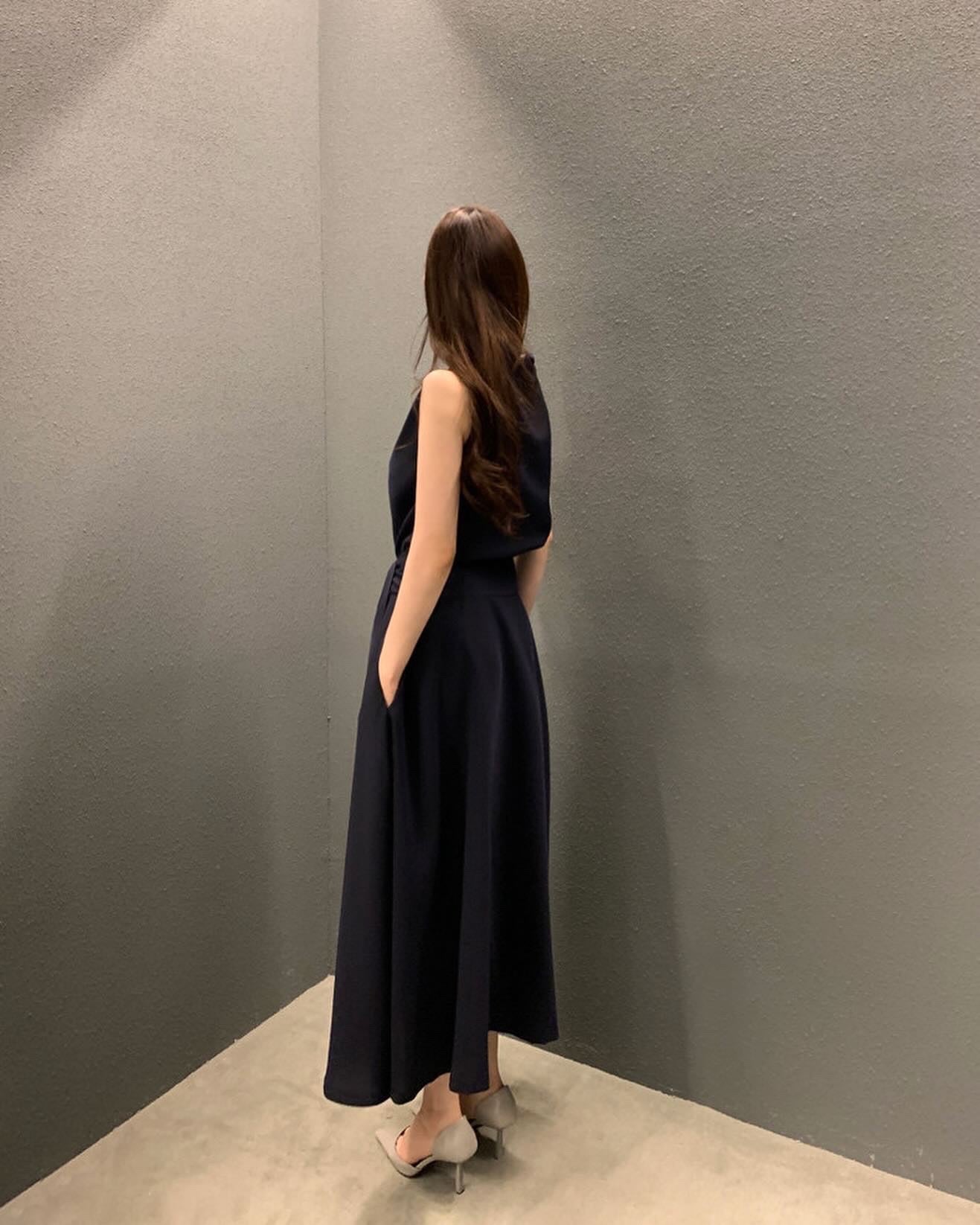 フレンチスタイルスタンドカラースリムフィットワンピース