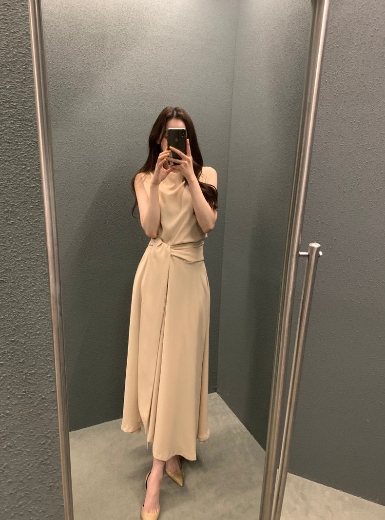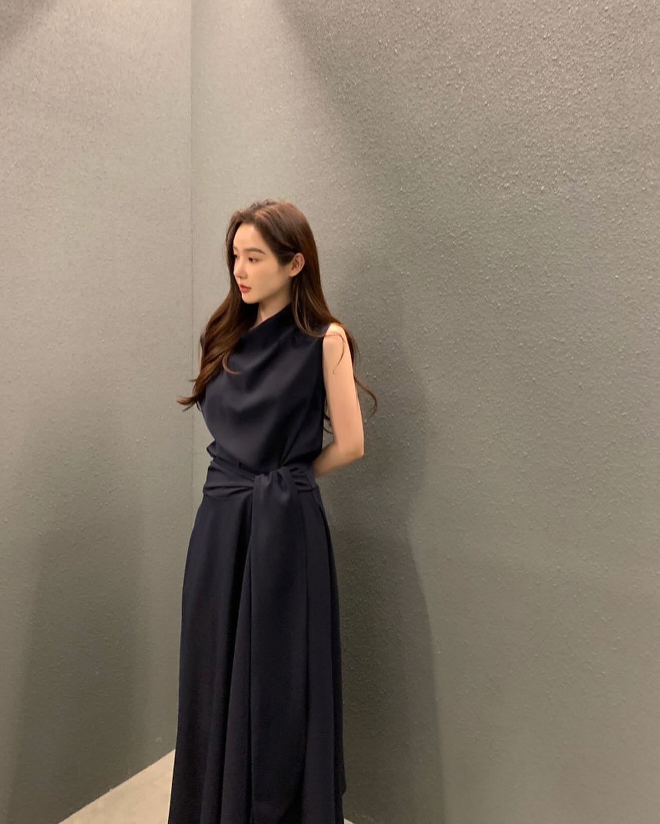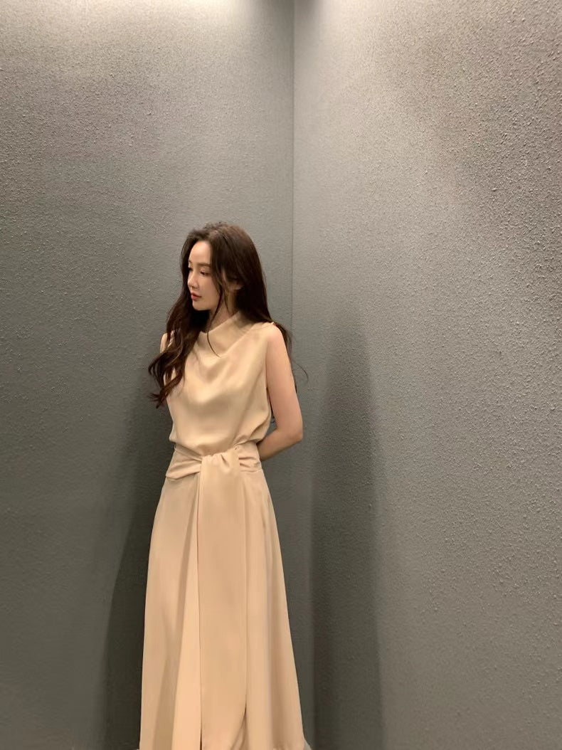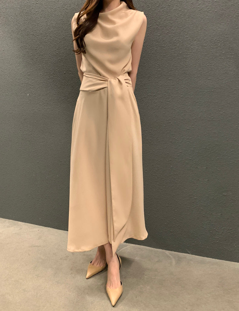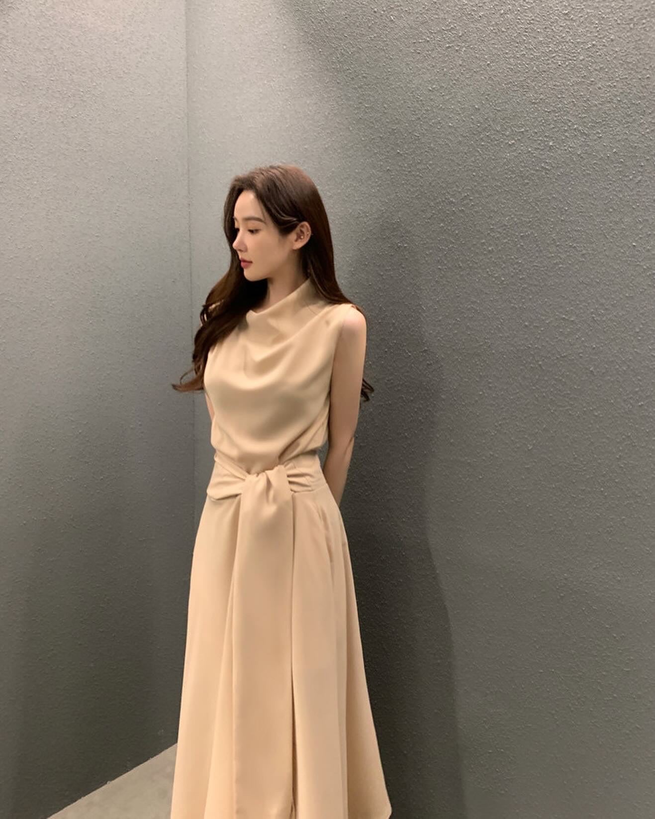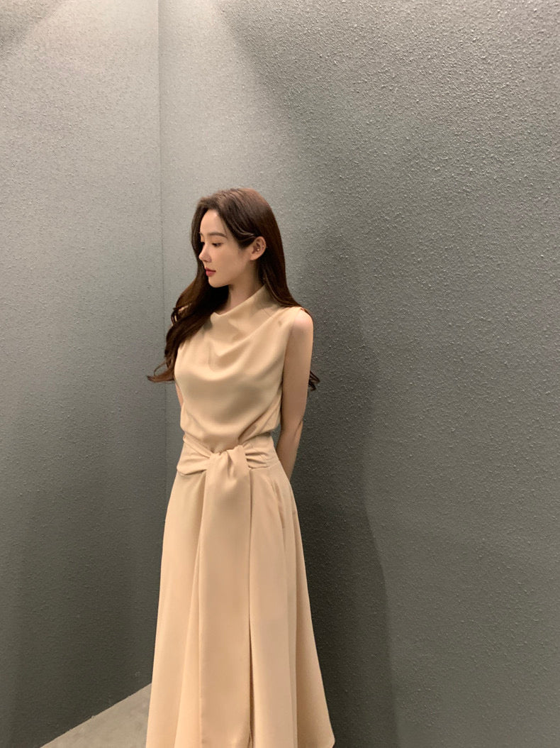 フレンチスタイルスタンドカラースリムフィットワンピース