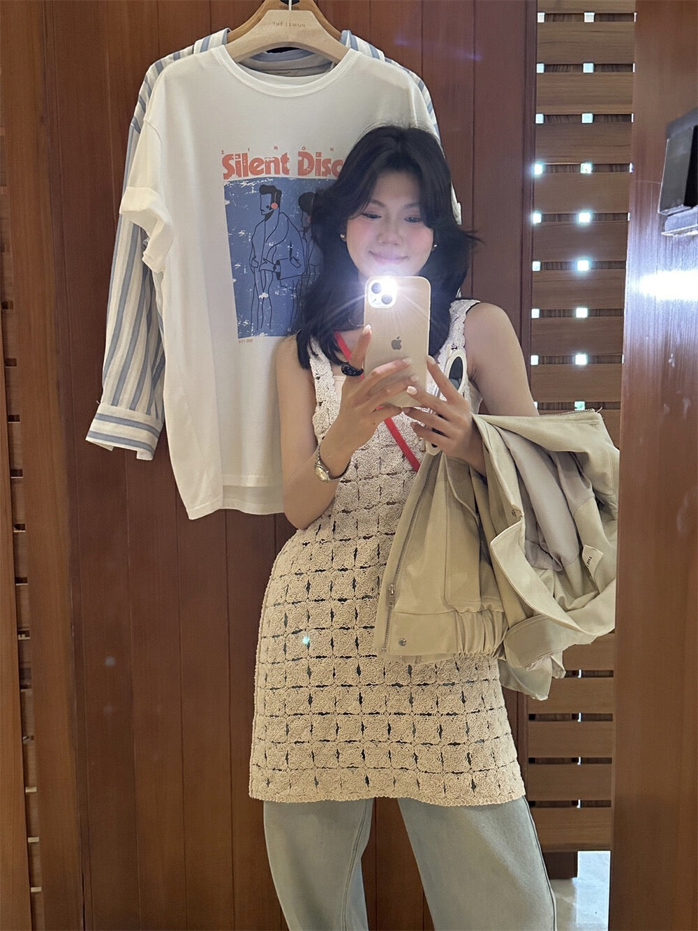 レース編みのベスト付きワンピース