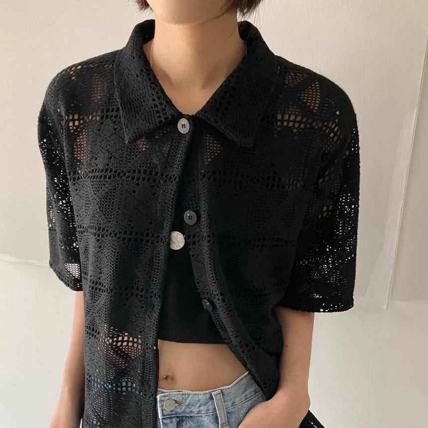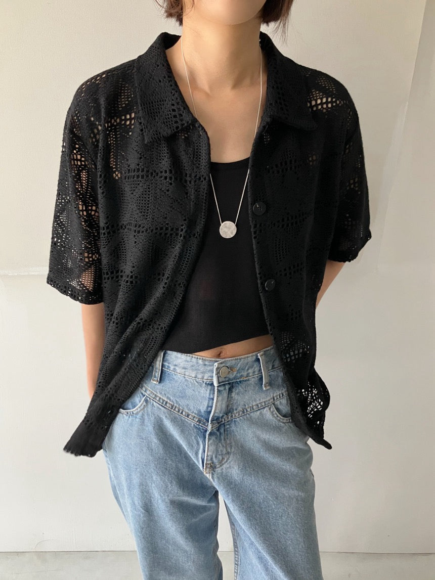 レース編みのブロークントップス