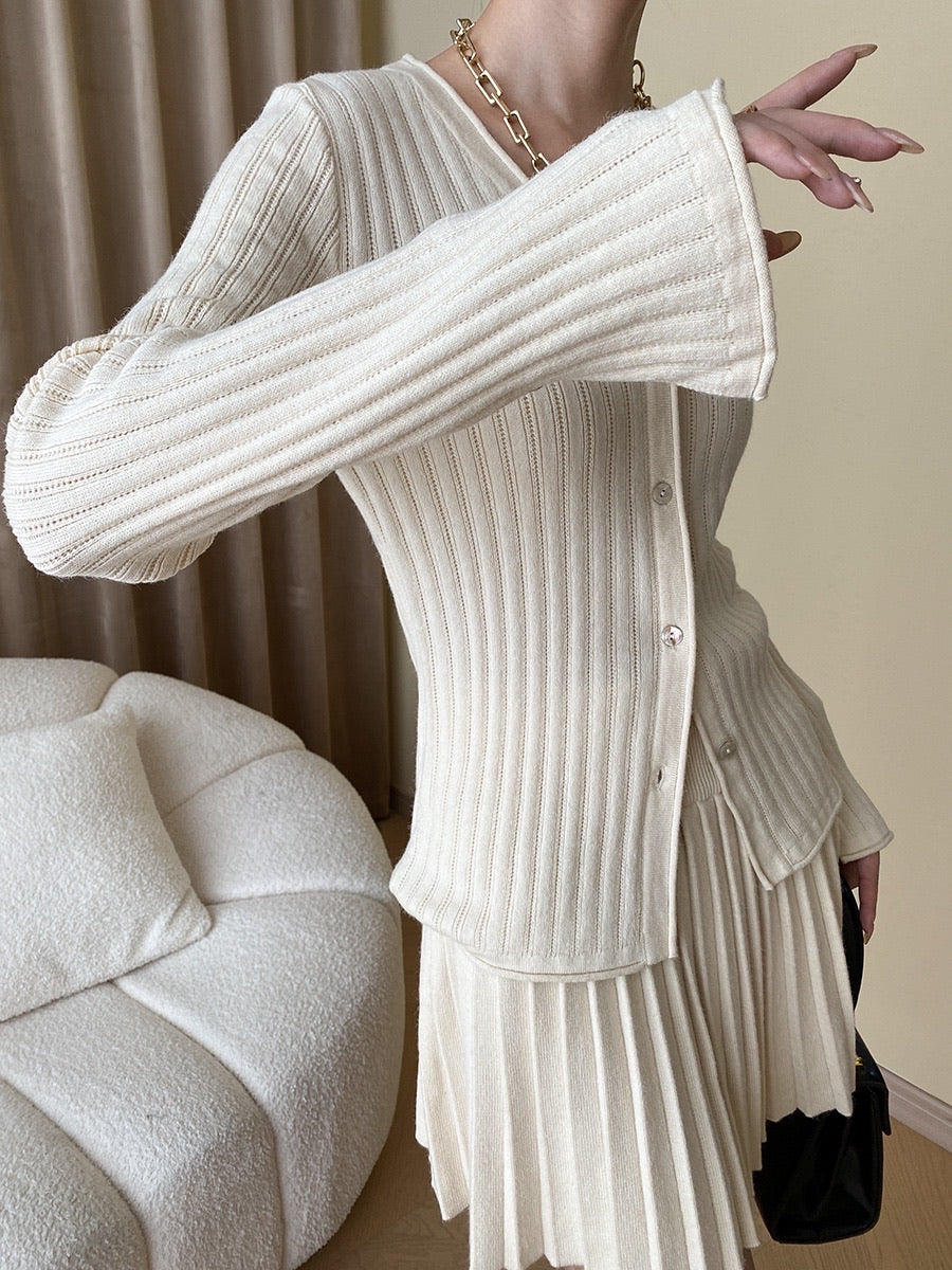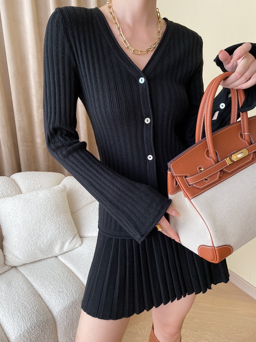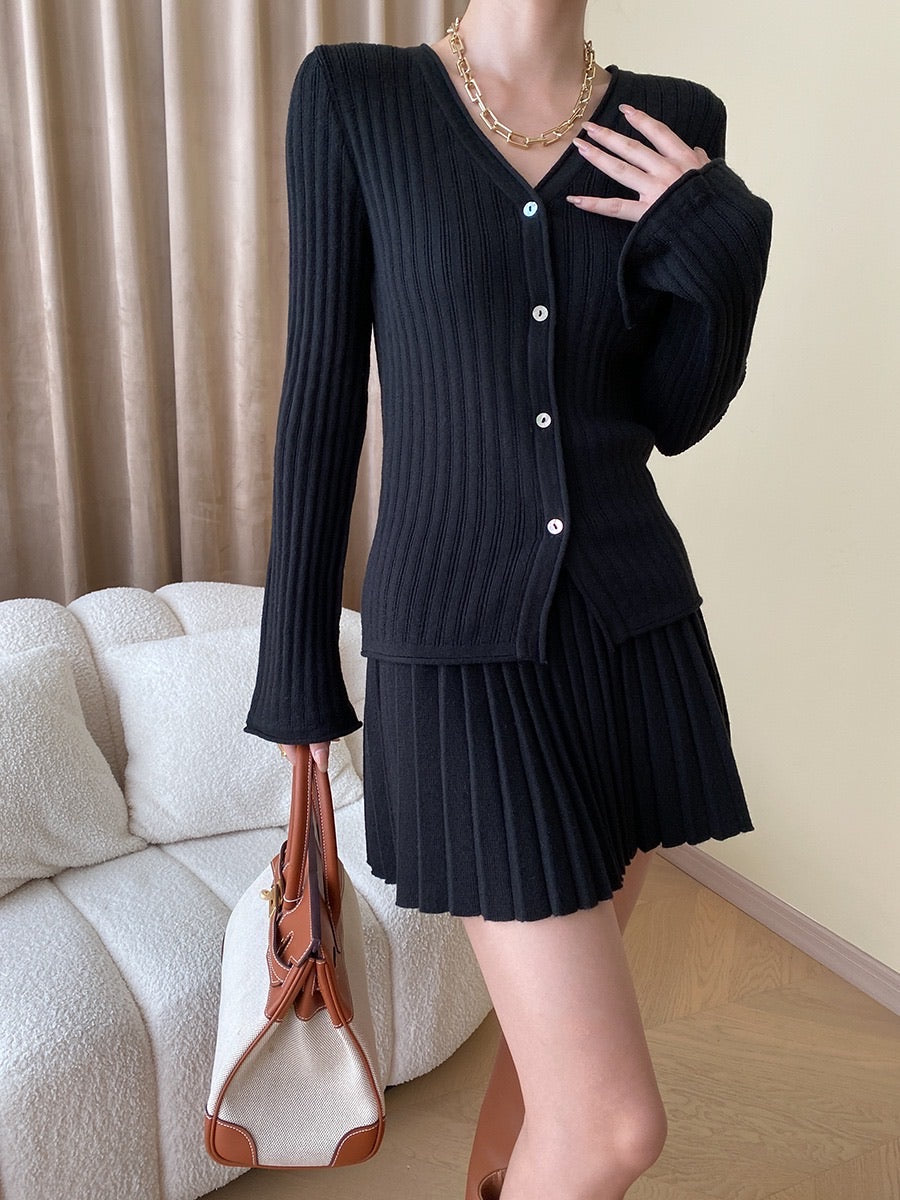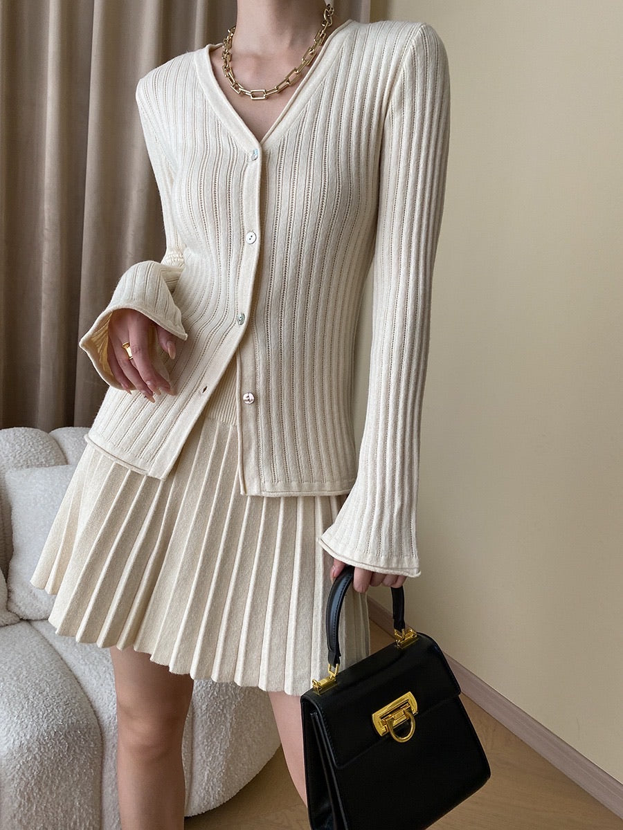 ニットフィットトップス+プリーツスカートセット