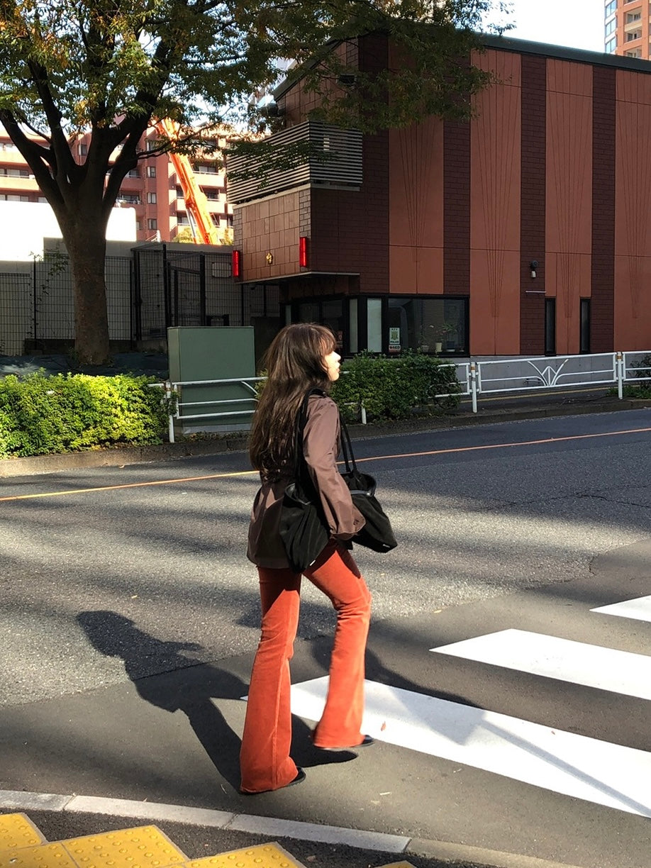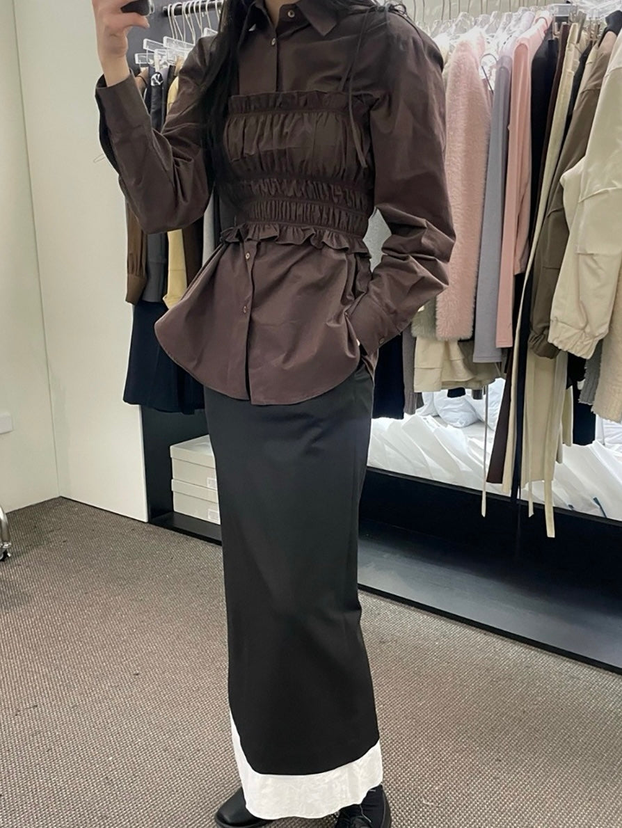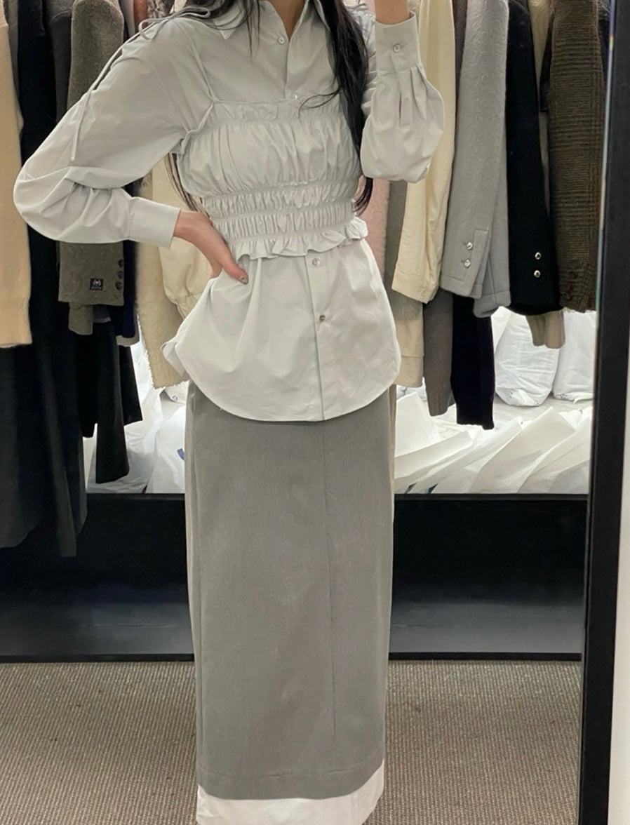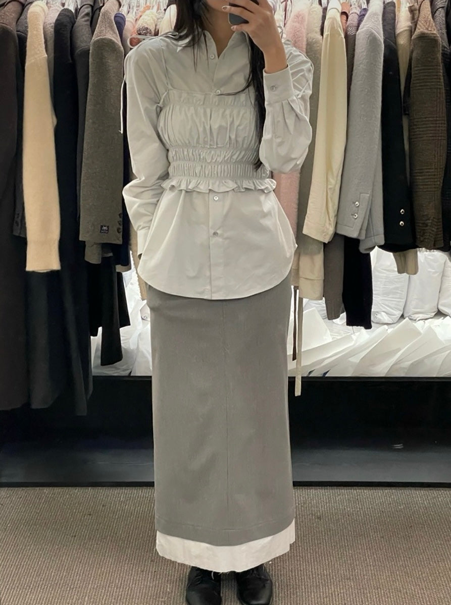 プリーツキャミソールを合わせて、甘さの中にシャープさを演出💕