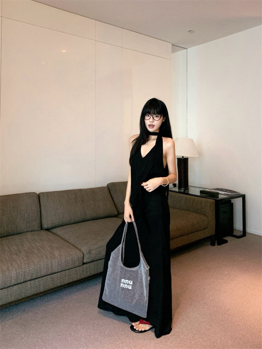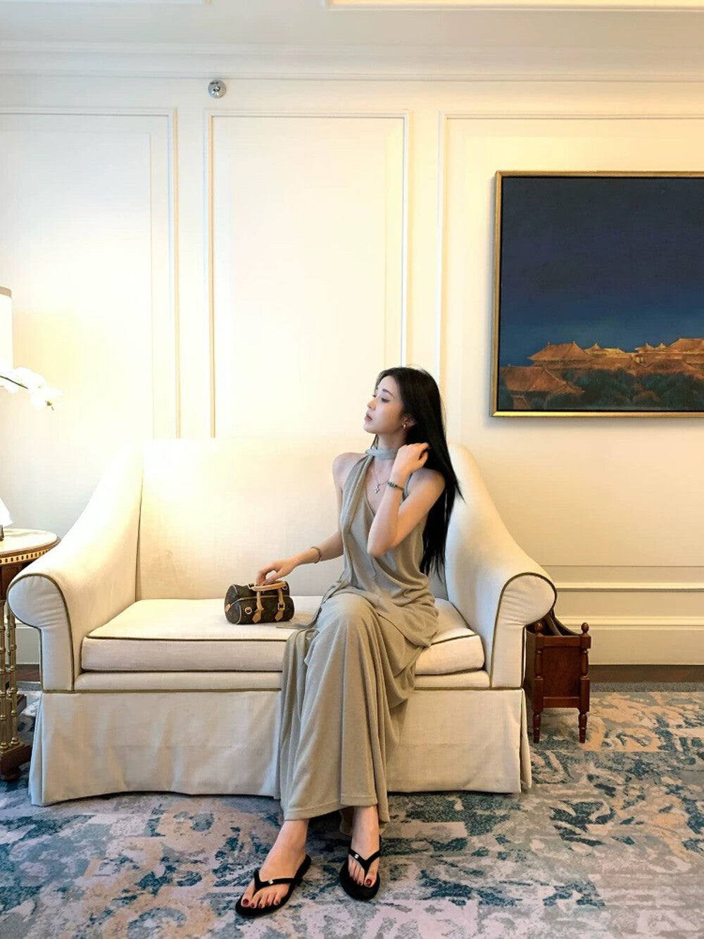 Vネックホルターデザインで鎖骨ラインを際立たせる ✨