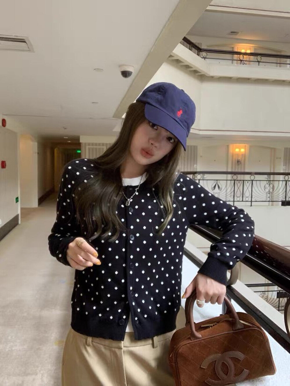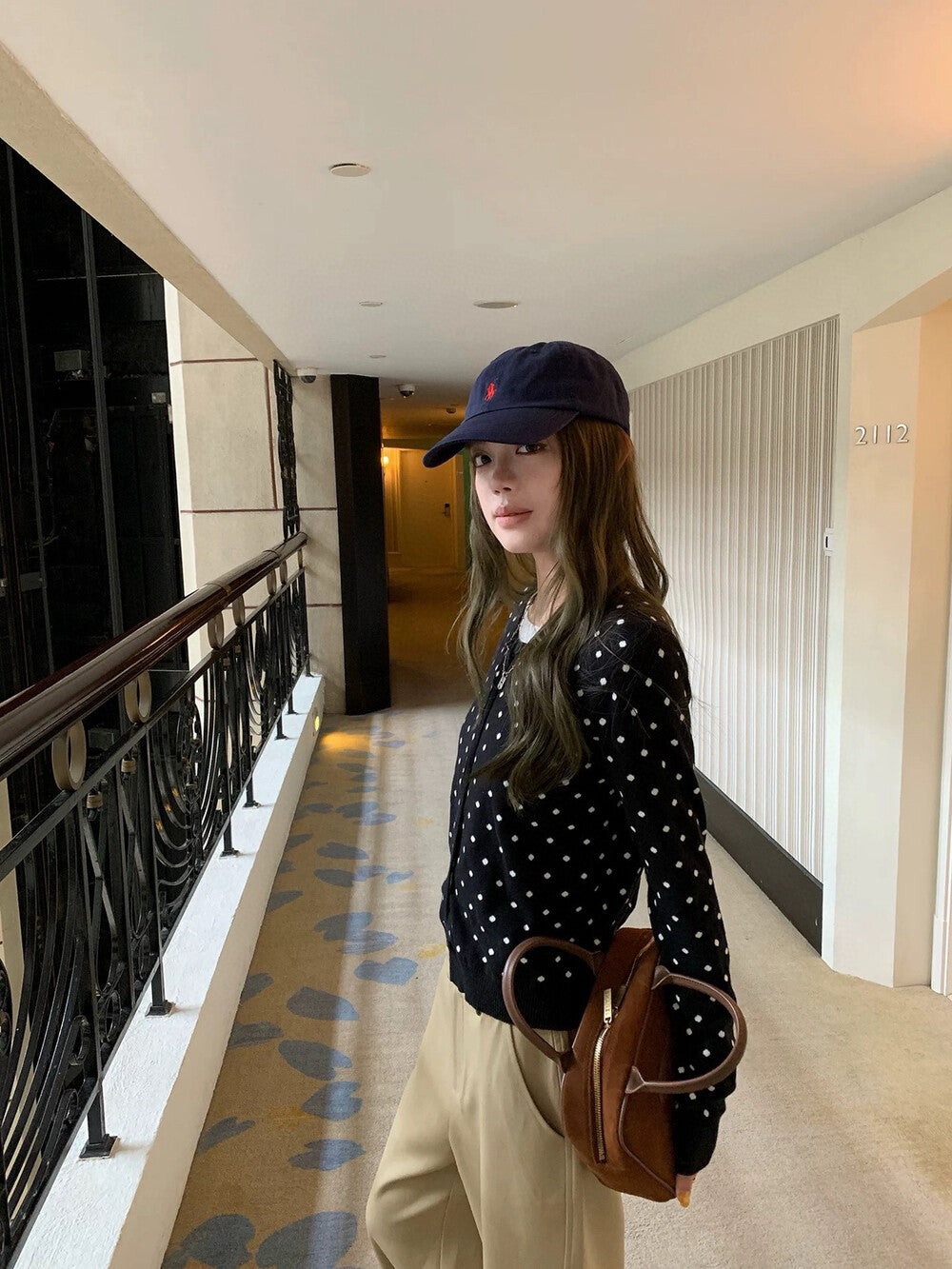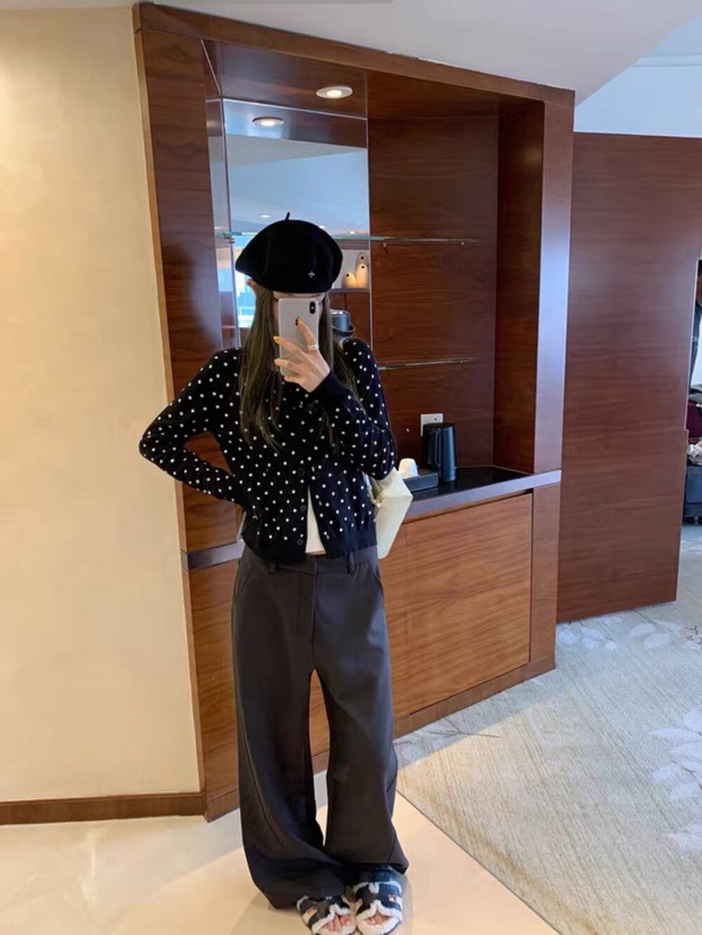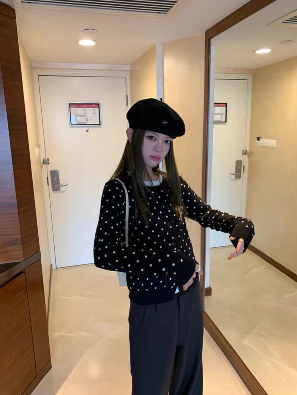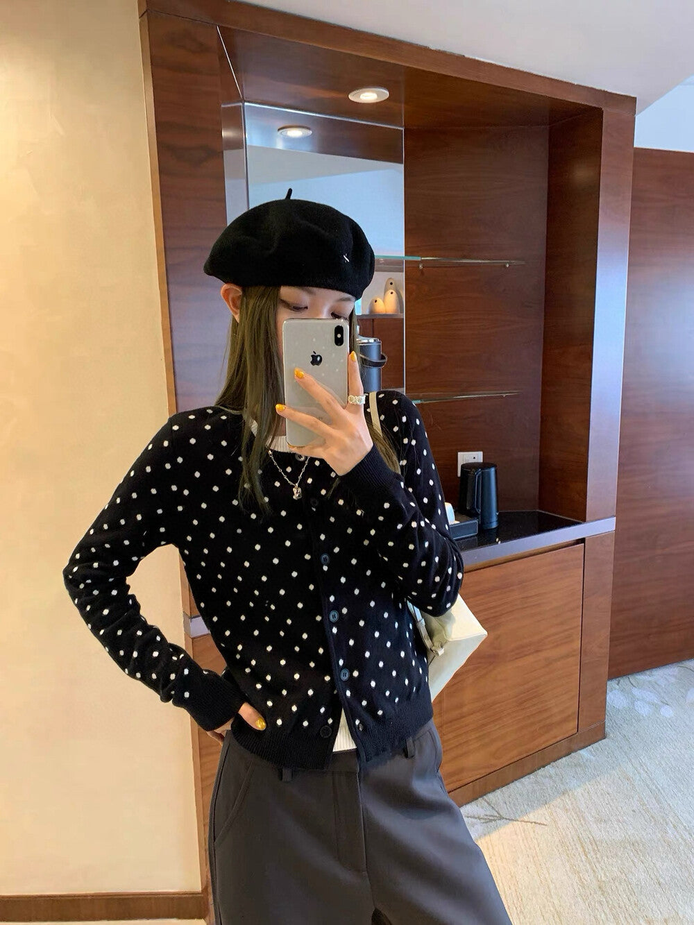 ソフトでドット柄の配色切り替えフェイクレイヤードニット