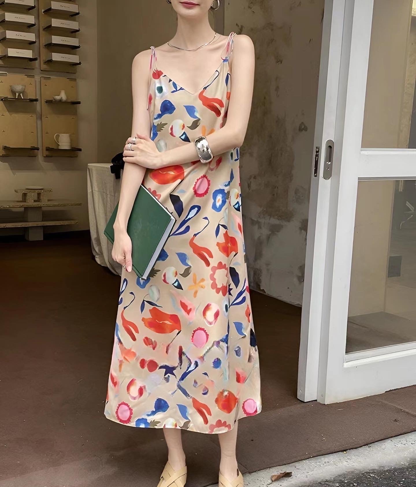 とても特別な花柄スカート🌼🌸ドレープ感が素晴らしい!着た時の効果が抜群👍デートや旅行にぴったり~ポリエステル生地素材:100% ポリエステルサイズ:S / Mバスト 84cm 88cm着丈 99cm 100cm*全てのサイズは手作業で計測しているため、1-2cm の誤差が生じる場合があります。
