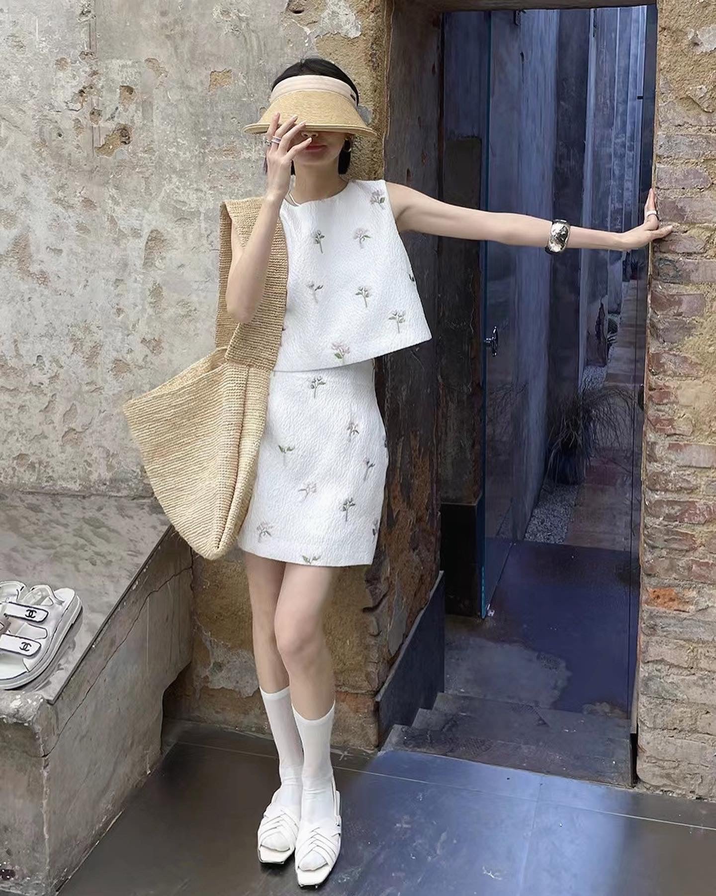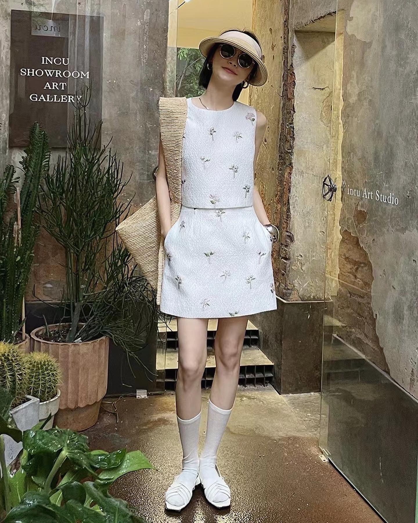 店主自用🙋🏻♀️着用したときの効果は高級感✨実物はとても綺麗!お出かけ/デート/仕事にも着られます~ポリエステル素材素材:95% ポリエステルサイズ:S / Mトップスバスト 100cm 104cm着丈 44cm 45cmスカートウエスト 67cm 71cmスカート丈 47cm 48cm*すべての寸法は手作業測定のため、1-2 cmの誤差がある場合があります。
