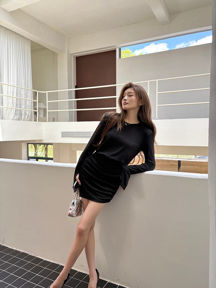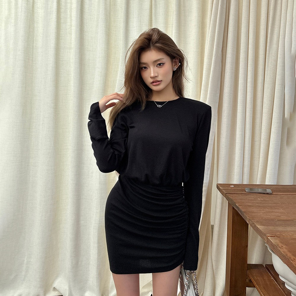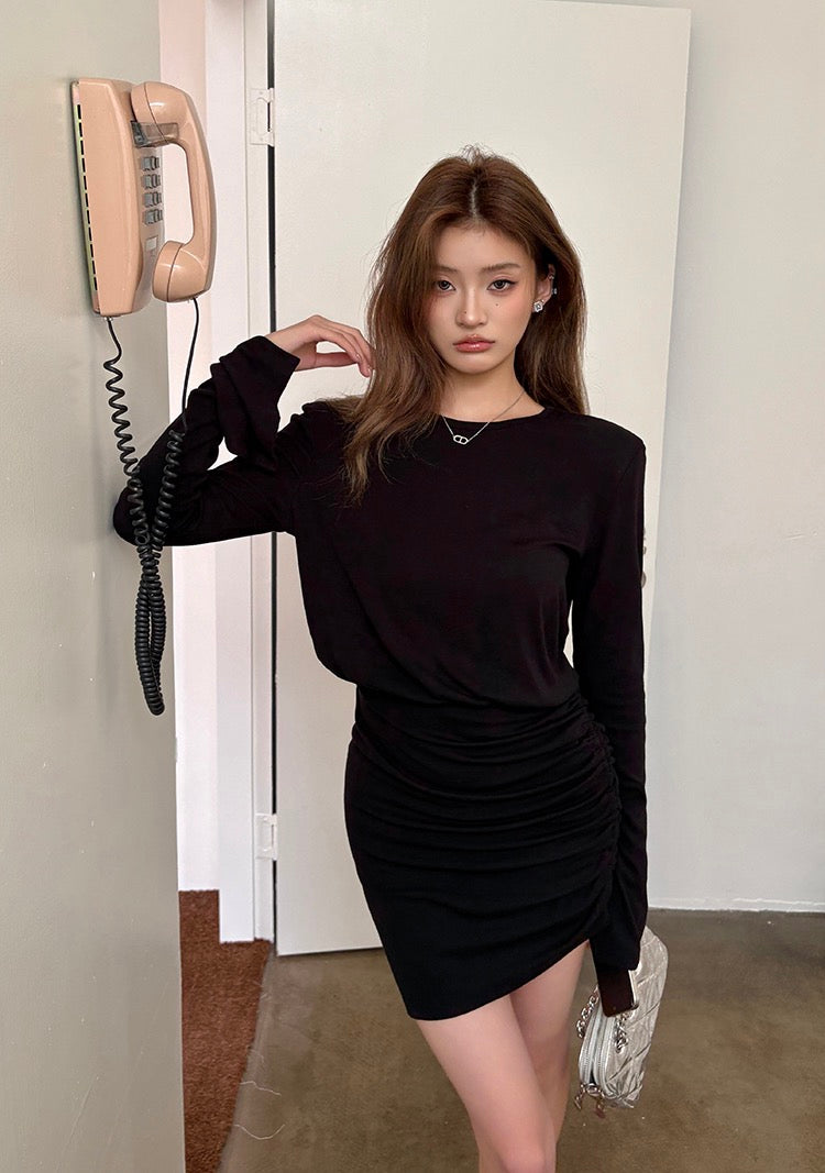 不規則褶皺包臀連身裙