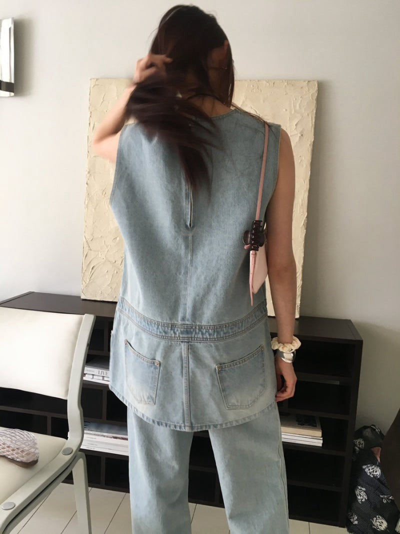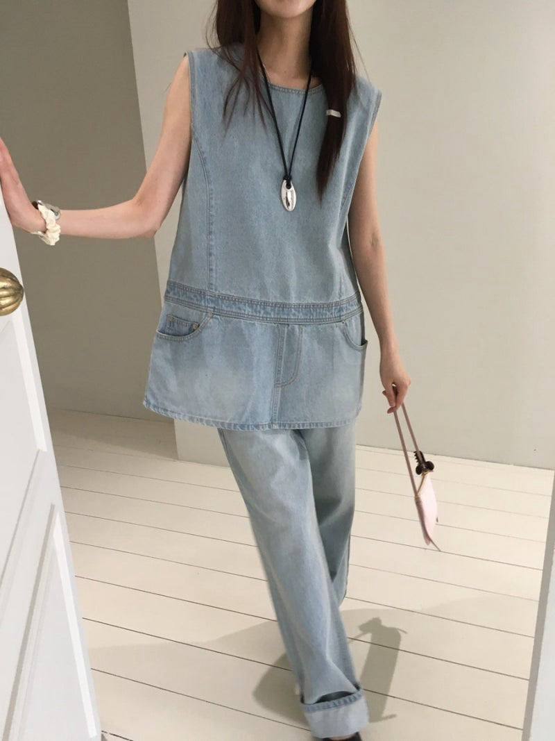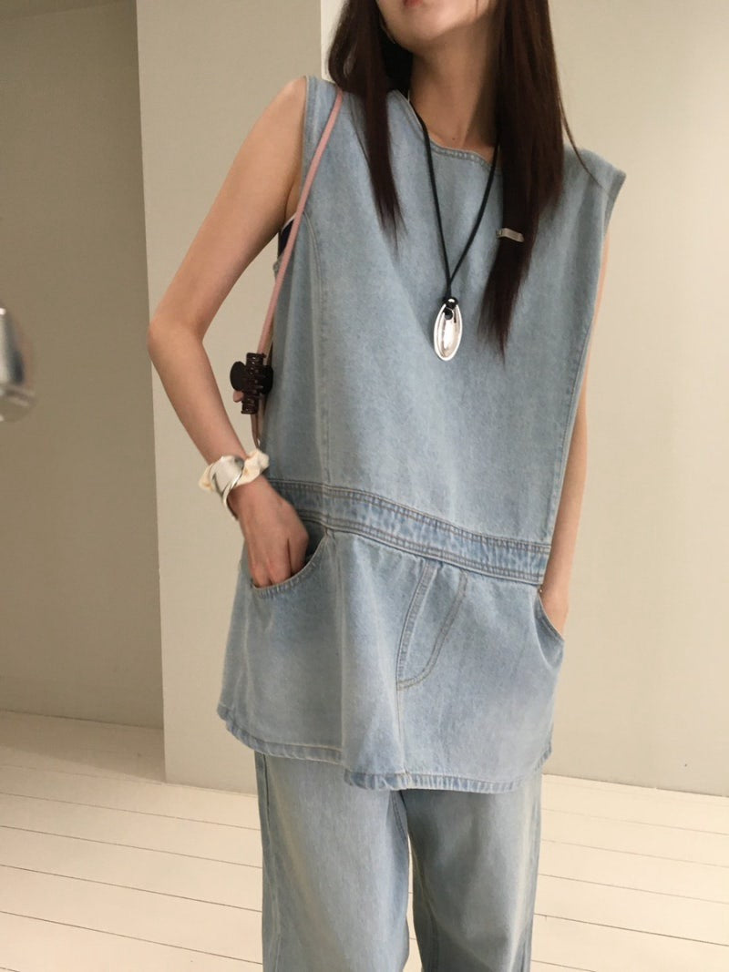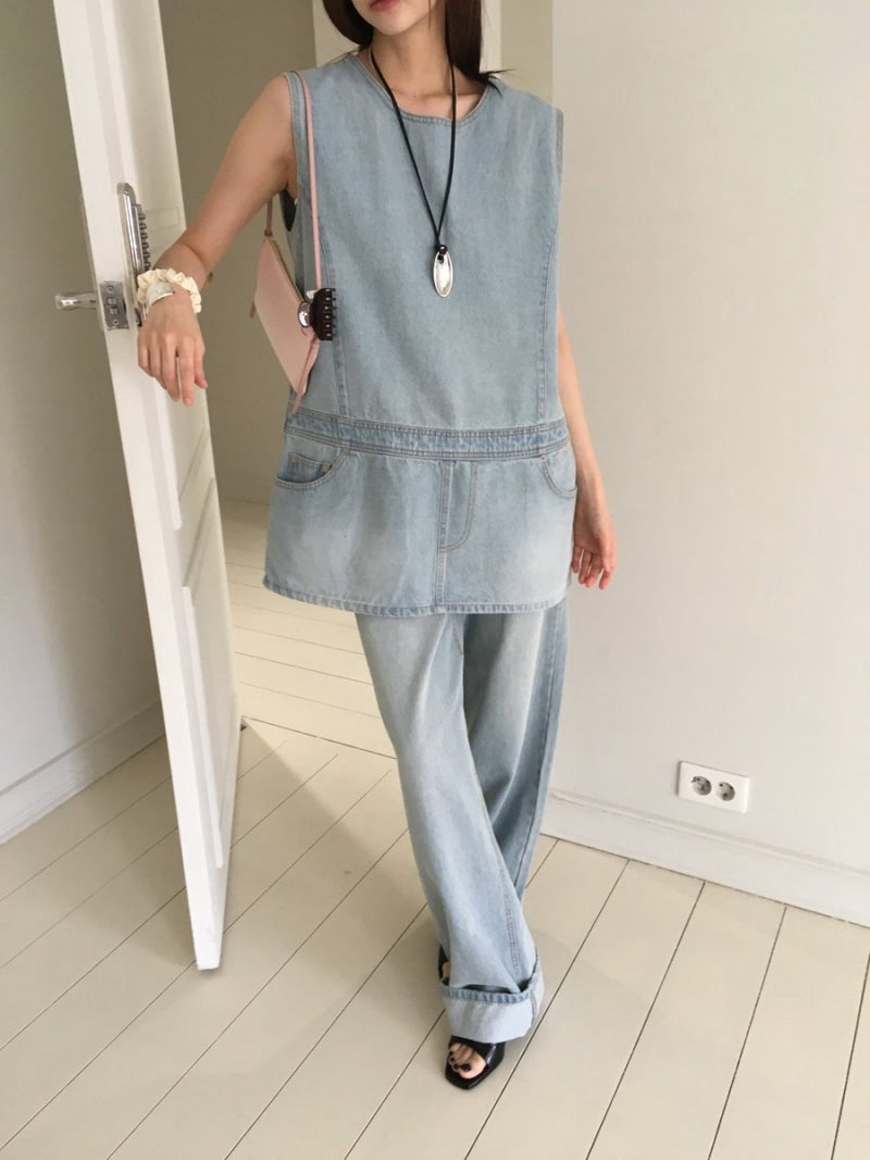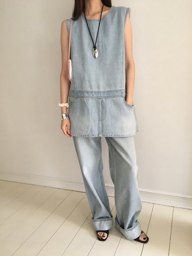 假兩件設計,輕鬆穿出層次感😘圓領設計,舒適又不失俏皮牛仔材質,休閒又耐穿✨完美搭配各種場合,展現個性風格!牛仔面料