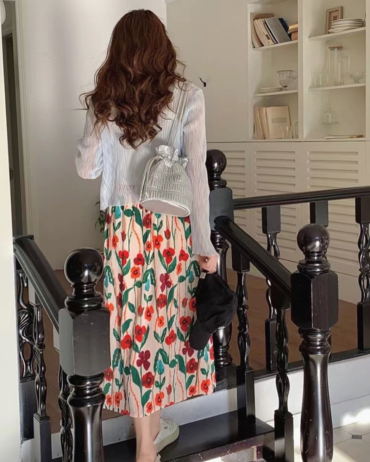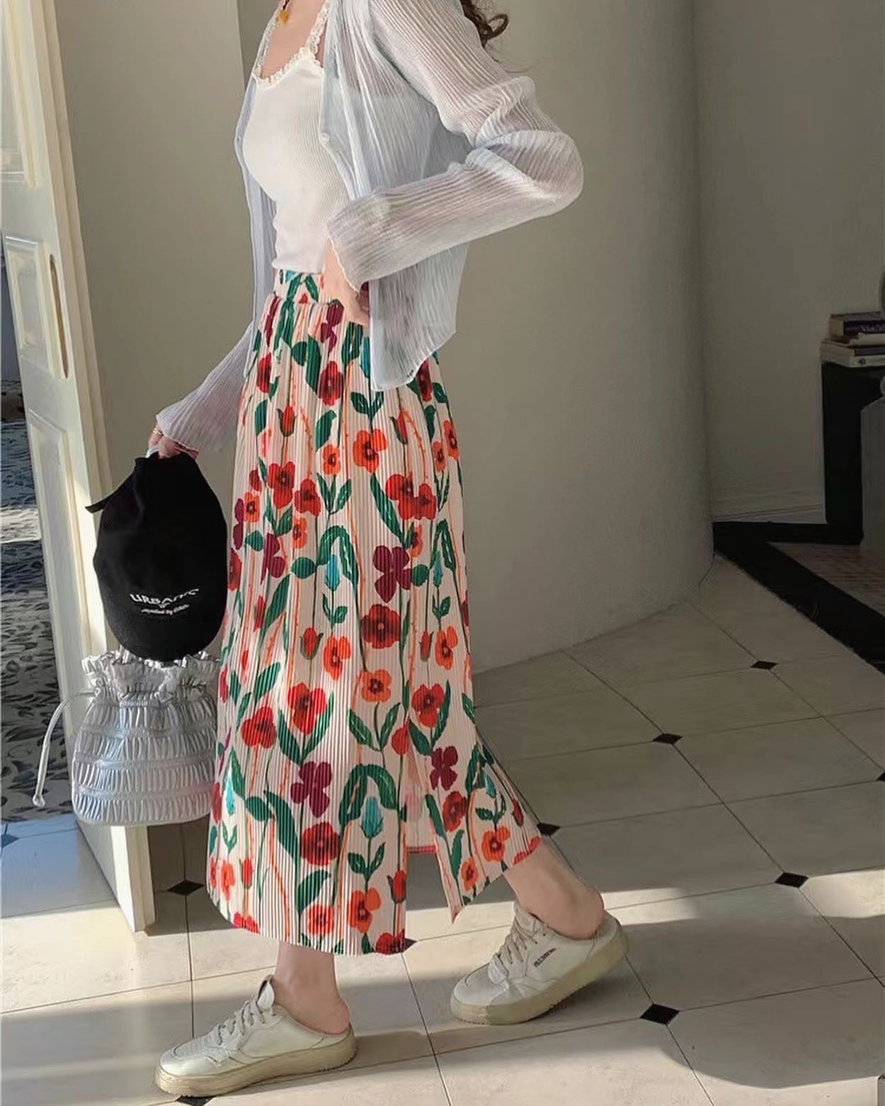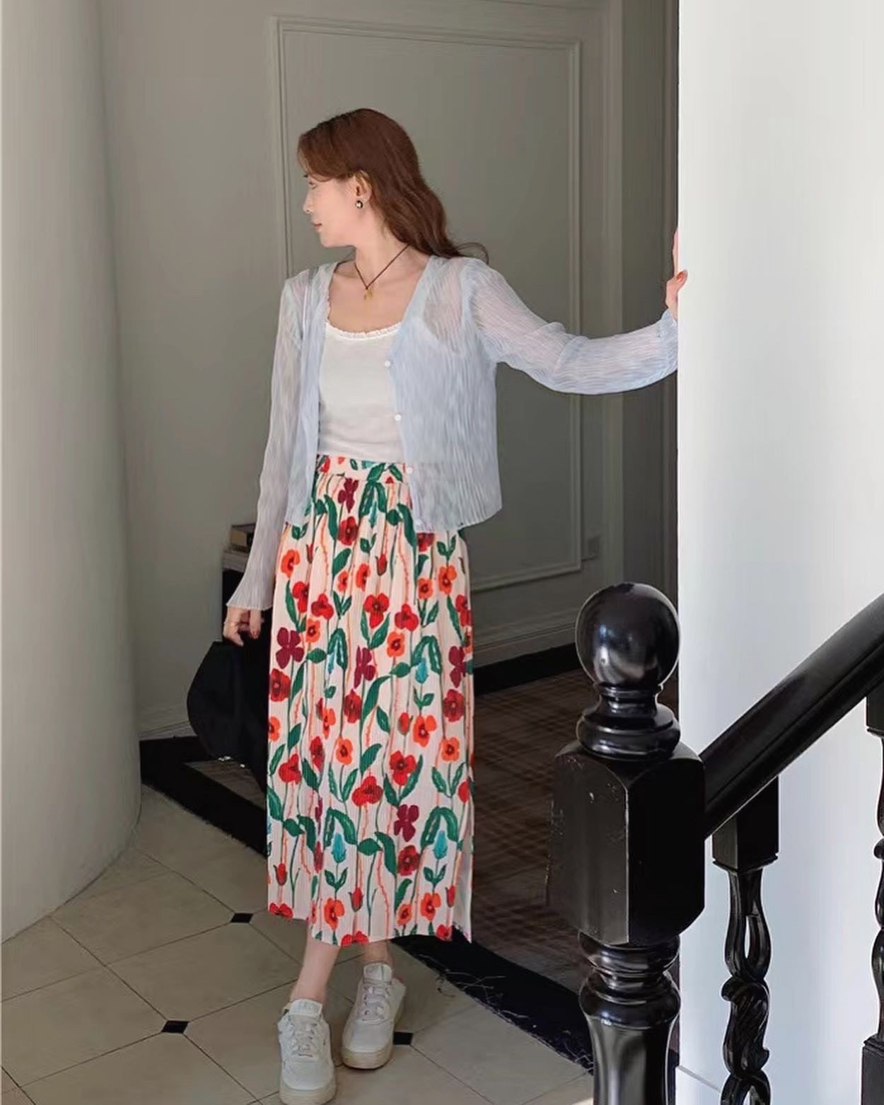 夏天必備的一條半身裙🌸🌼印花design得好靚☺️有內裏打底~面料好涼爽夏天著都唔怕熱💕滌綸布料材質:100% 滌綸Size:Size Free腰圍 64cm衣長 84cm*All measurements are measured by hands, thus there might be a 1-2 cm difference from measurement.