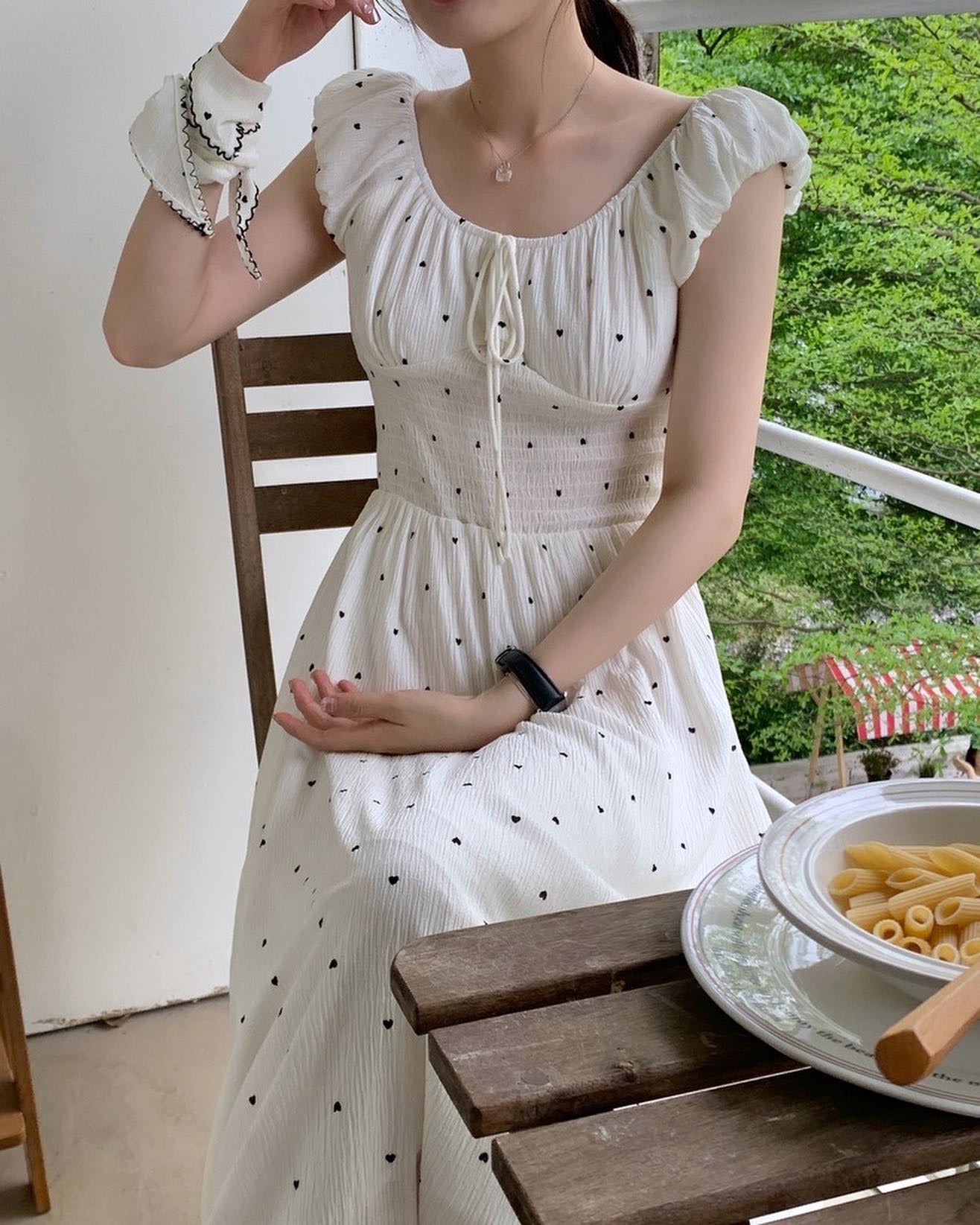 可以U領&一字肩鬆緊收腰設計⏳歐式復古風全身都係🖤🤍滌綸布料材質:100% 滌綸Size:Size Free上圍 88cm(有彈性)衣長 110cm*All measurements are measured by hands, thus there might be a 1-2 cm difference from measurement.