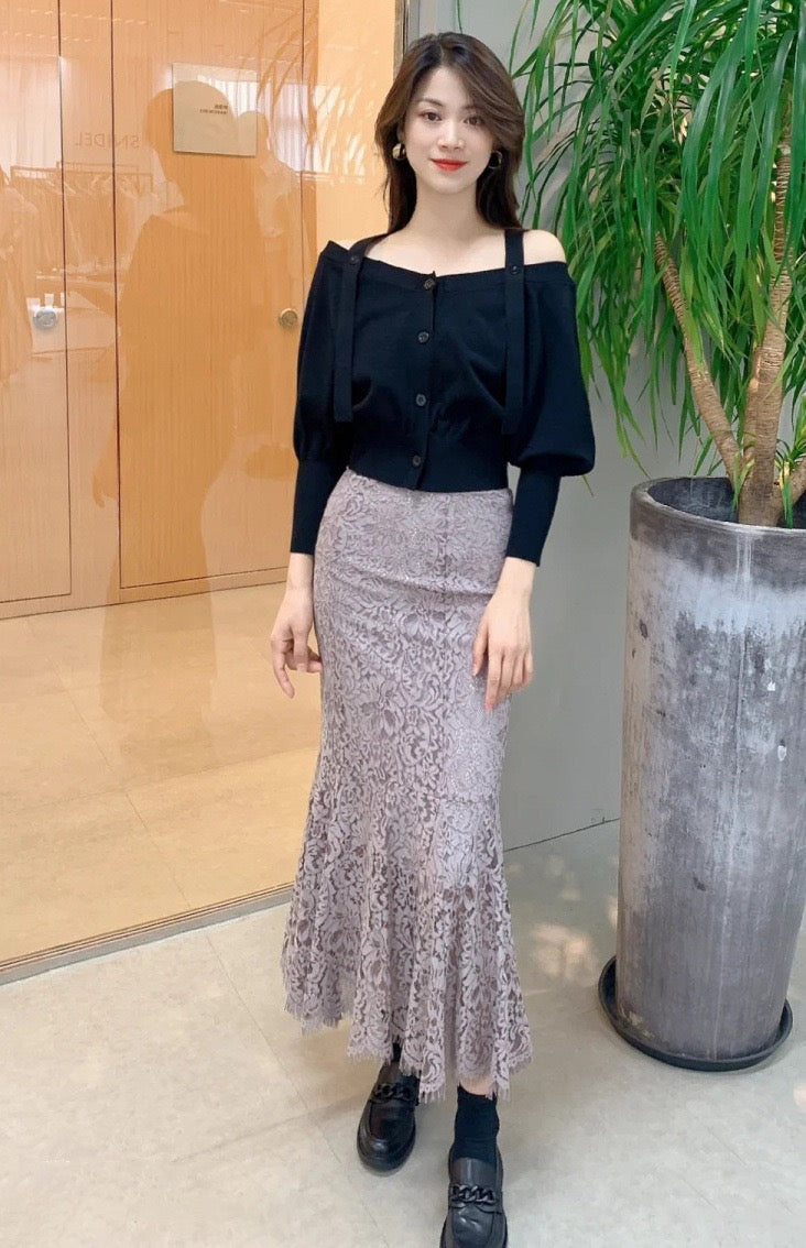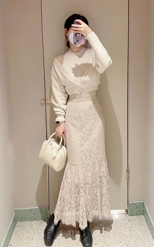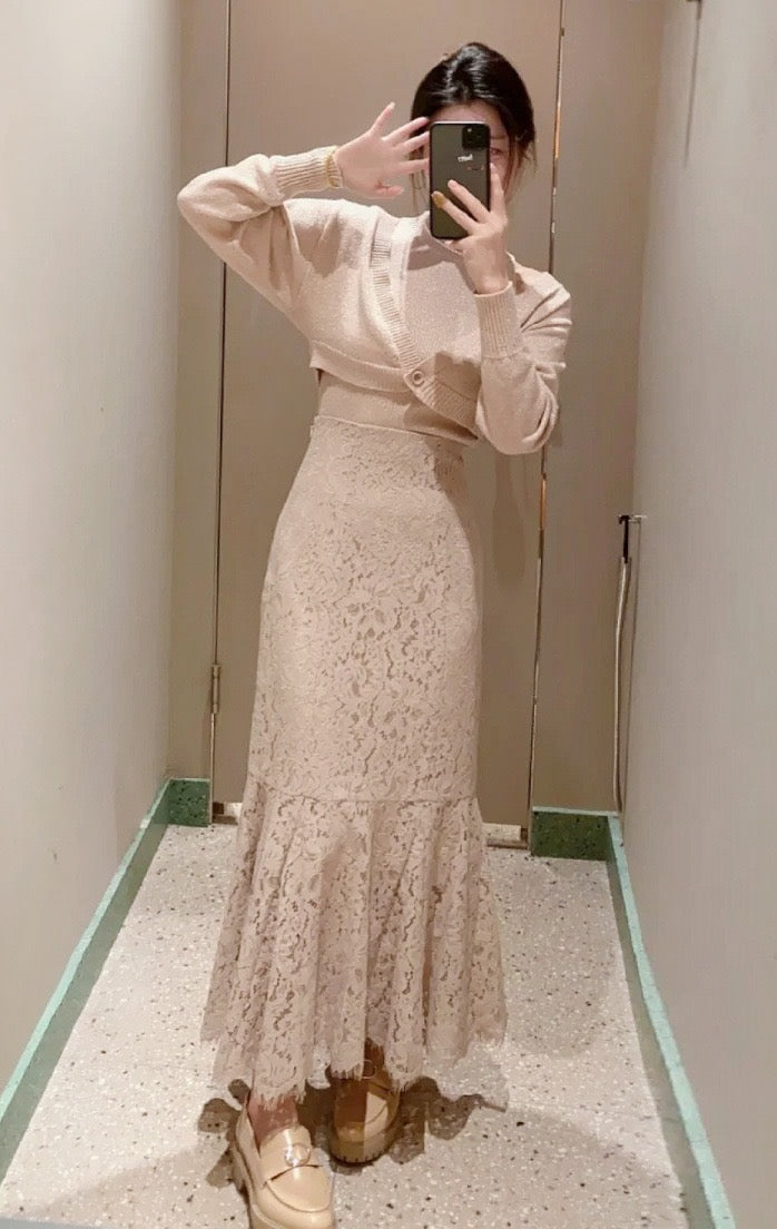 優雅蕾絲,精緻女人味✨高腰設計,拉長腿部比例魚尾剪裁,展現迷人曲線氣質約會、通勤都適合😘滌綸面料