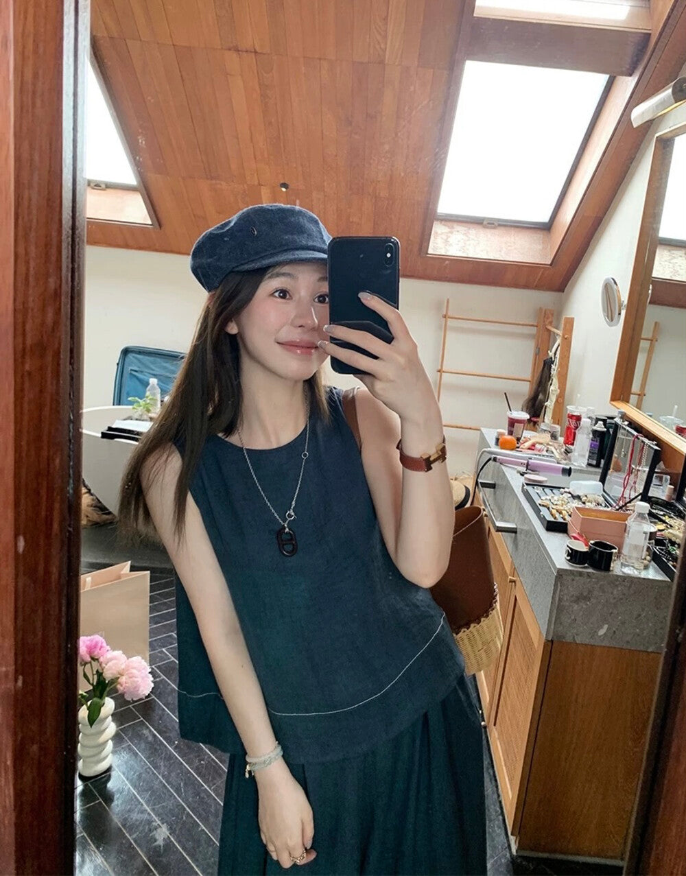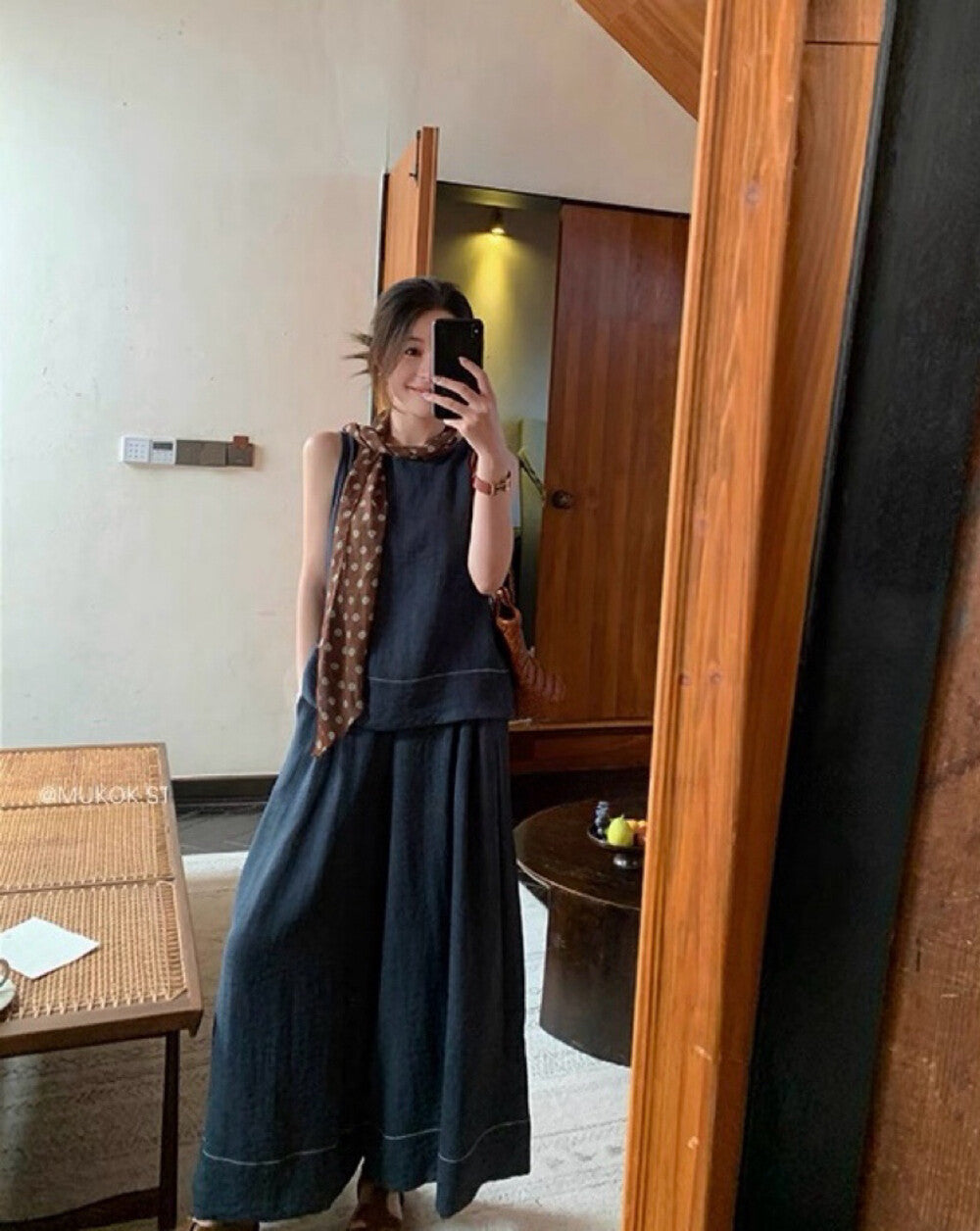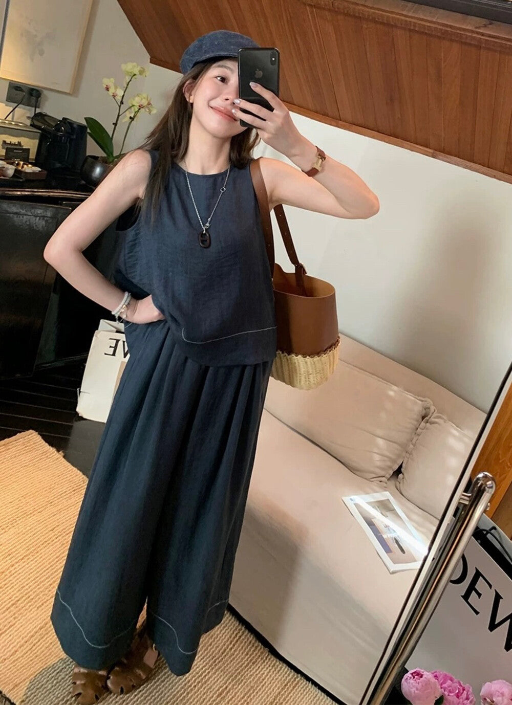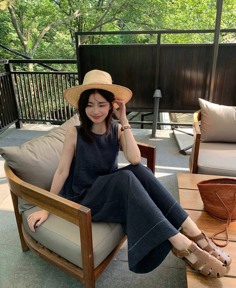 性感鏤空露背設計 ✨高腰A字褲修飾腿型鬆緊腰頭舒適不緊繃整套穿搭顯瘦又時髦棉面料