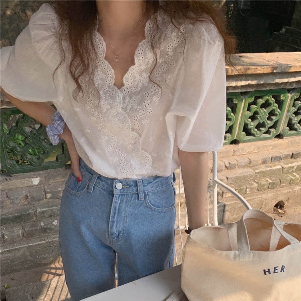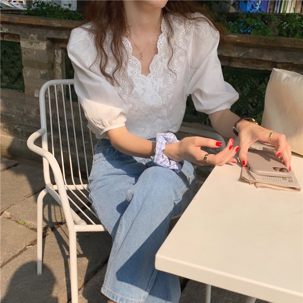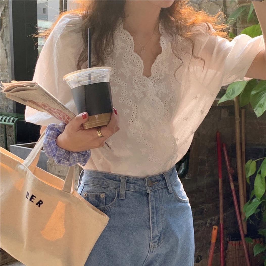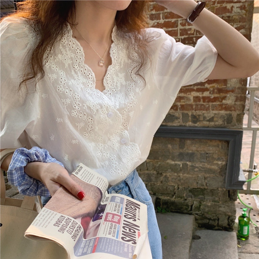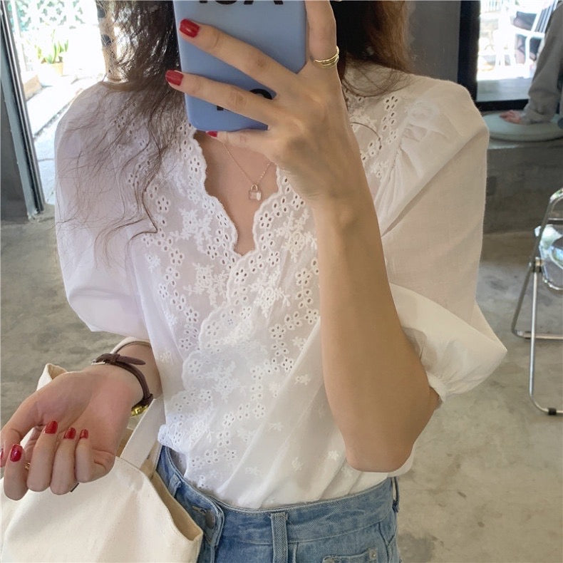 鏤空刺繡花邊恤衫