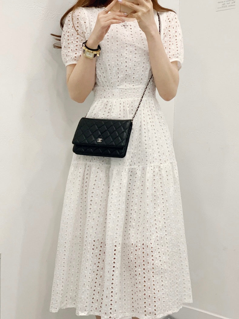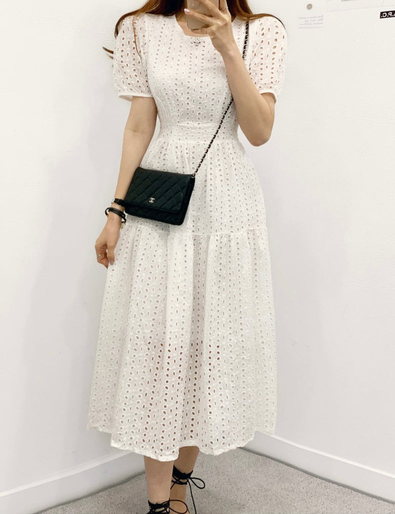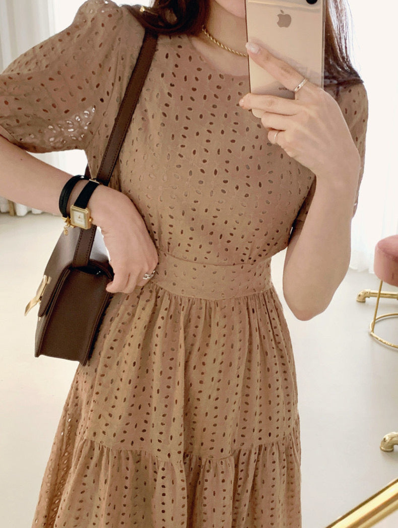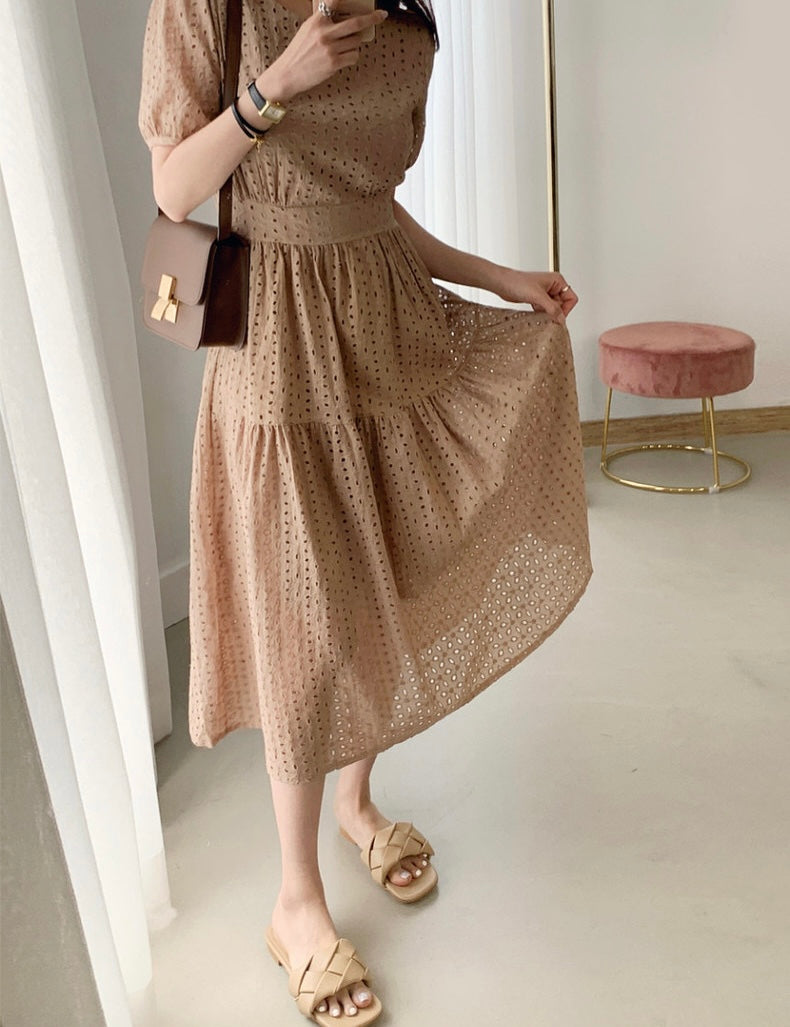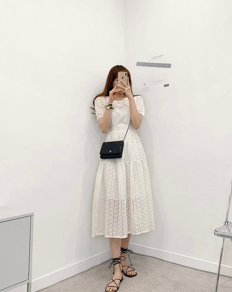 鏤空提花收腰連身裙
