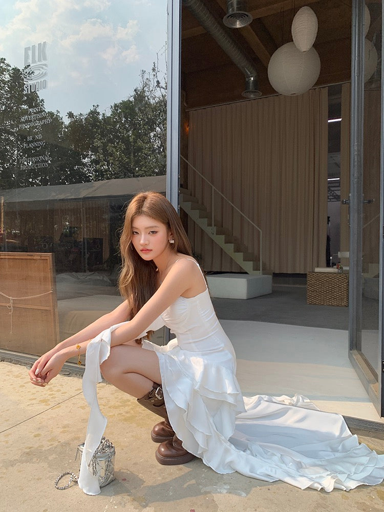 自帶胸墊超方便🩷裙擺不規則設計更有層次感荷葉邊甜美中帶點飄逸感🍃單穿就很有造型感~滌綸面料